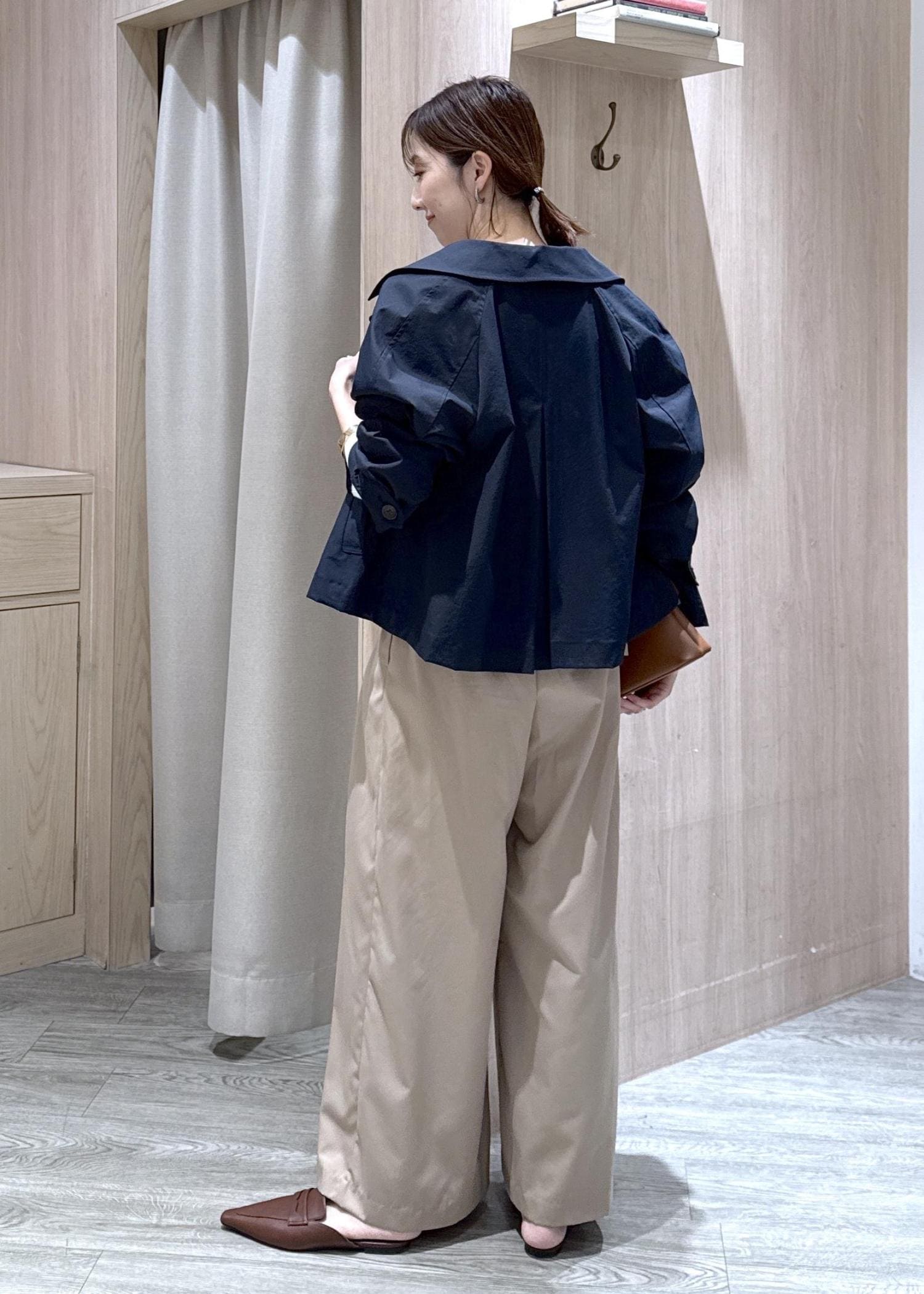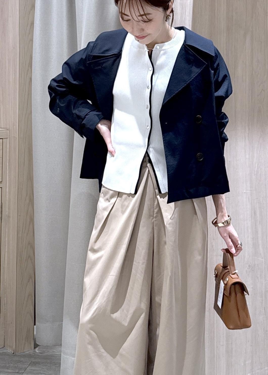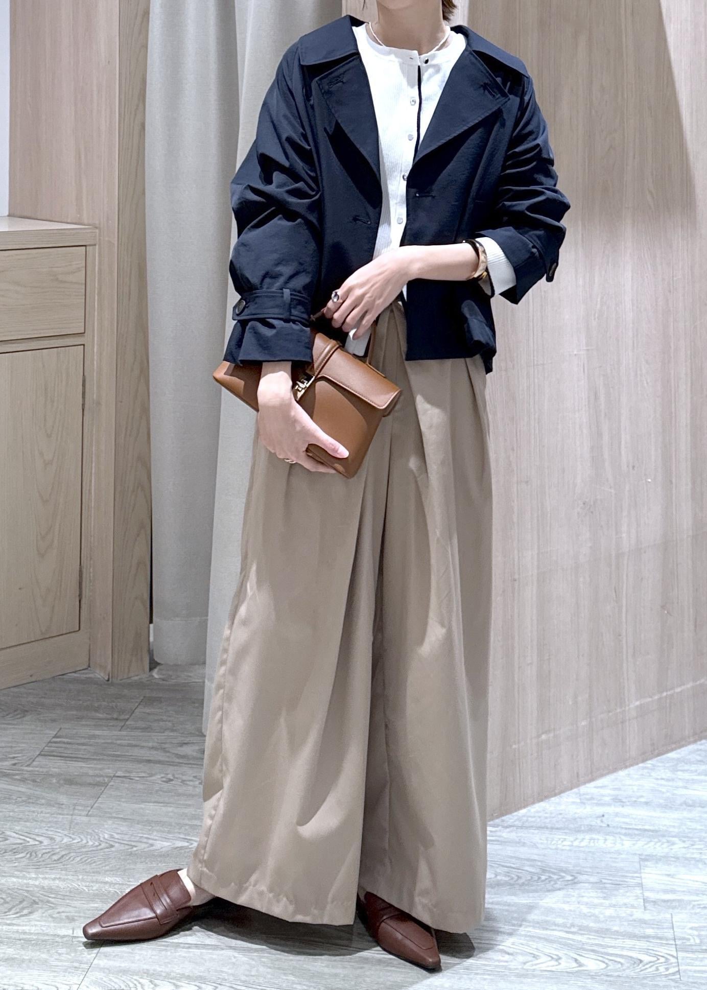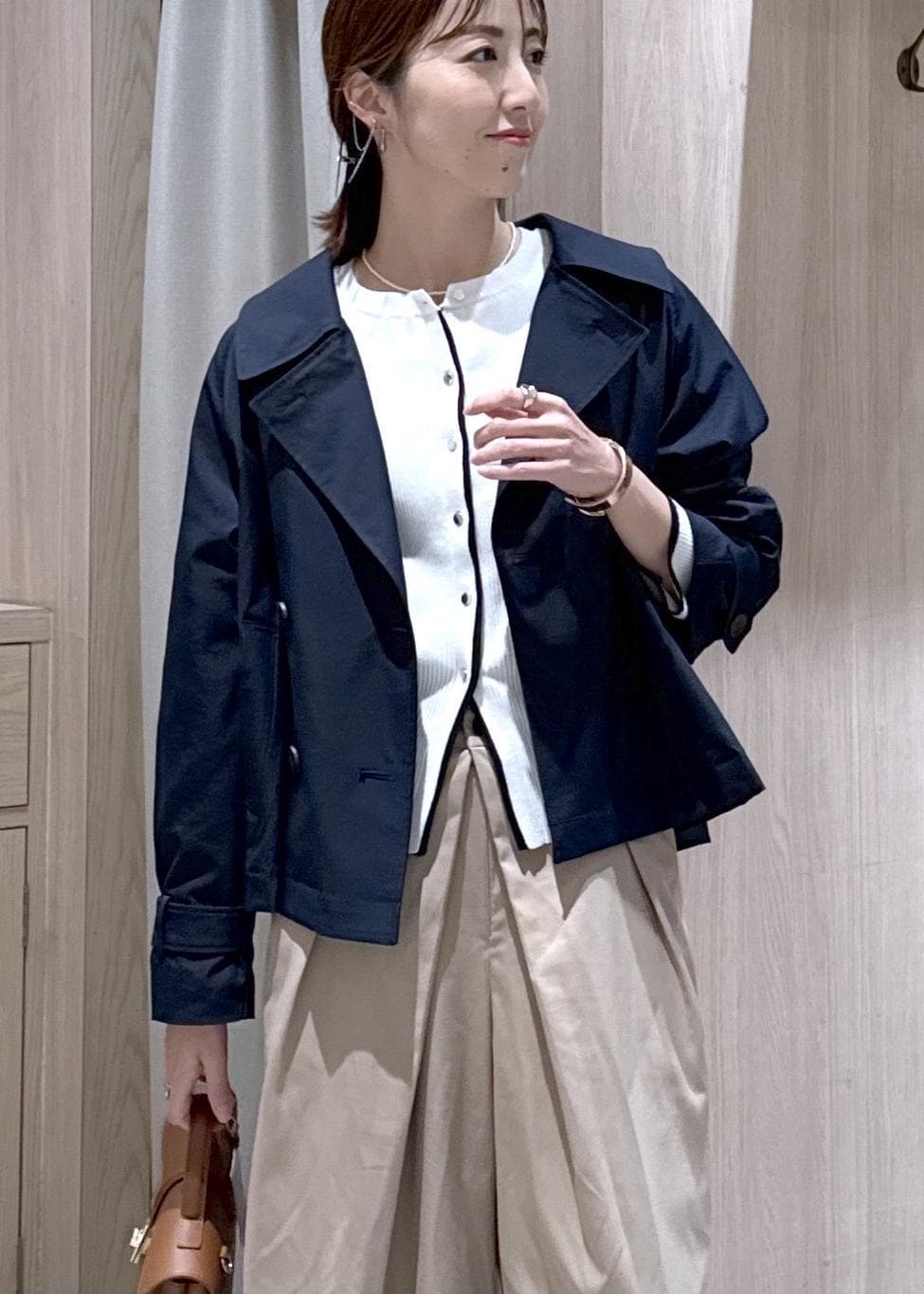 コンパクトなショートトレンチは、ちょっとしたお出かけからきちんとしたい時も使える万能アウター◎