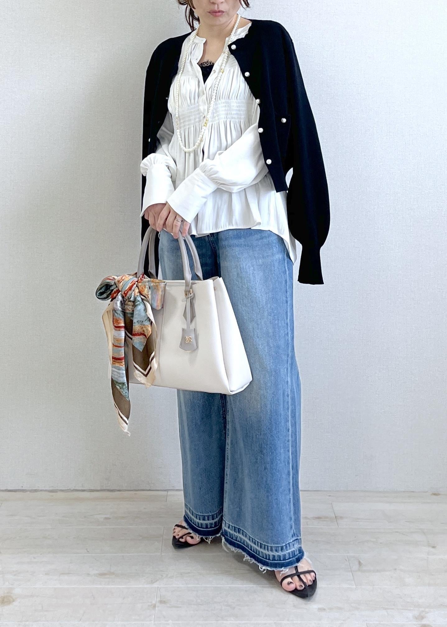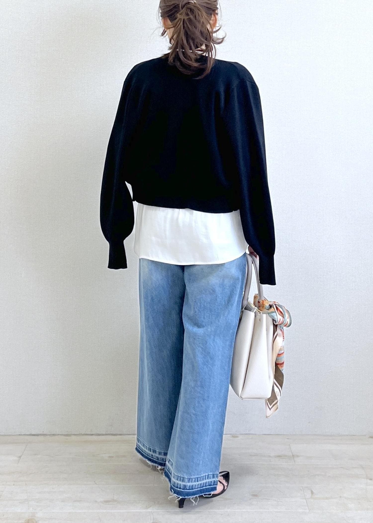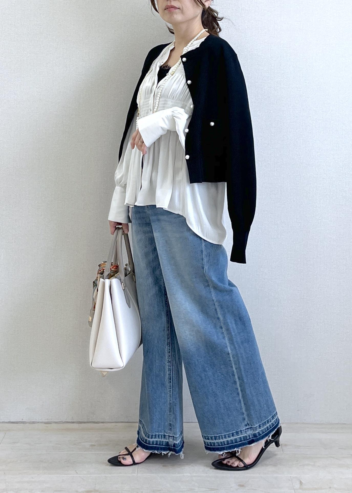 あえてラフなデニムを合わせて“抜け感”をプラス。
