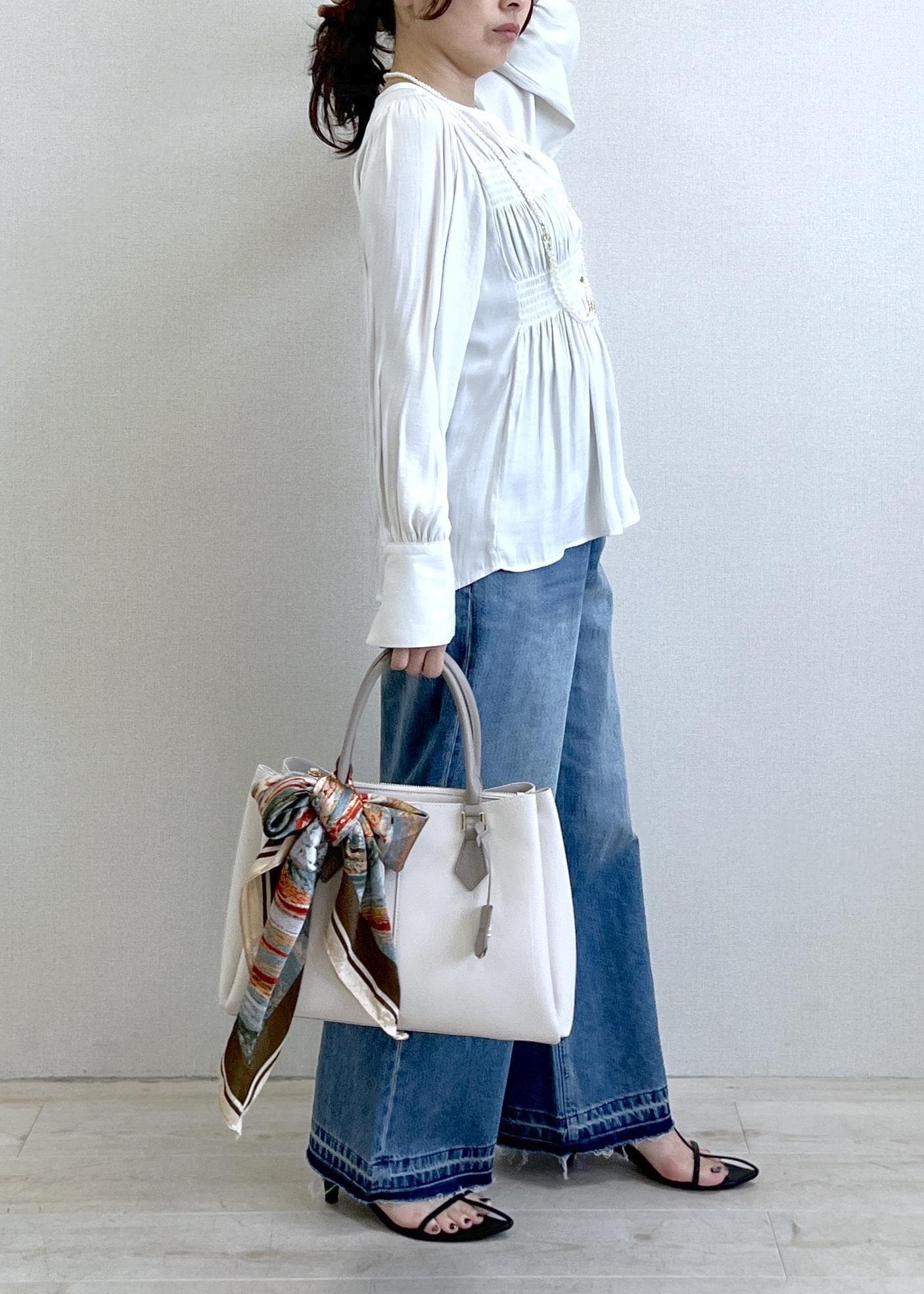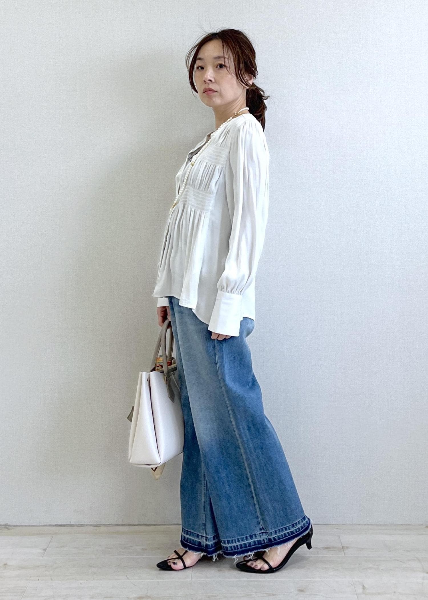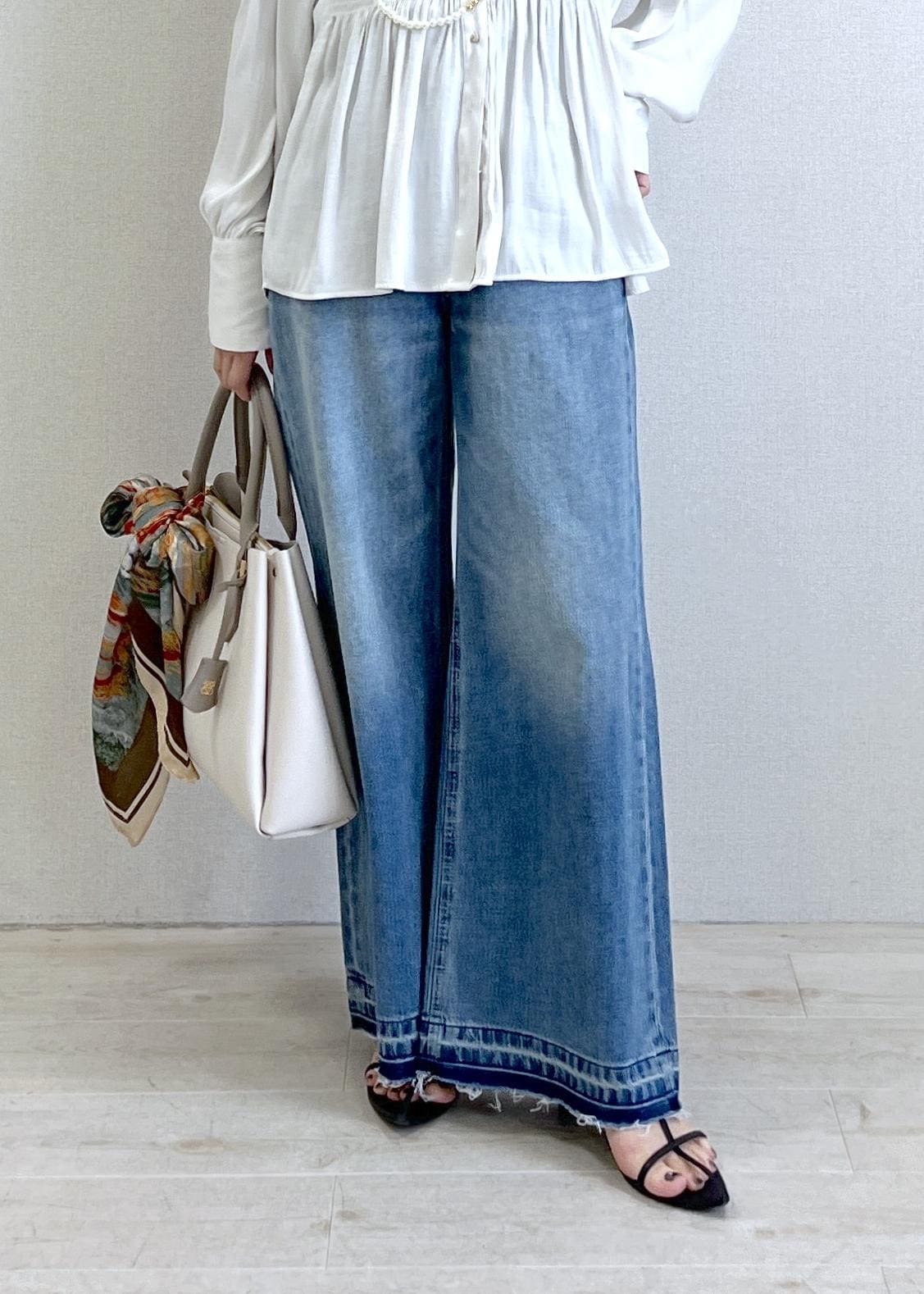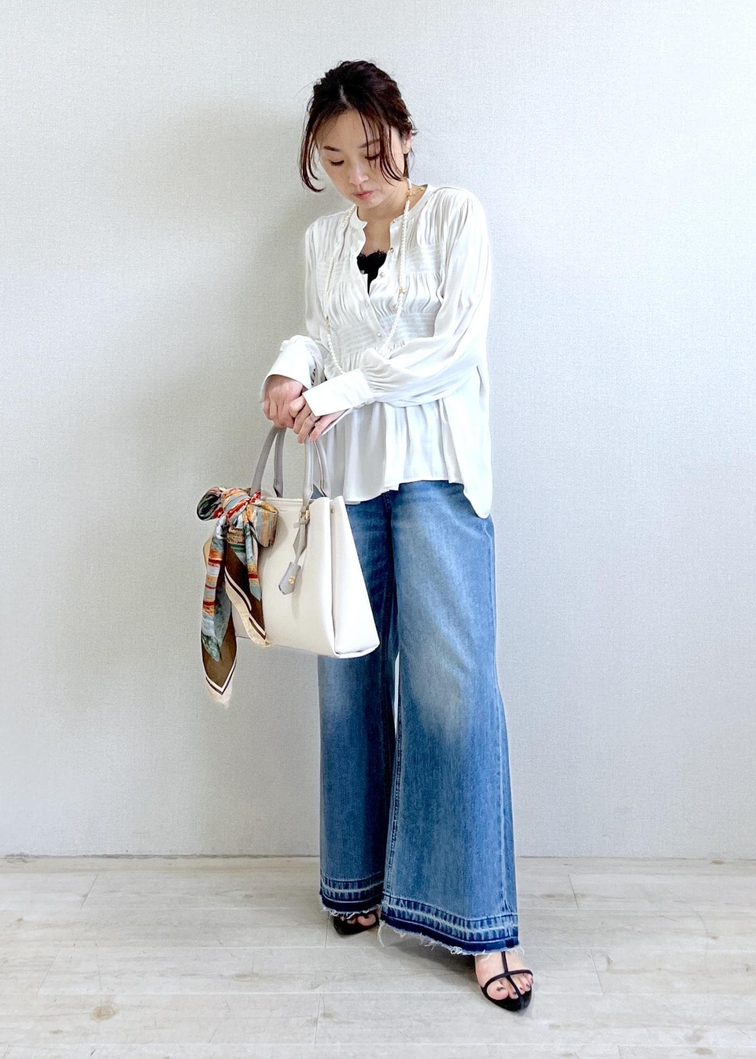 あえてラフなデニムを合わせて“抜け感”をプラス。
