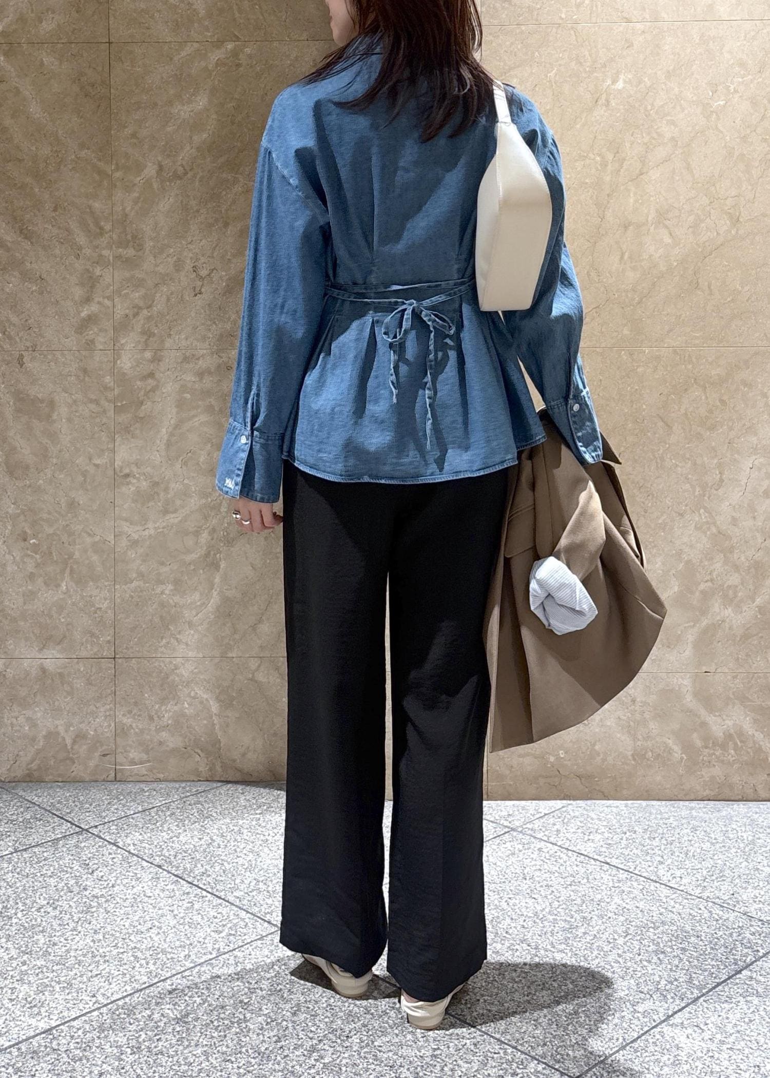 後ろで結ぶとフロントがピタッとするのでよりスッキリ見えました✨ -