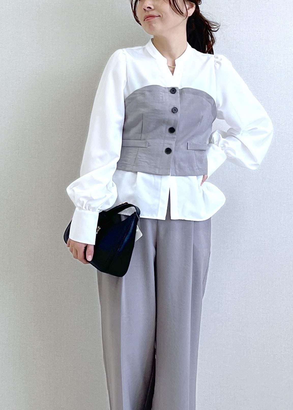 美easy前開きビスチェドッキングシャツ/イージーケア・接触冷感・セットアップ対応