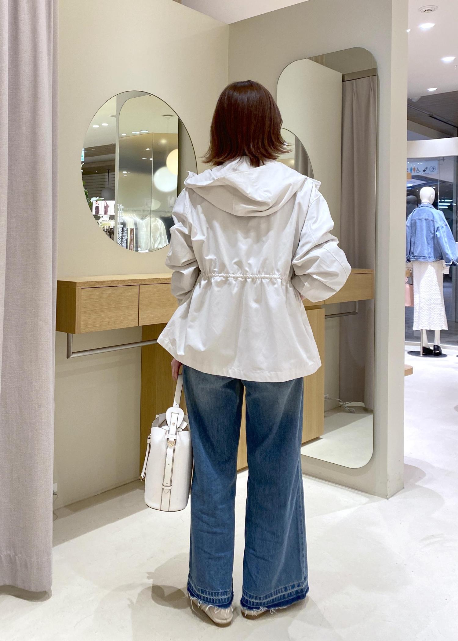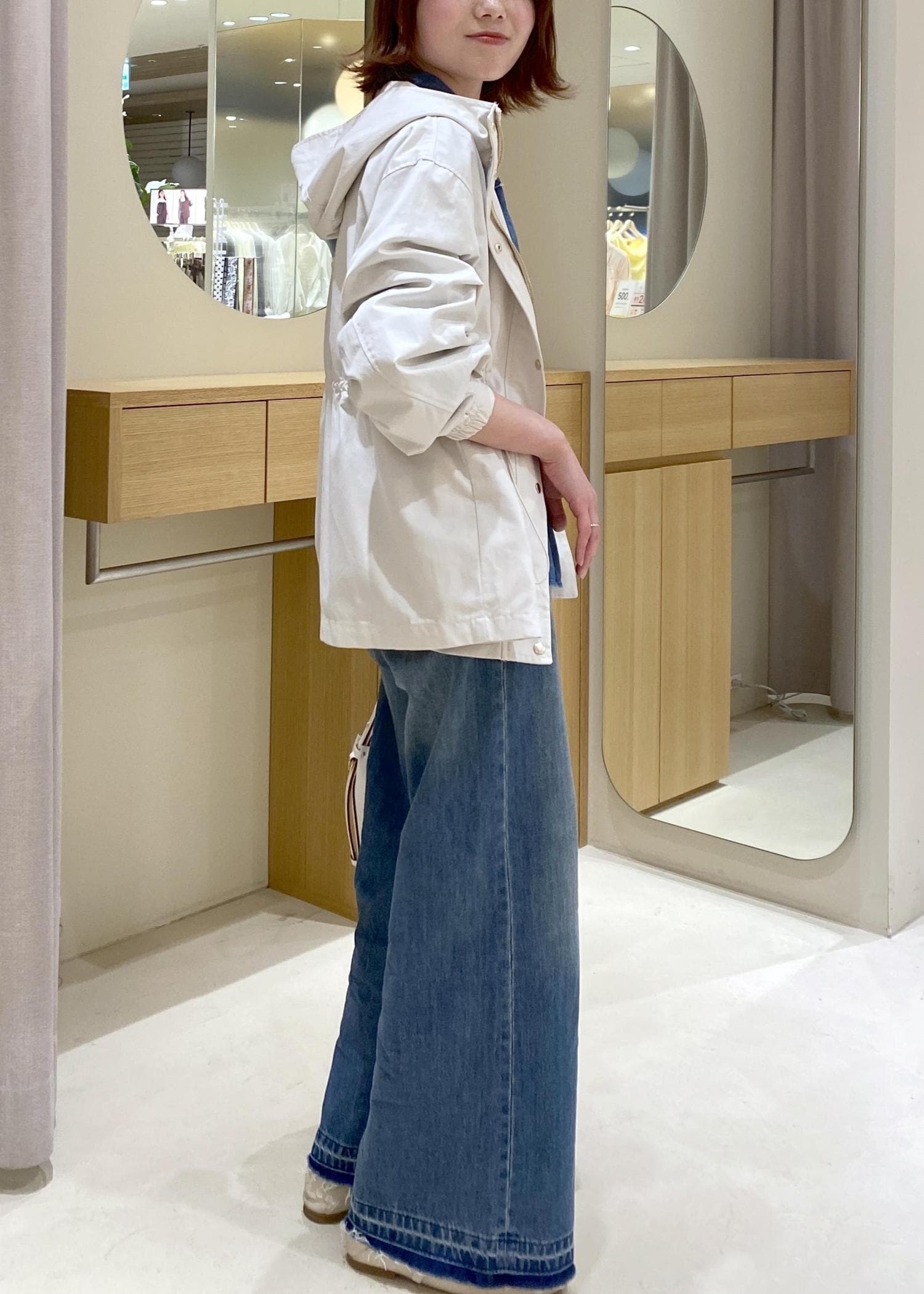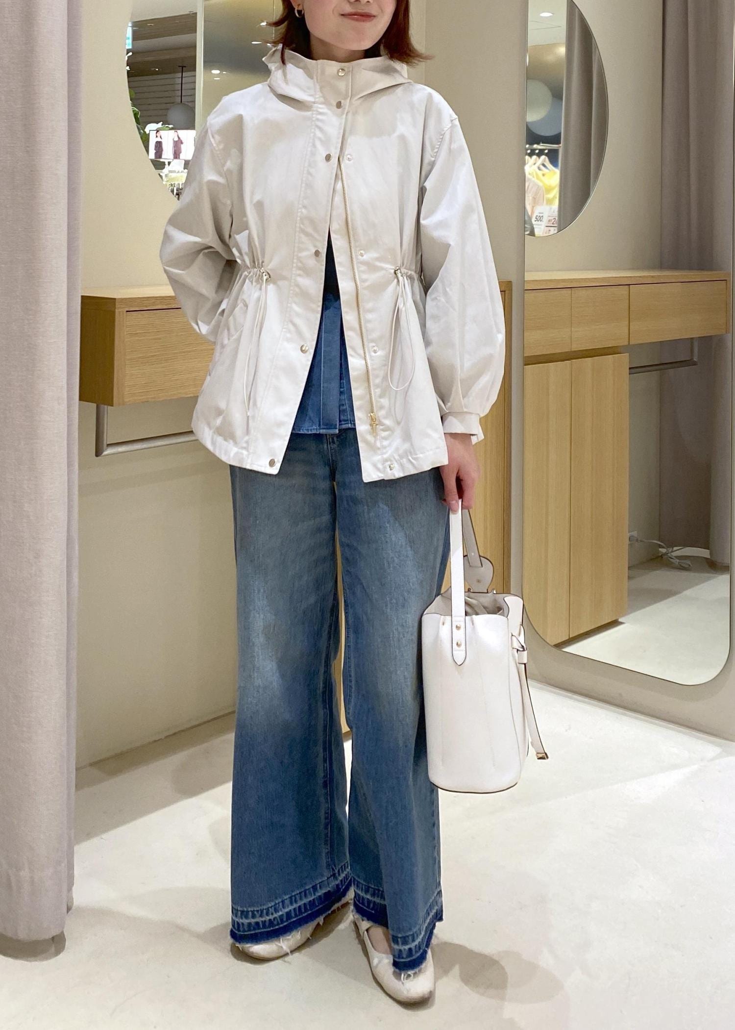 アウターはウエストマークを作ることができ、ワイドパンツと合わせてもスッキリした印象で着用できます◎