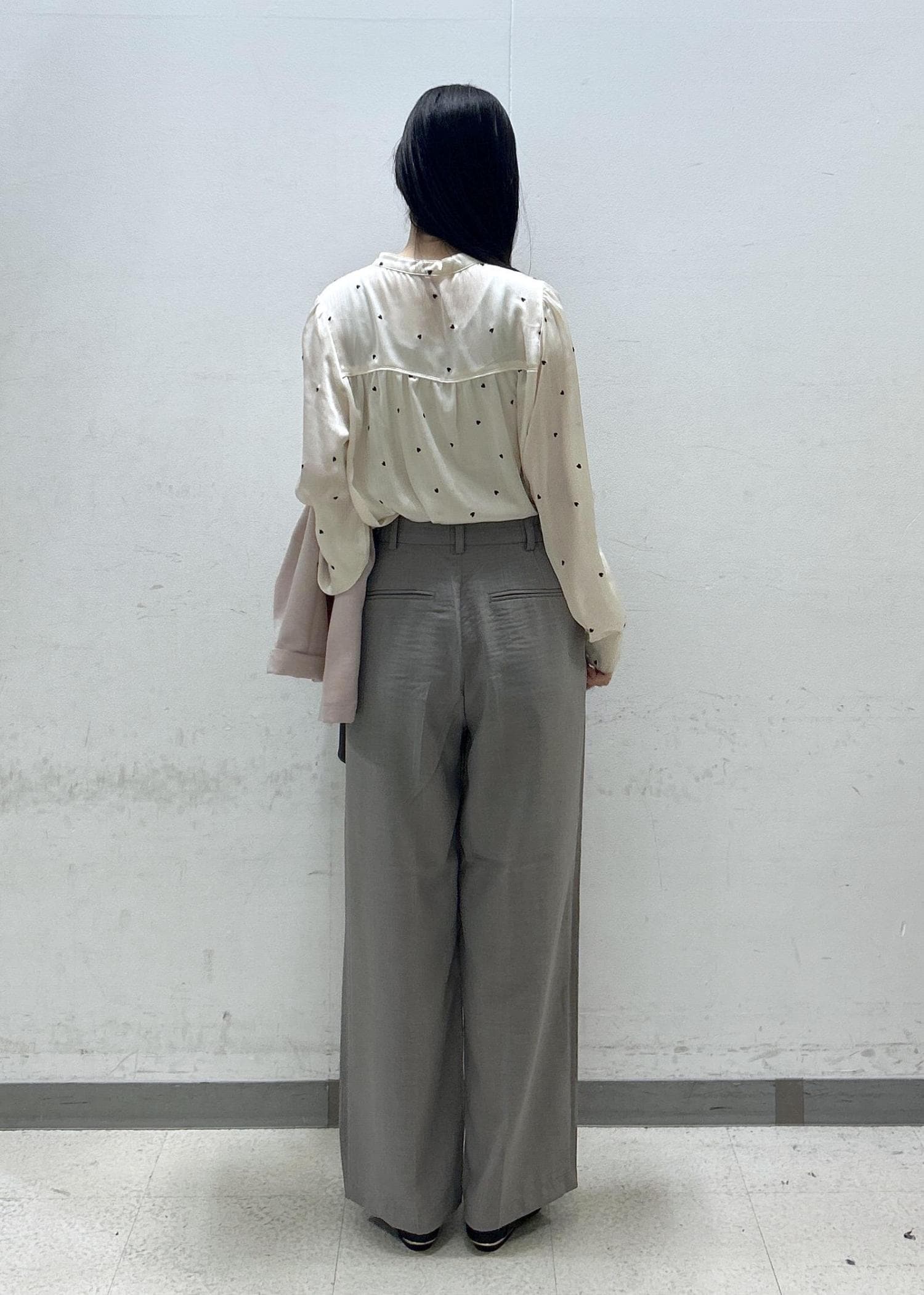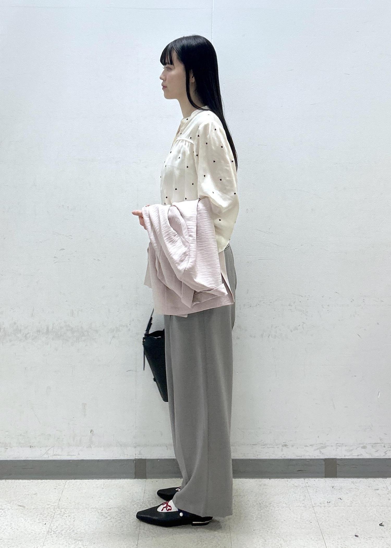 ハートの柄は刺繍になっておりますが裏はチクチクしません。全体的にフェミニンなデザインですがスタンドカラーなので首元はスッキリ見せられます。身長166センチで脚の付け根くらいの丈感で袖は手の甲まで隠れるくらいの長さです。 -