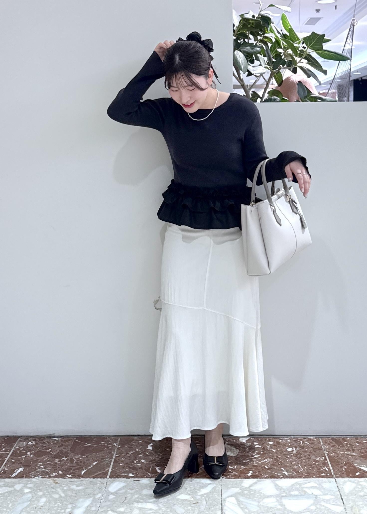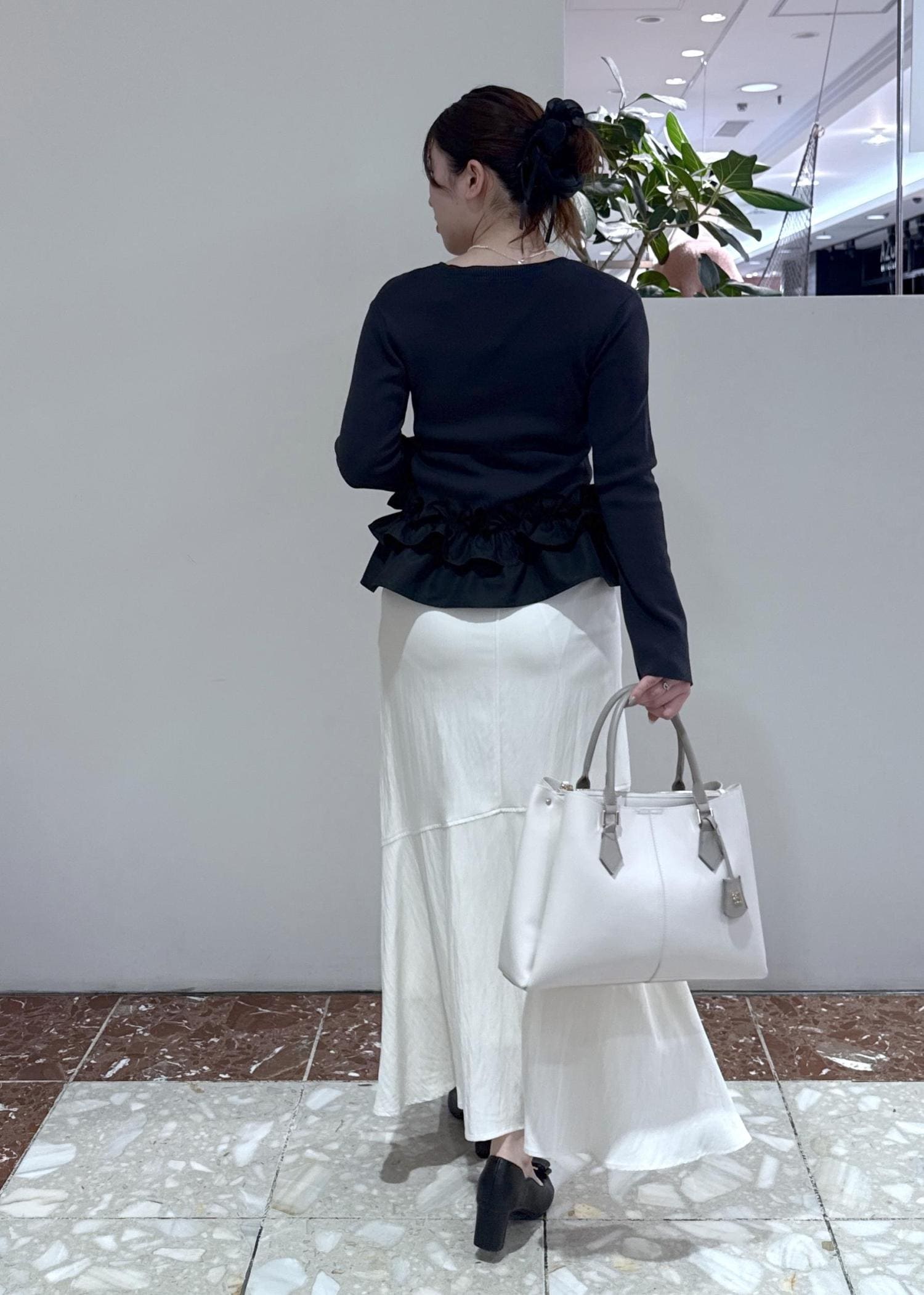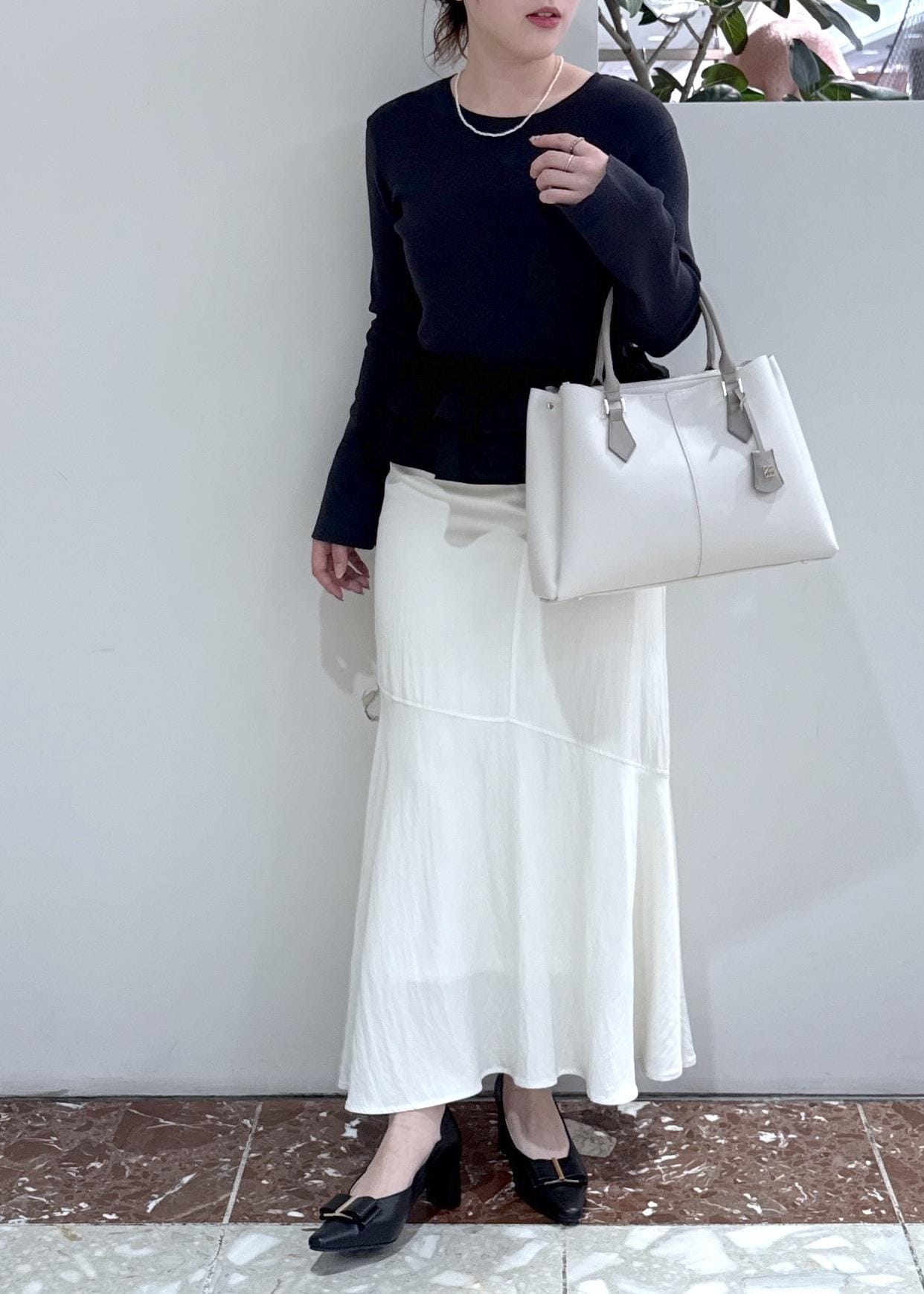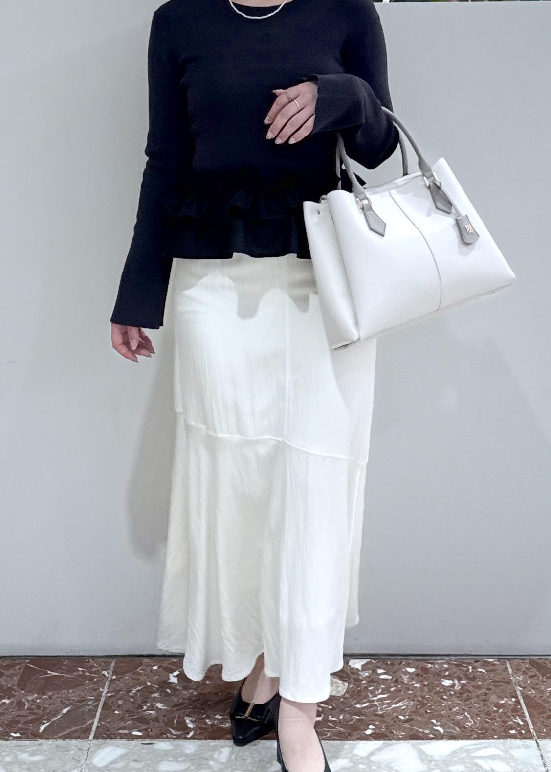程よく体のラインに沿ったシルエットで柔らかく歩いた時の動きもキレイなスカートです。 -