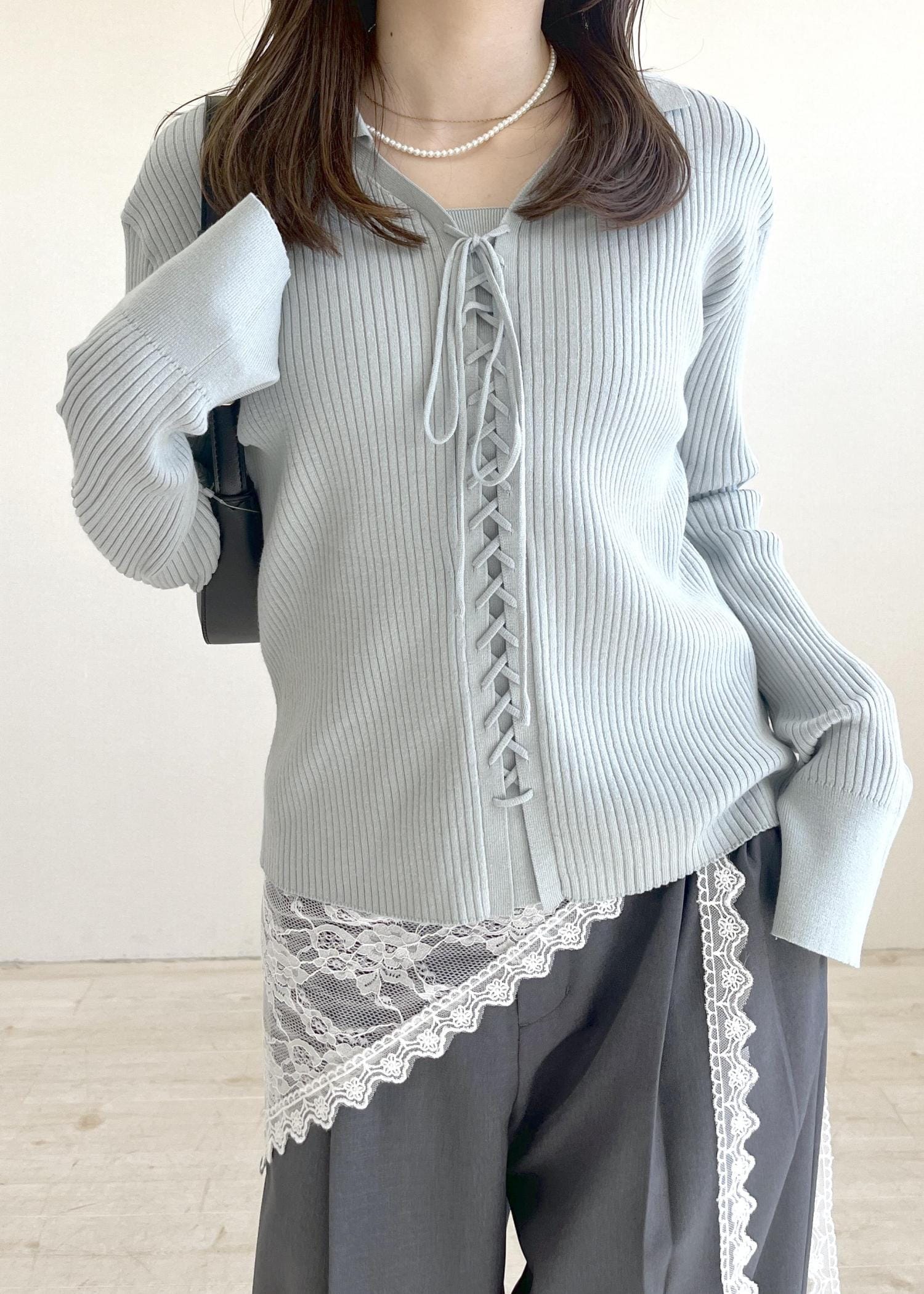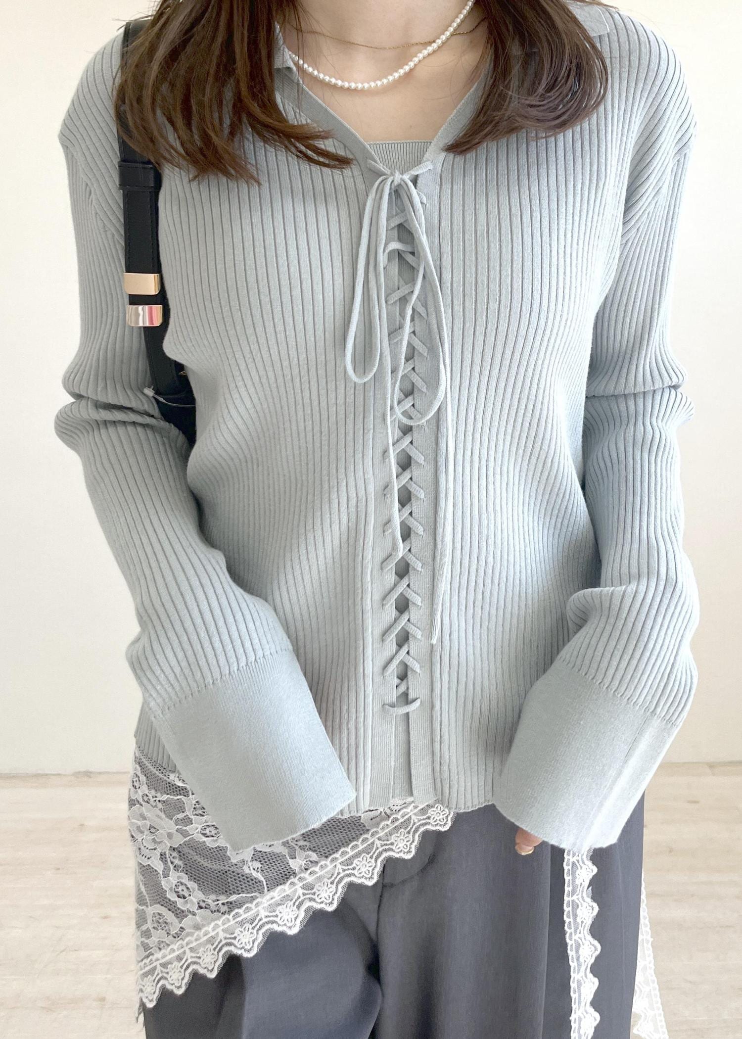 2BUY10%OFFVISレースアップリブニットライトグリーン / F¥5,929レビュー首元はきれいにデコルテが見えるくらいで安心です。