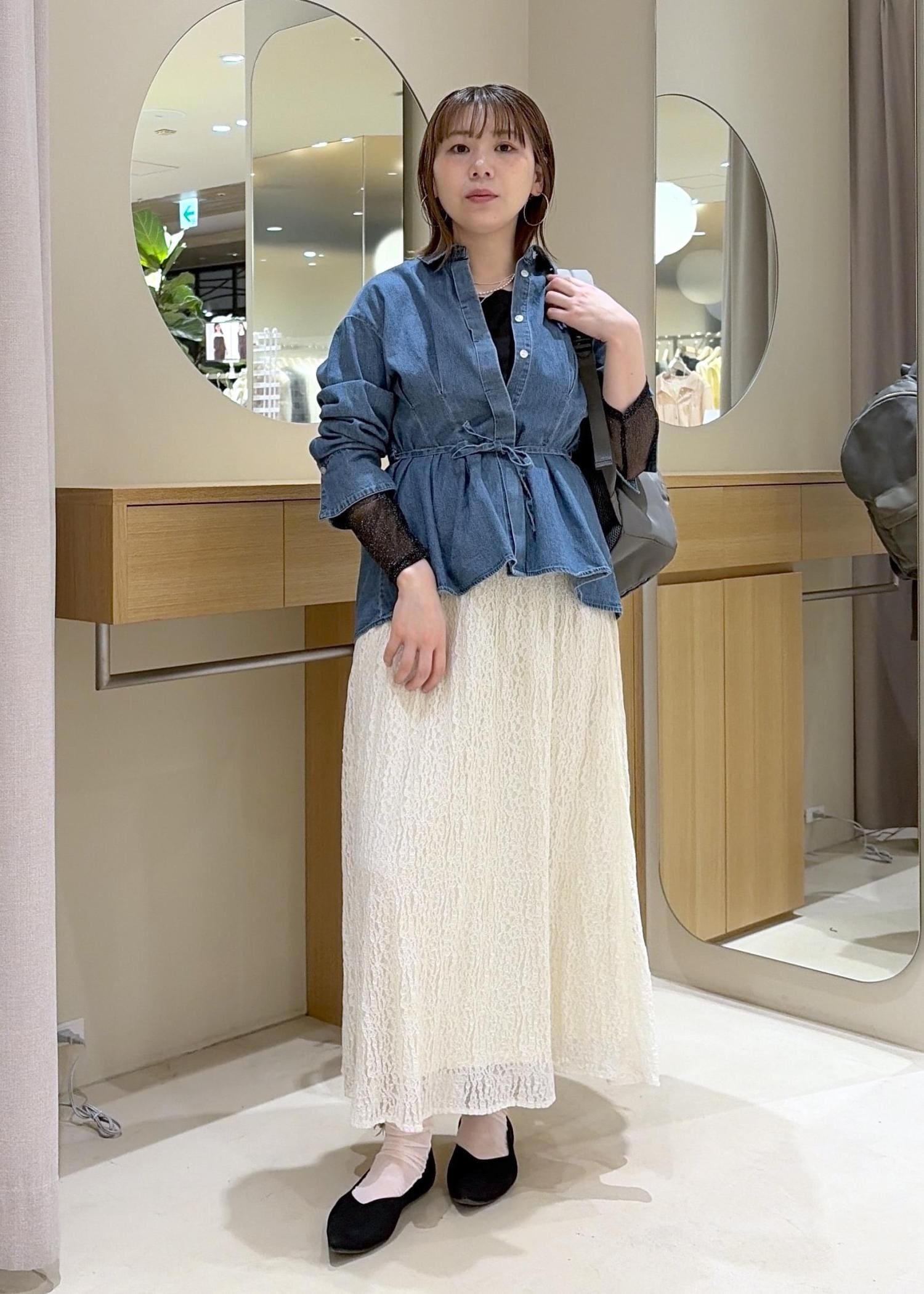 着用しているジャケット、パンツは二子玉川ライズ店限定カラーとなります。