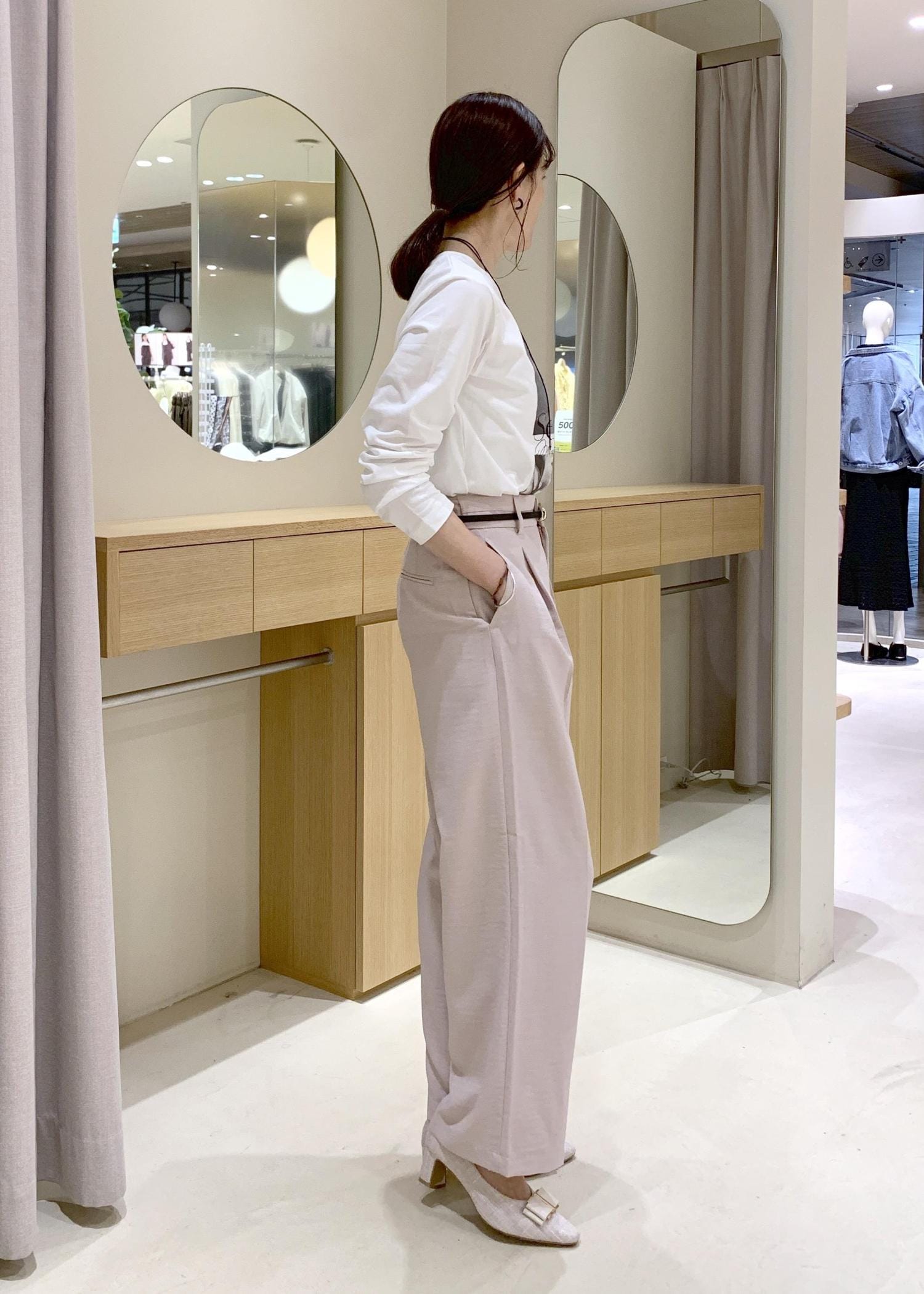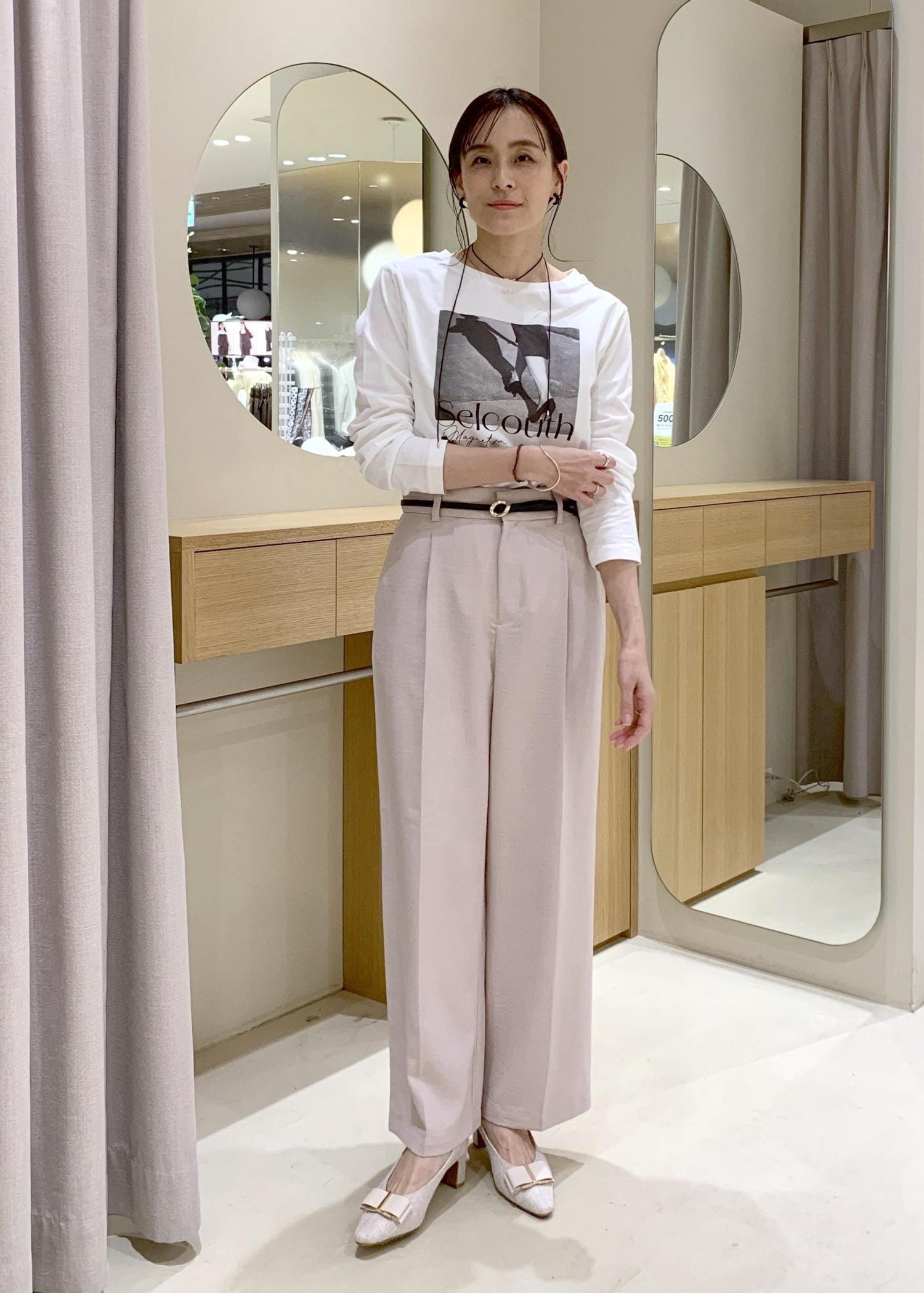 リネン風なので、生地はさっぱりサラッとしています。夏でも涼しく履けるので、今から長く使えるパンツですよ♪