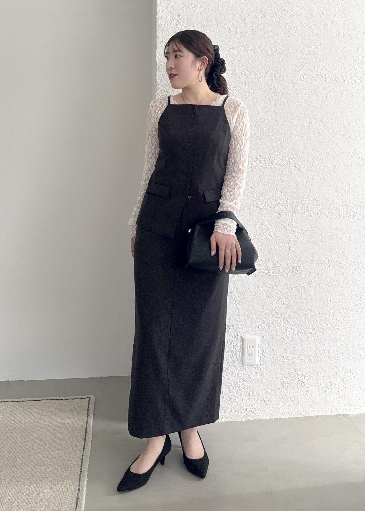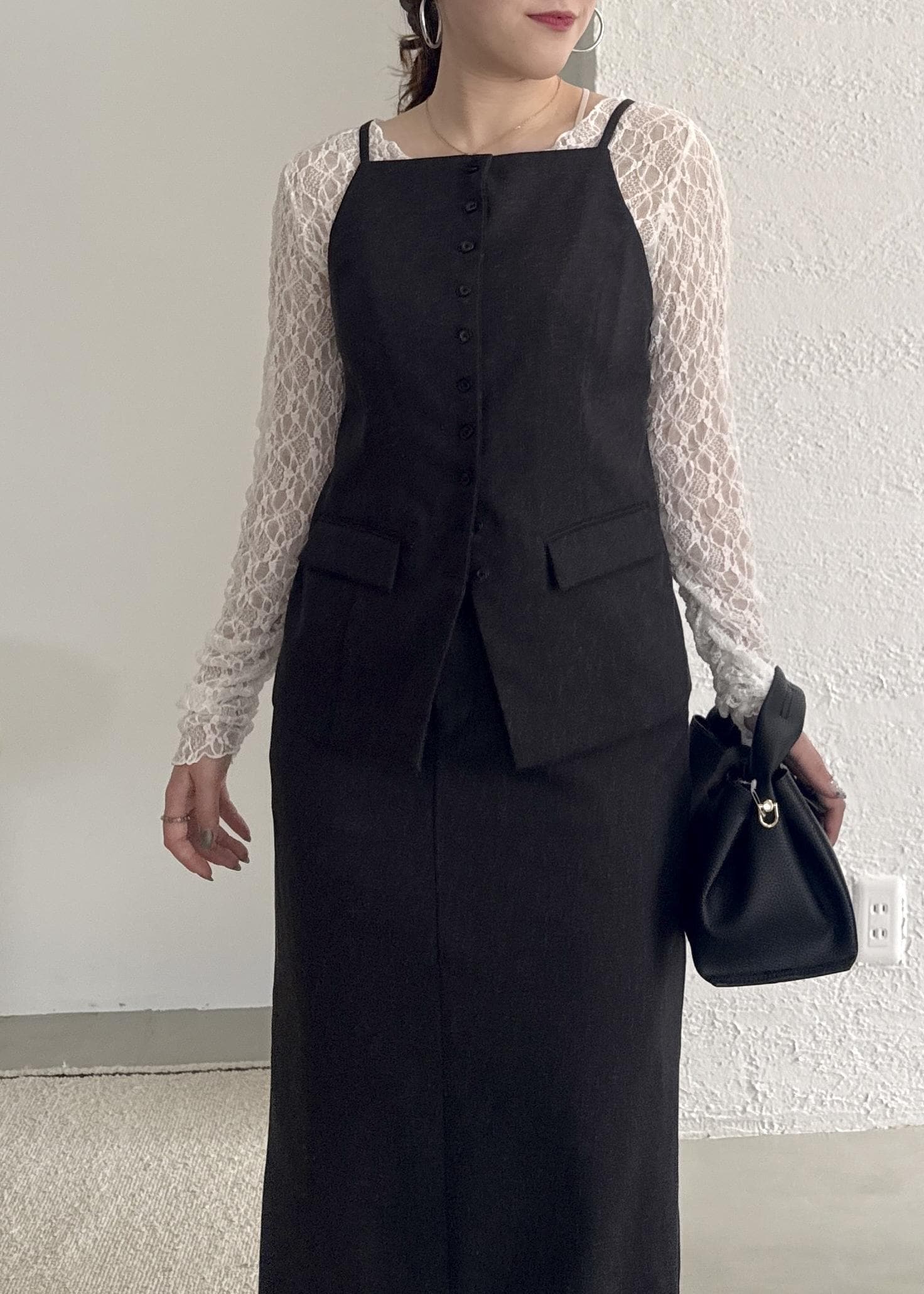 NEW! 予約VISサマーツィードボタンアップキャミトップス/セットアップ対応チャコール / F¥5,929レビューキャミ型ベストでインナー合わせも一枚で着ても◎