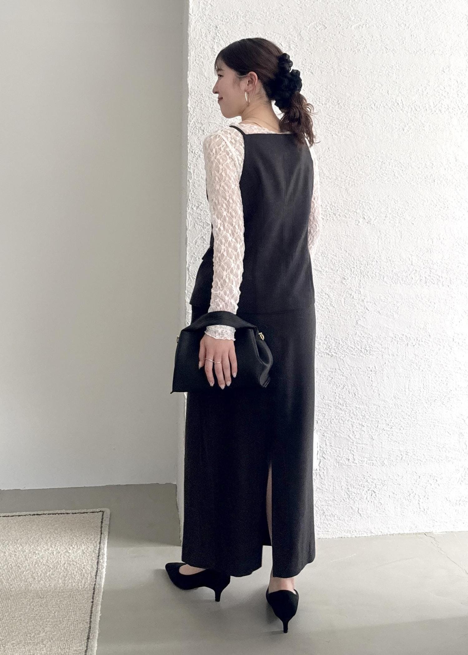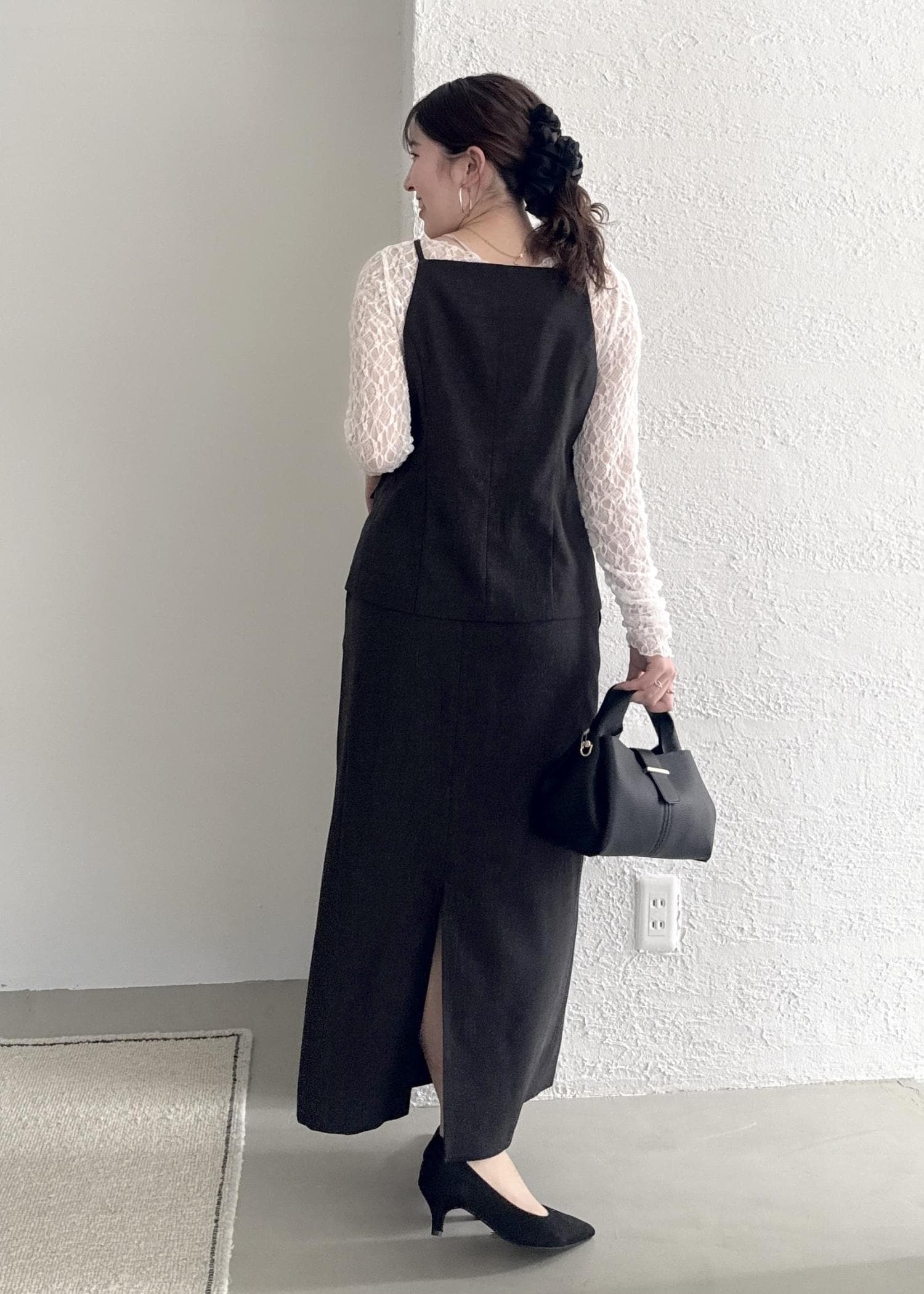 腰回りのラインなどを拾わず、Iラインの綺麗なシルエットのまま着ていただけます。 -