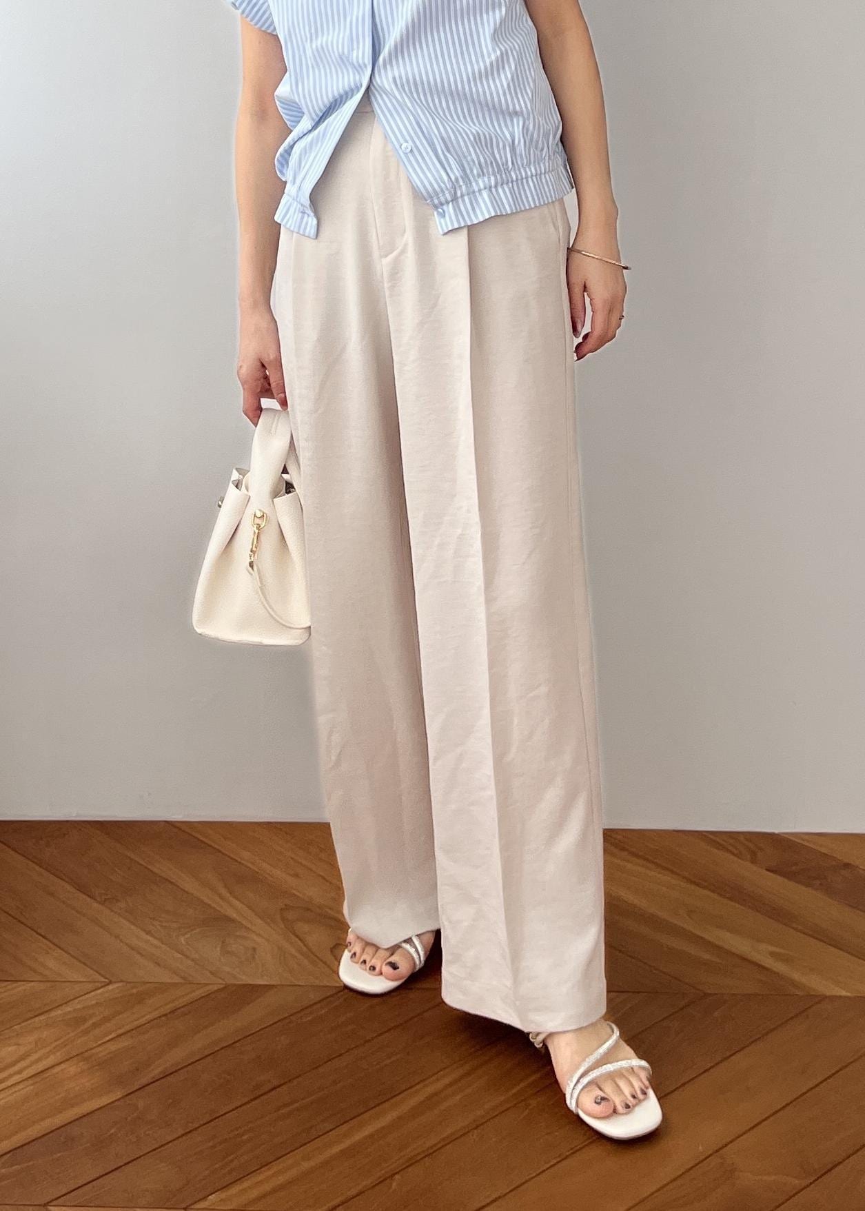 NEW!VIS美easyリネンライクワイドパンツ/イージーケア・接触冷感・セットアップ対応キナリ / S¥5,489レビュー152cmでSサイズ着用し、着丈はペタンコ靴でも床につきませんでした。毎年大人気の美easyシリーズ!夏はこのパンツがないと乗り切れないくらいに大好きです。サラッとした着心地が他にはなく、是非体験してほしいお勧めパンツです!シワにもなりにくく、お洗濯してもすぐ乾くので楽ちんです。