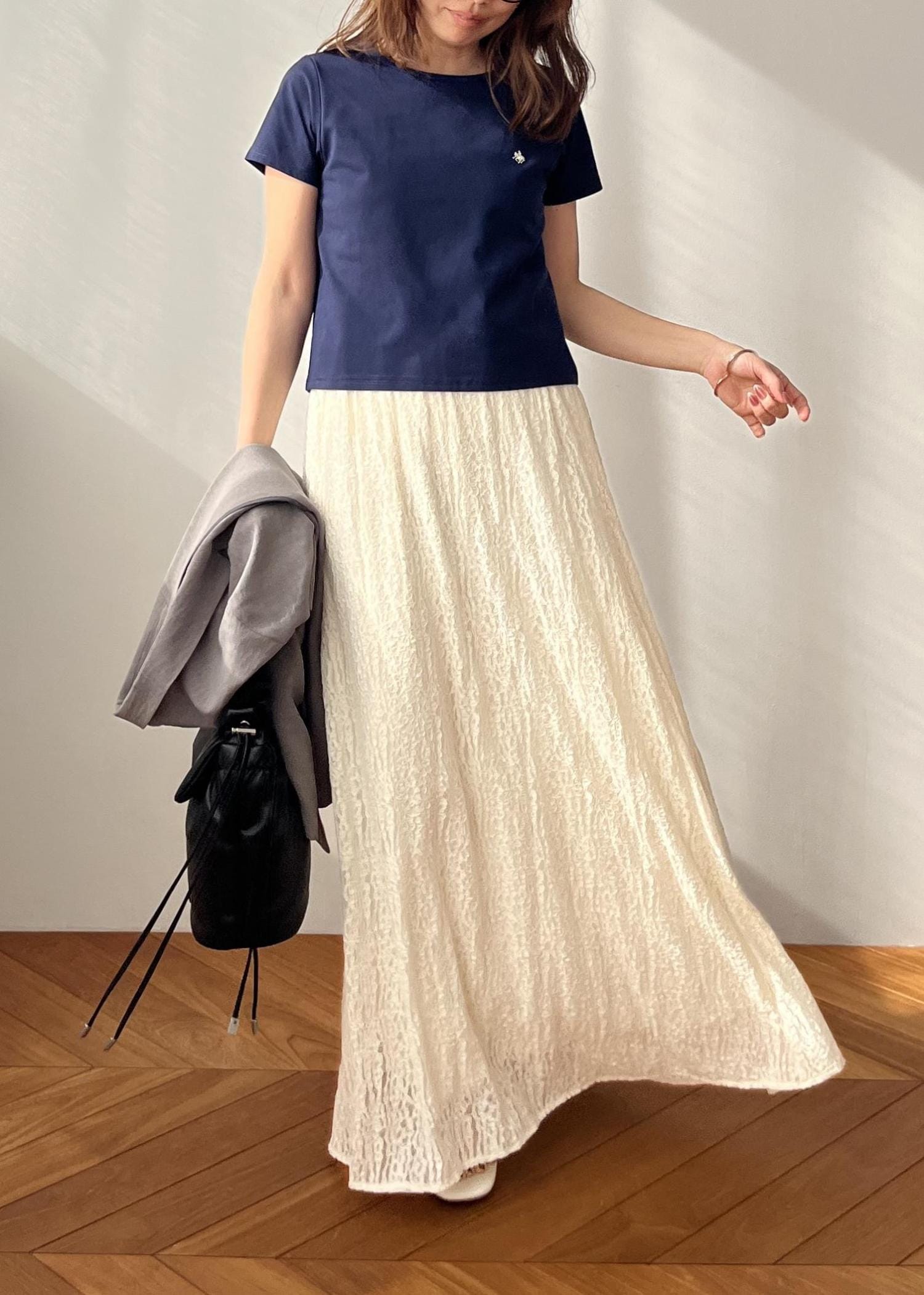 レーススカートって甘くなりがちだけど、