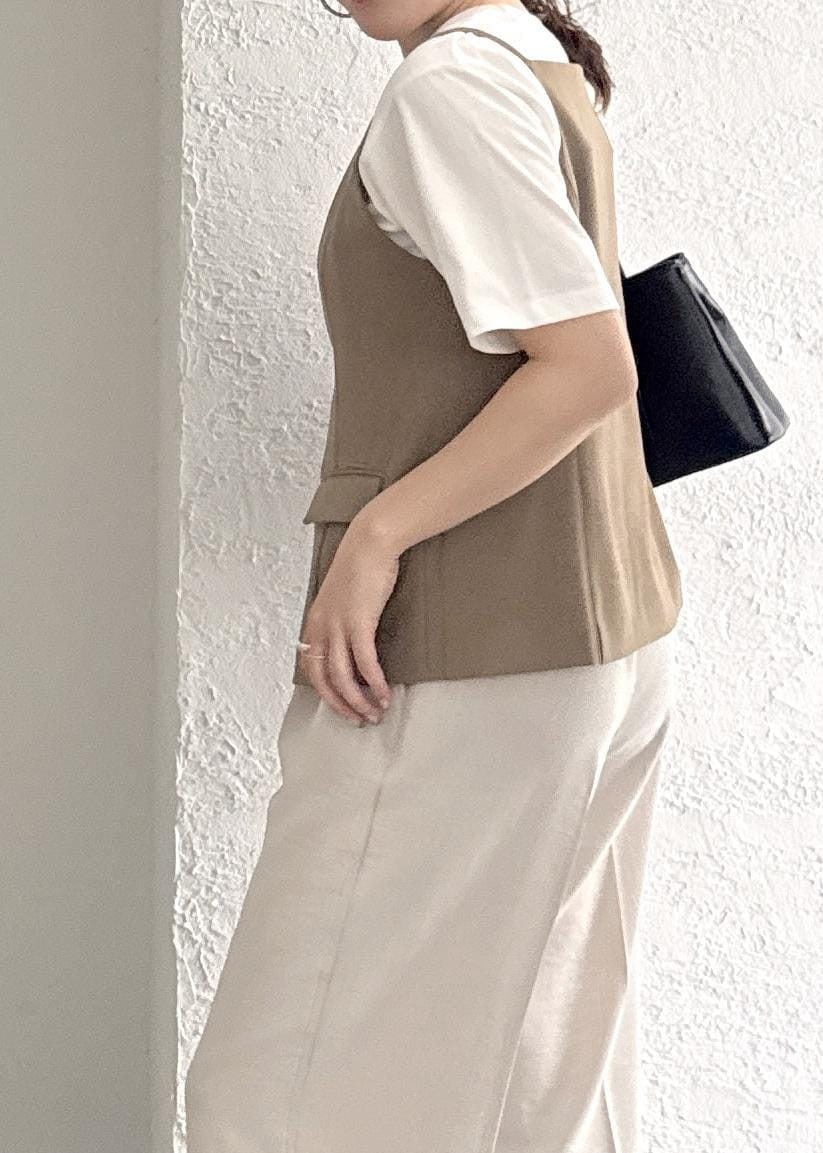 袖の部分ももたつかず、ビスチェ重ねななどしてもシルエットが崩れません。 -