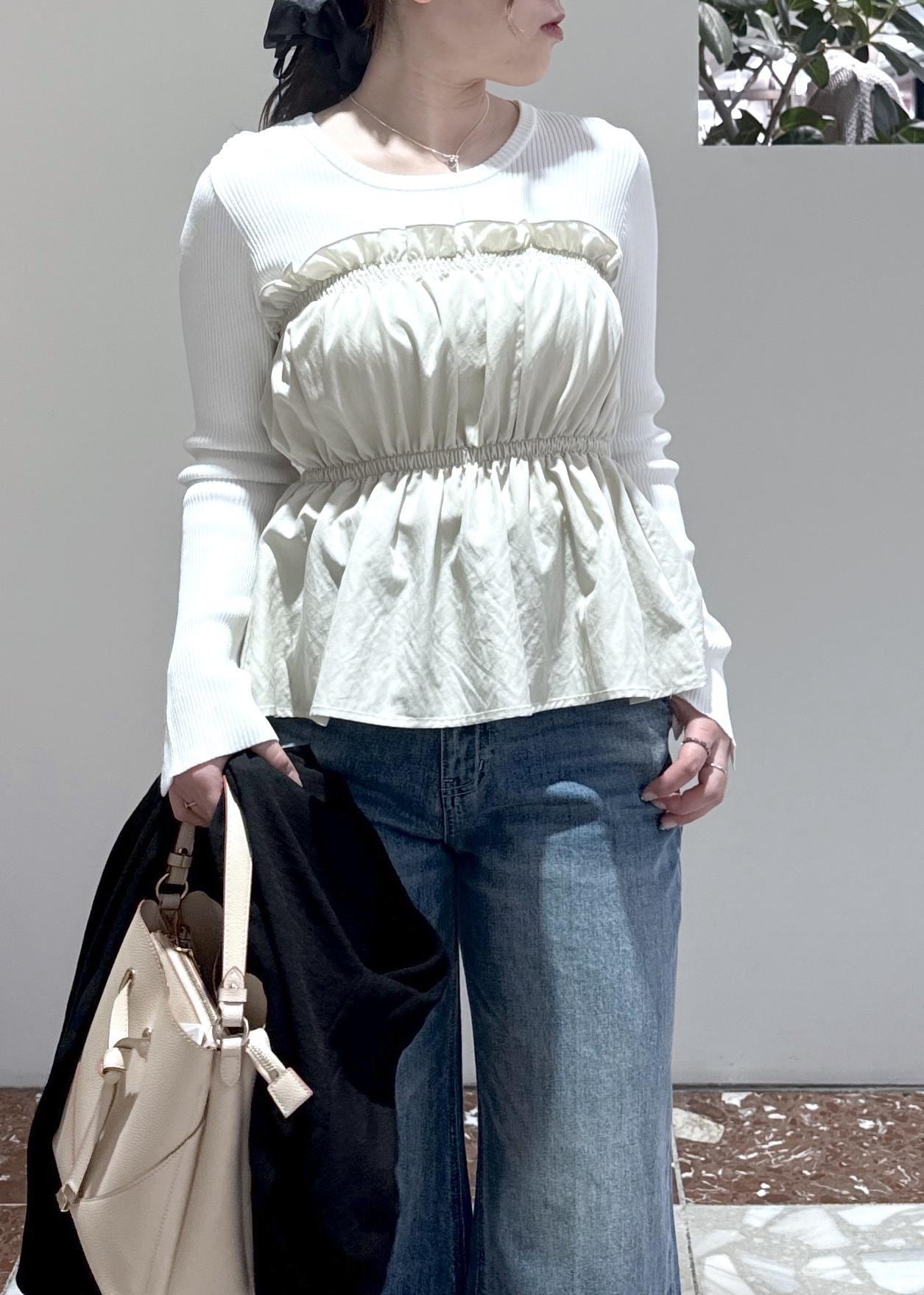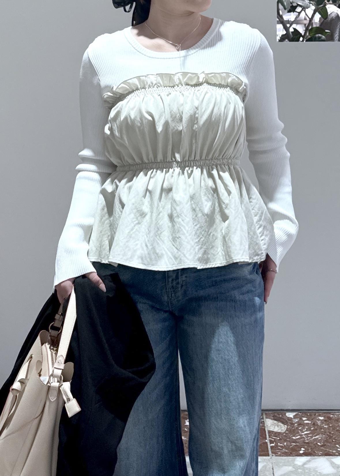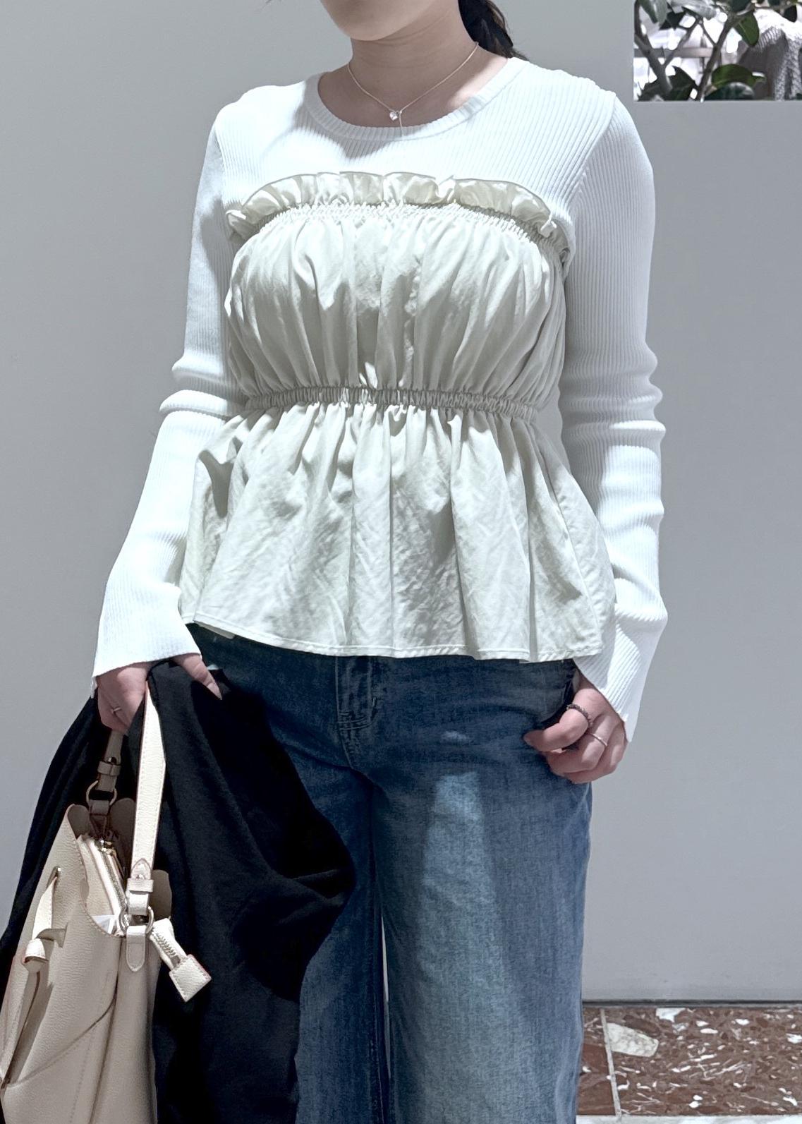 VISシャーリングビスチェドッキングニット/イージーケアキナリ / F¥5,929レビューカジュアルにも着れて1枚でも華やか見え!