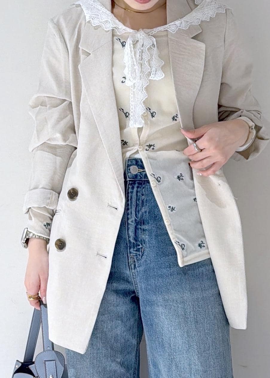 裏地が付いてないのでサラッと羽織りやすい1着です◎