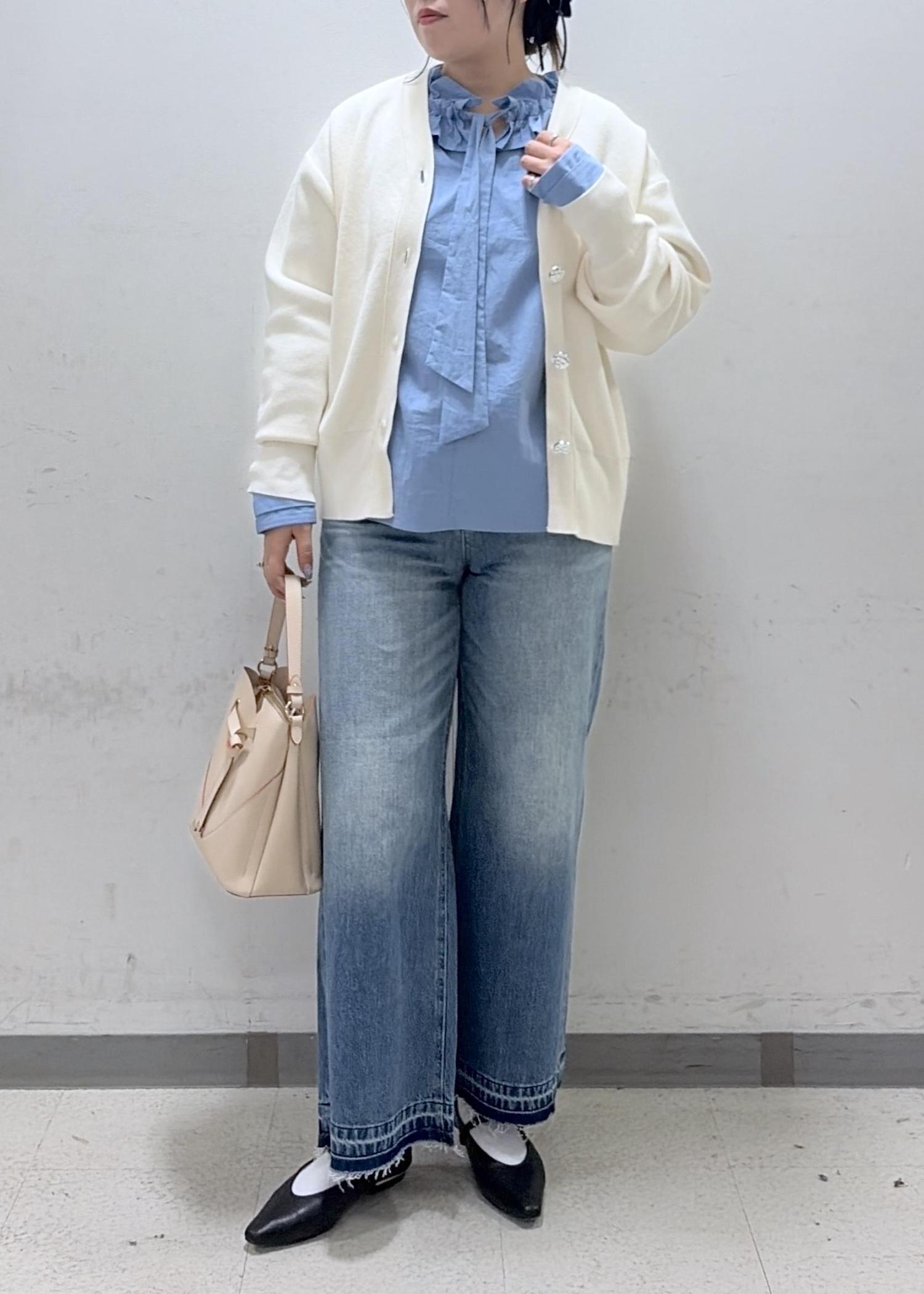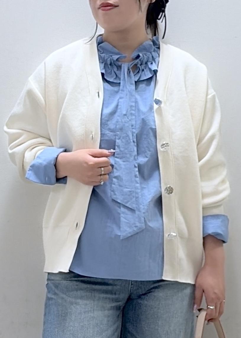 私は骨格ストレートなので、ボタンを全部閉めずに着るとよりスッキリ見えやすいです。 -