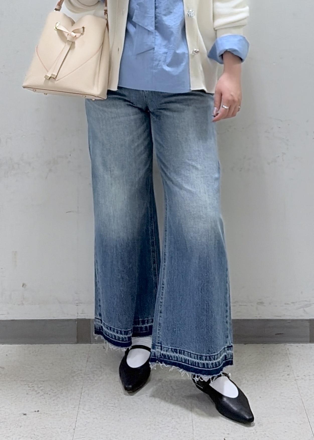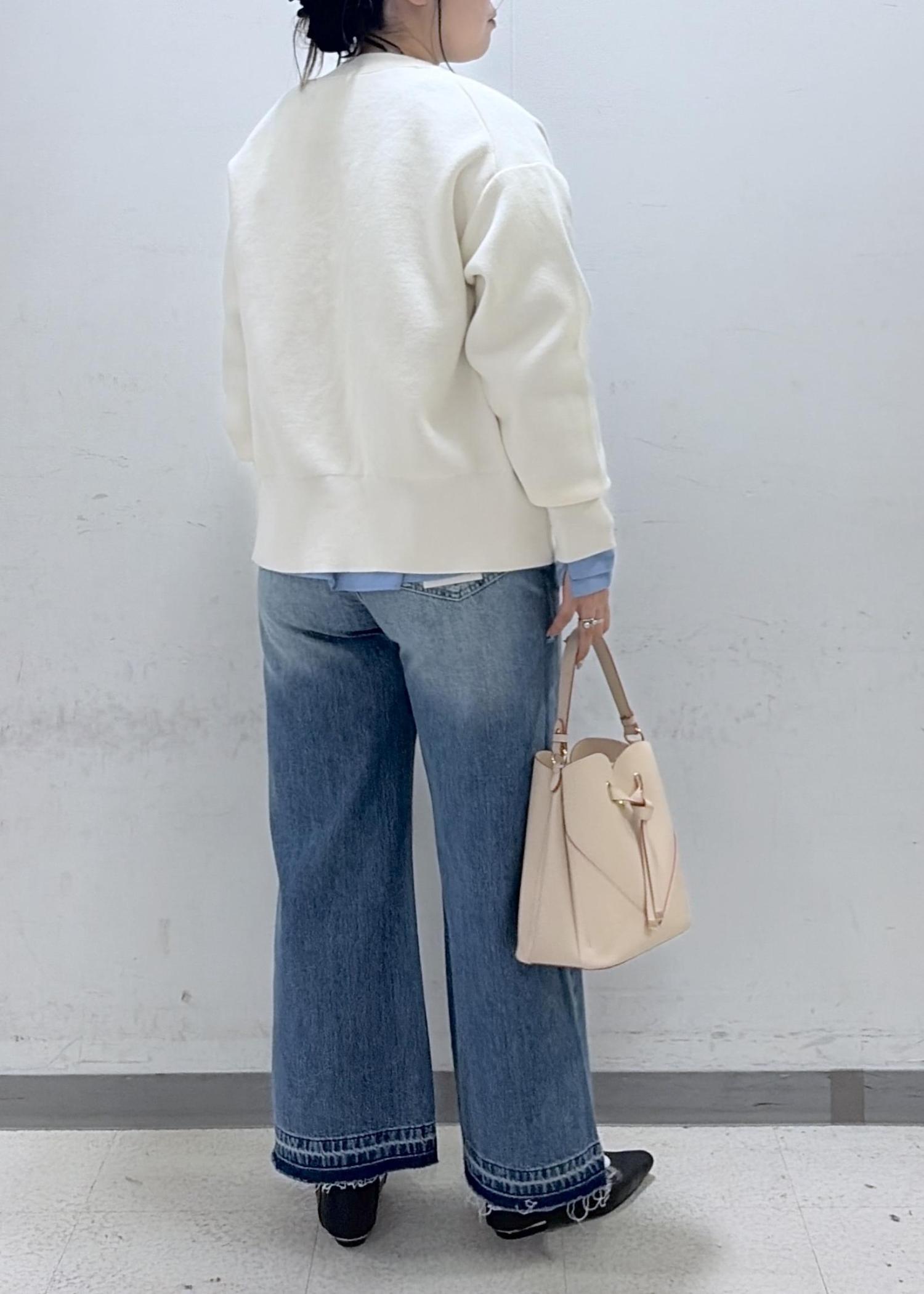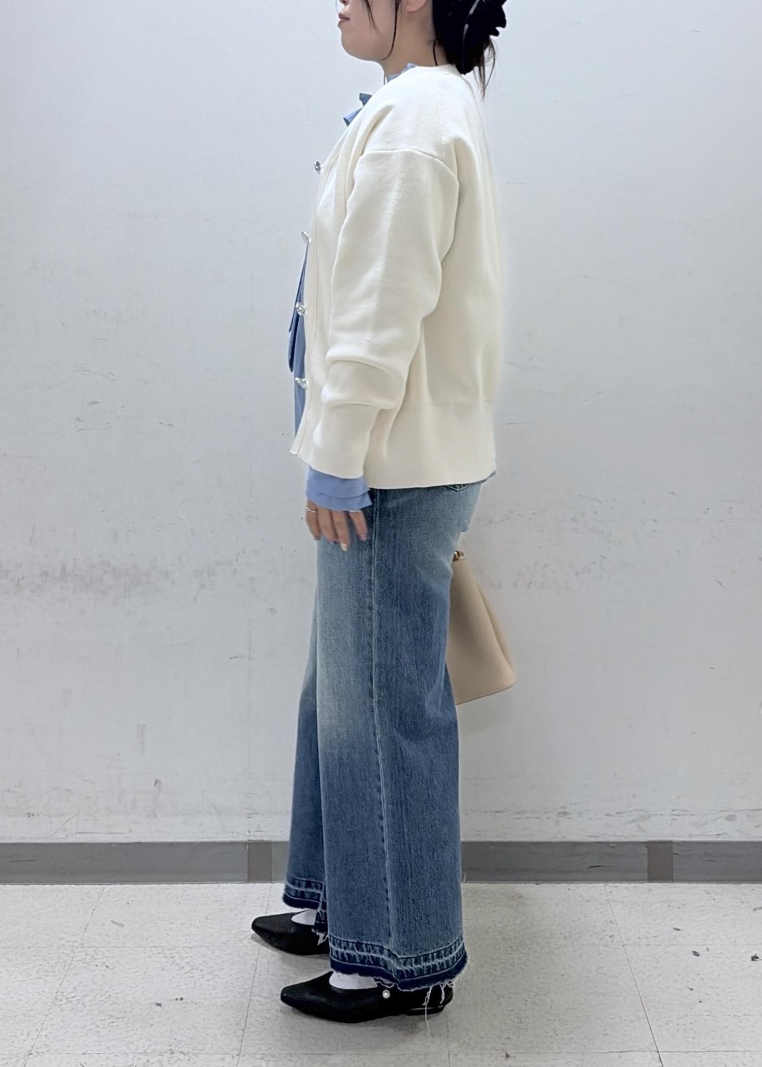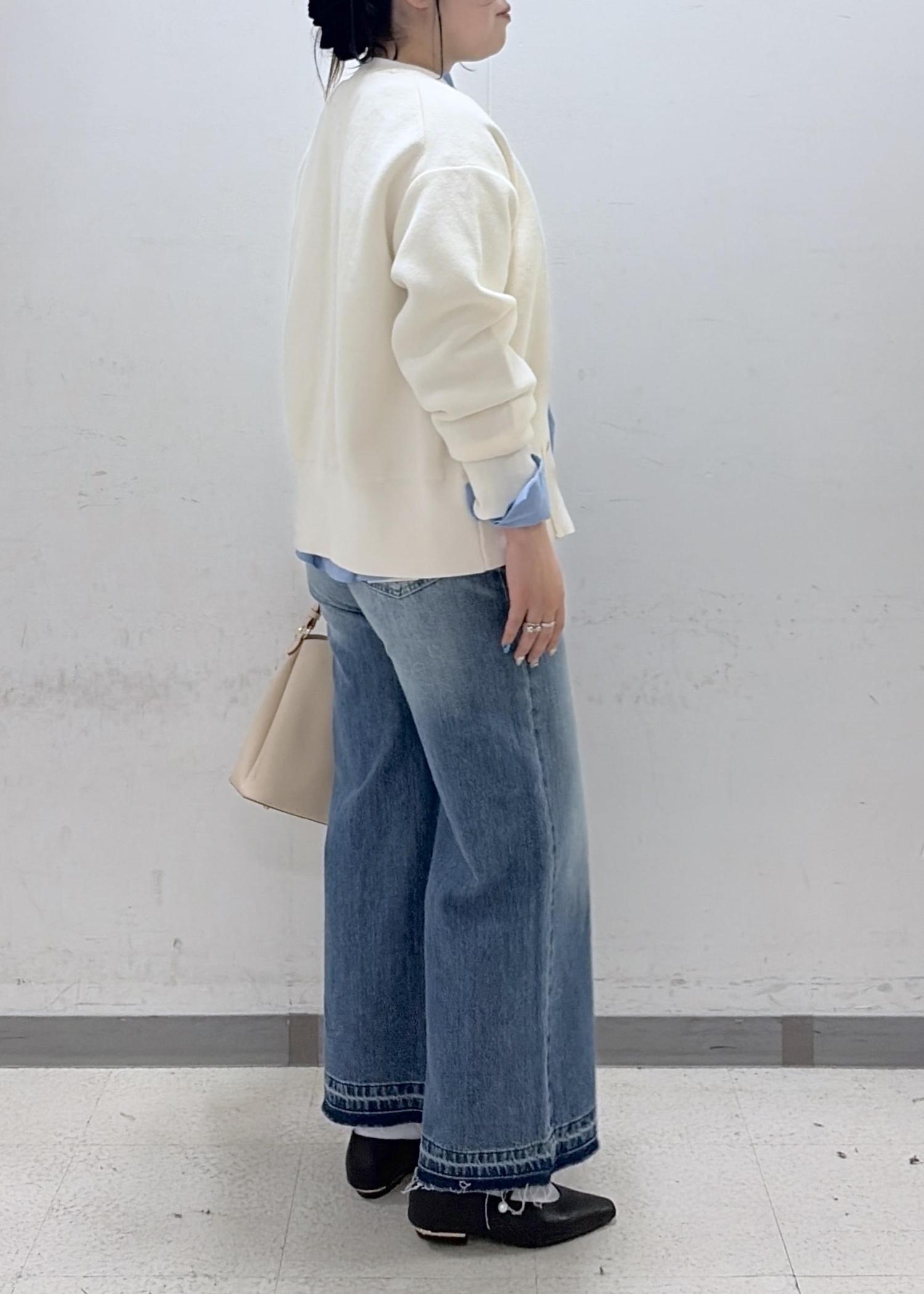 デニム特有の硬さは少なく、柔らかめな素材です。