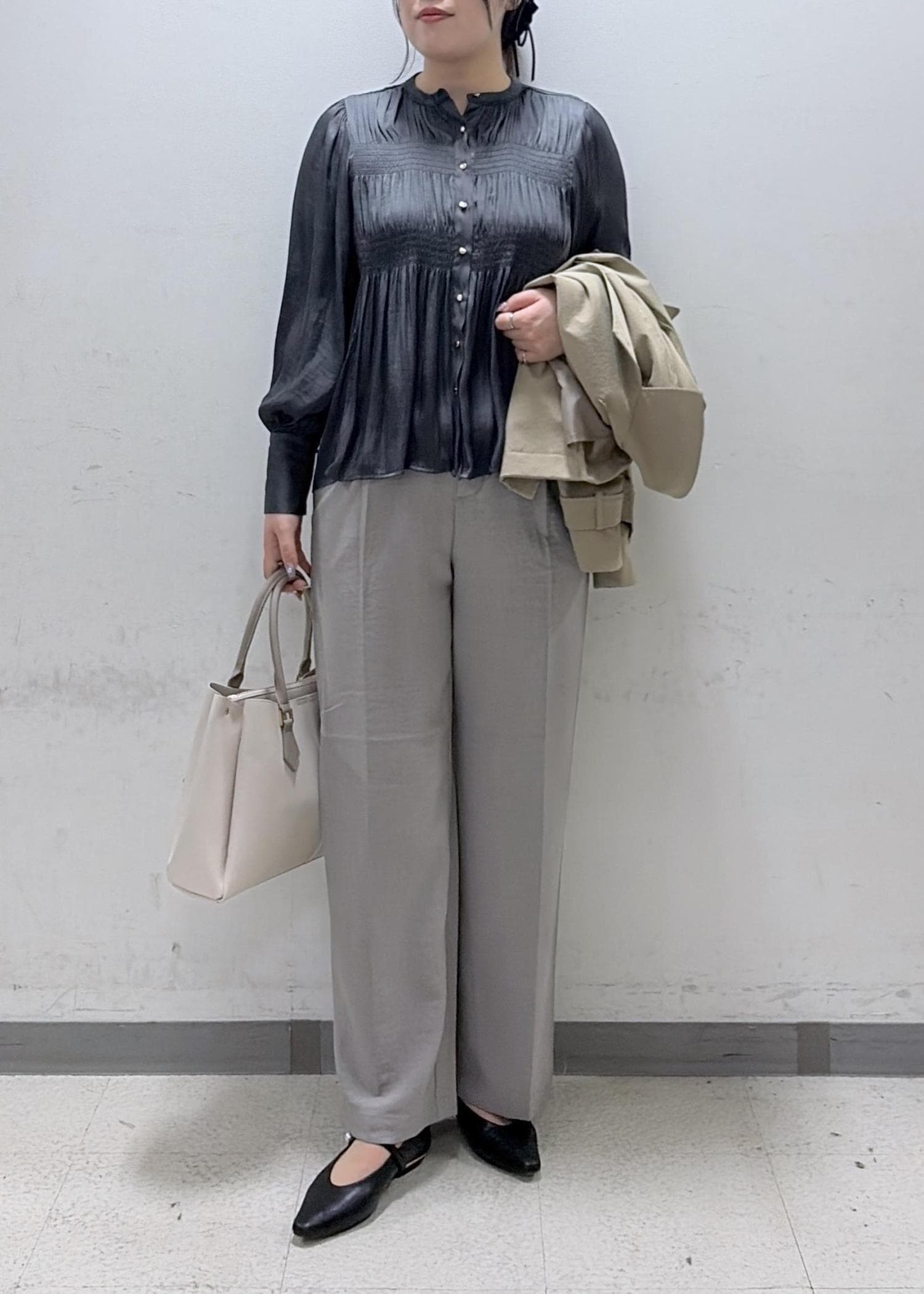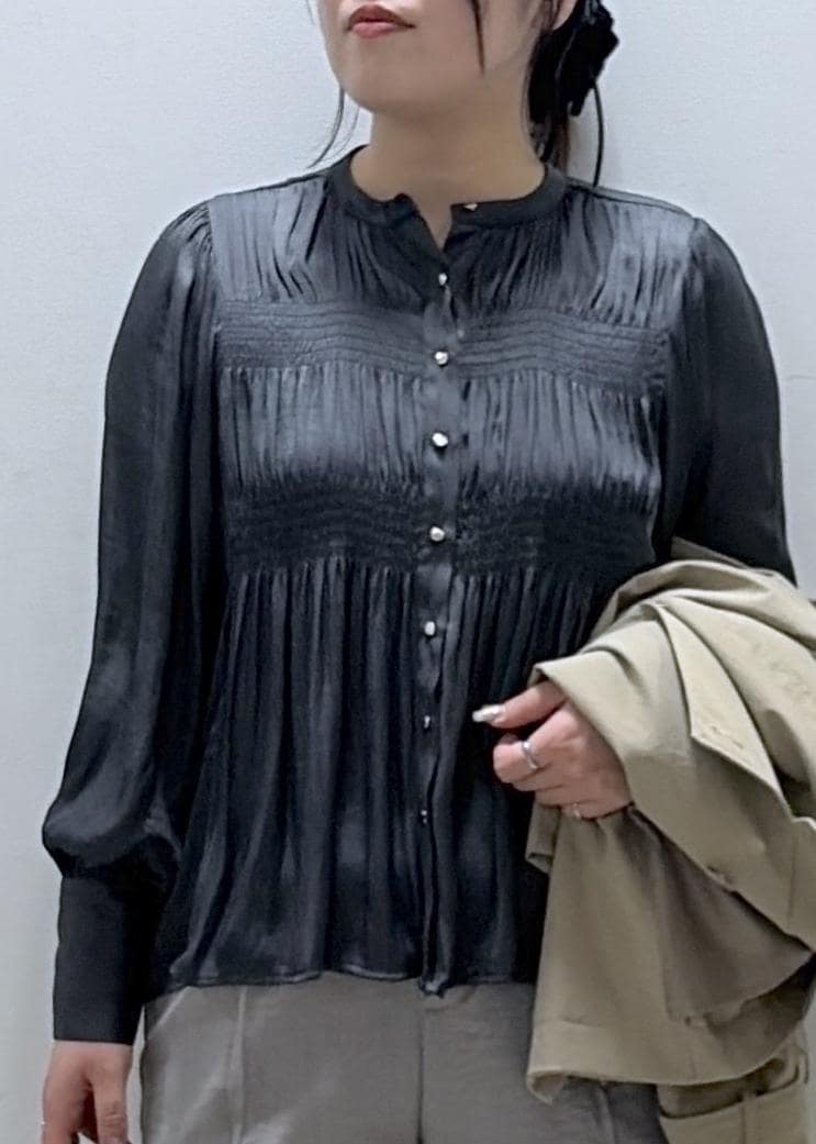 VISエアリーサテンシャーリングブラウス/イージーケアチャコール / F¥5,489レビュー上品な光沢感のある素材のブラウスです。