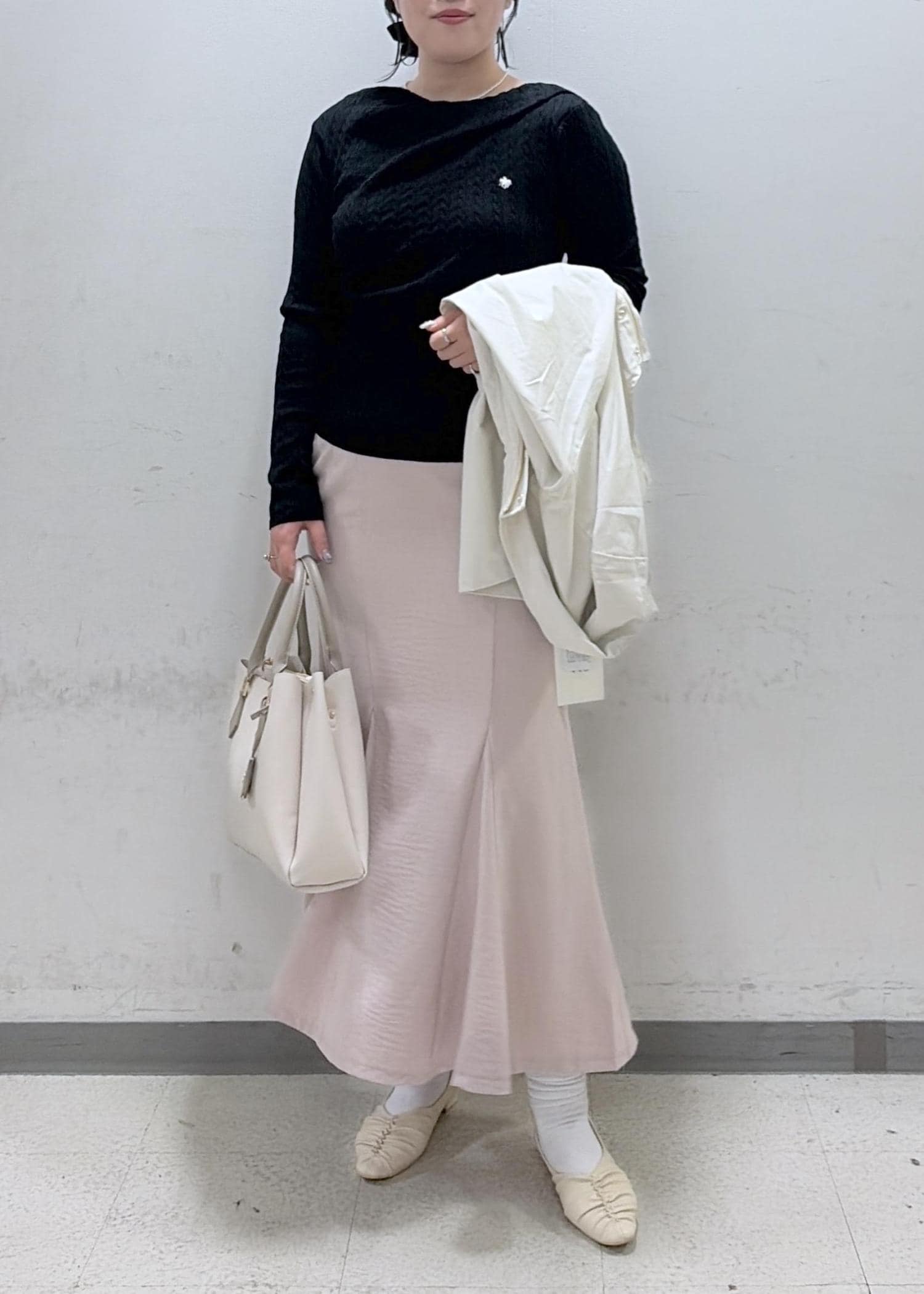 デートにぴったりな淡色ピンクのスカートスタイルです❤︎