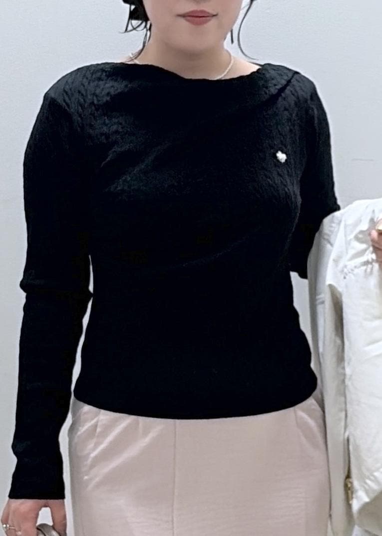 ドレープデザインで、首周りがスッキリと見えやすいです。