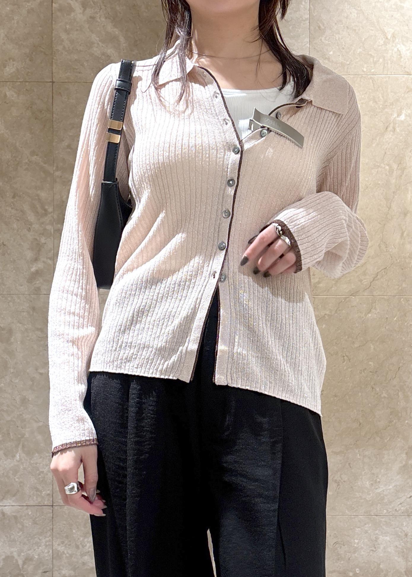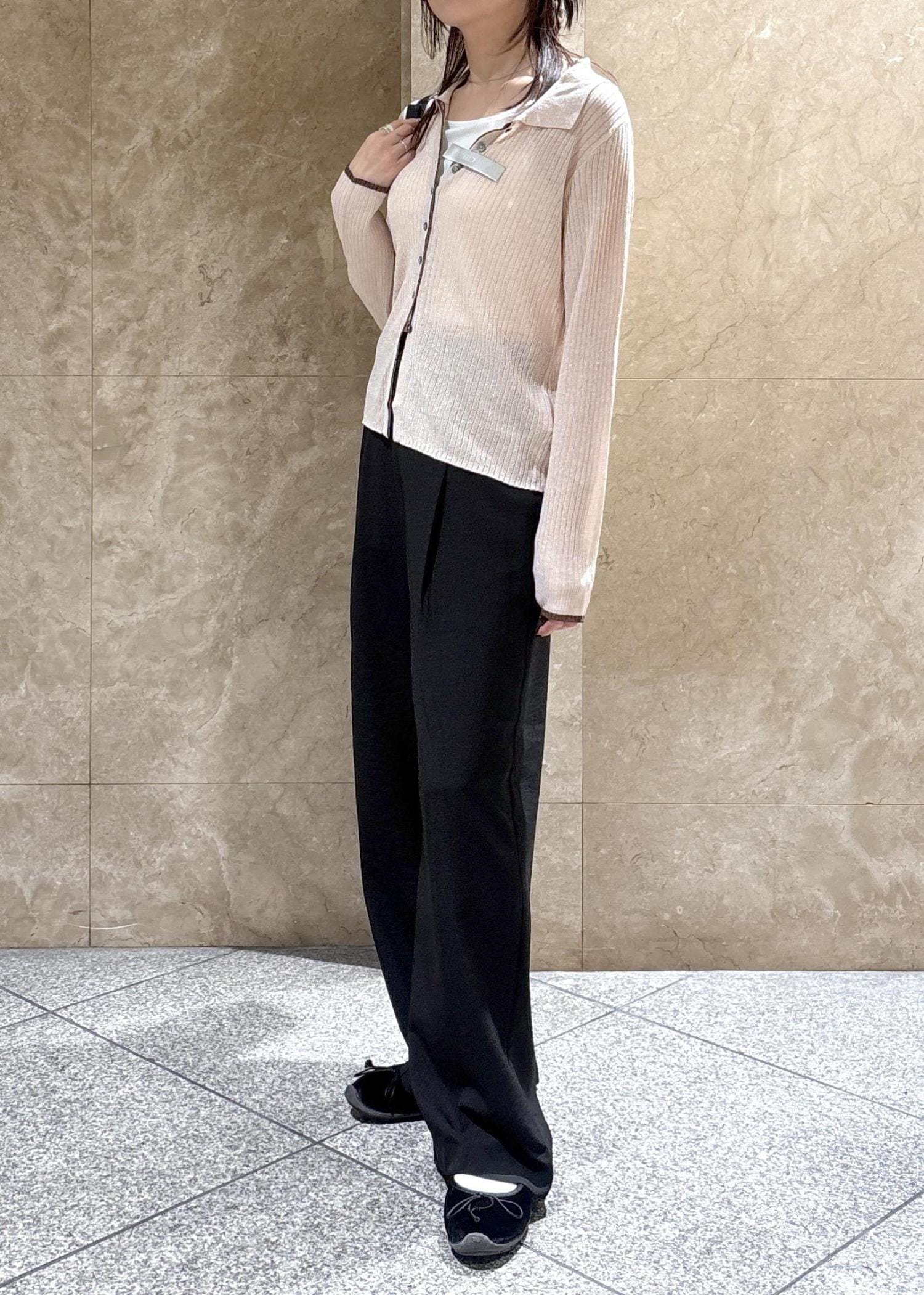VISポロ襟配色シアーリブカーディガン/イージーケアピンク / F¥6,589レビューシャリシャリしたドライタッチな素材感。