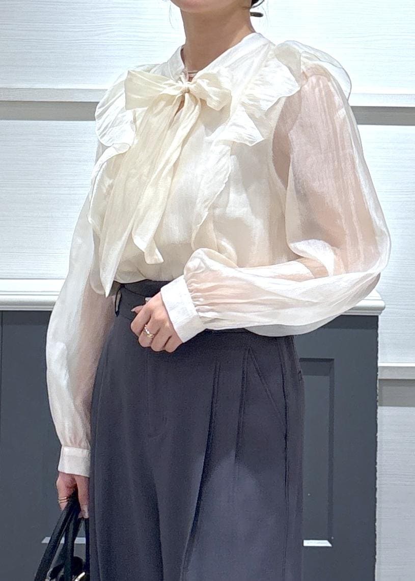 VISシャイニーボウタイ長袖ブラウス/イージーケア・2WAYキナリ / F¥5,929レビューシアー感が可愛い1枚で着映えするブラウスです!