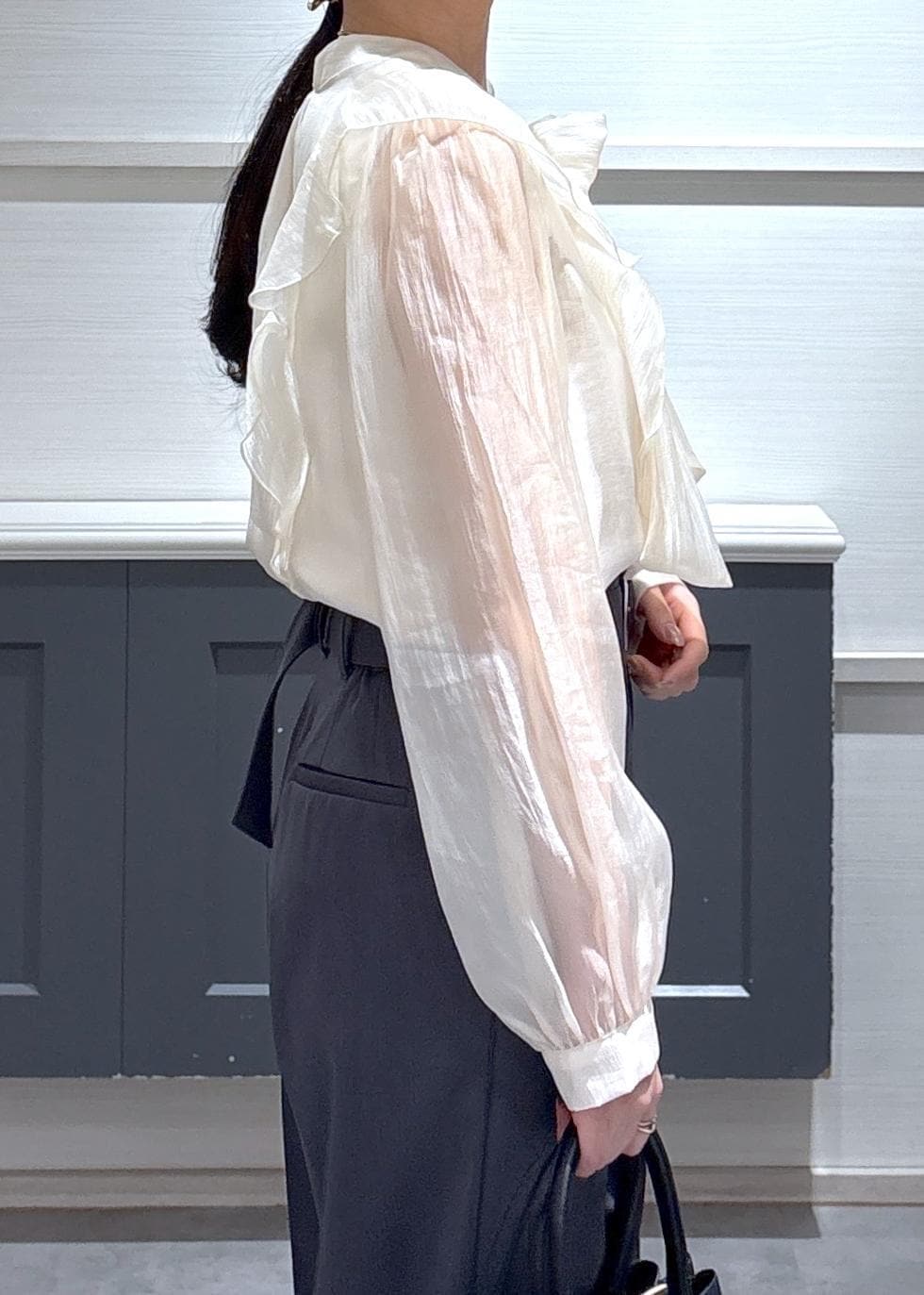 袖部分はしっかり透けますが、見頃部分は裏地付きなので安心して着用できます◎ -