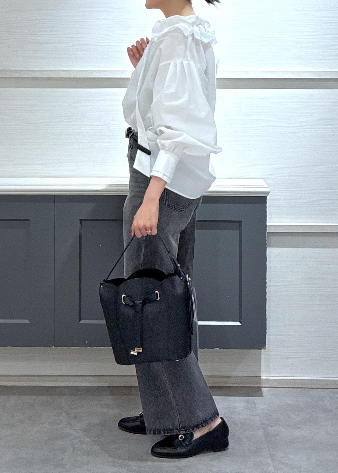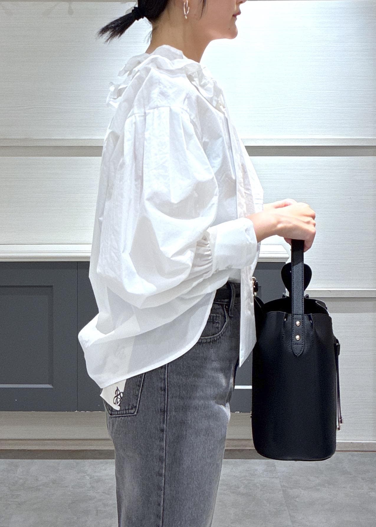 VISフリルネックブラウスオフホワイト / F¥6,589レビュー身長168センチで袖は長めで、ヒップには隠れる着丈です!