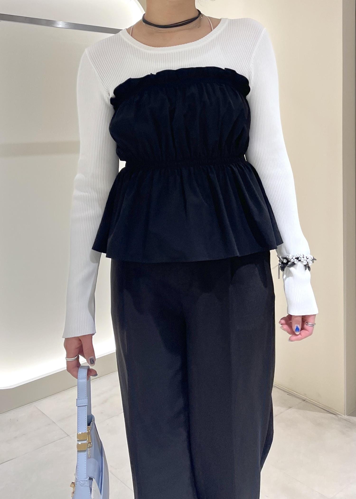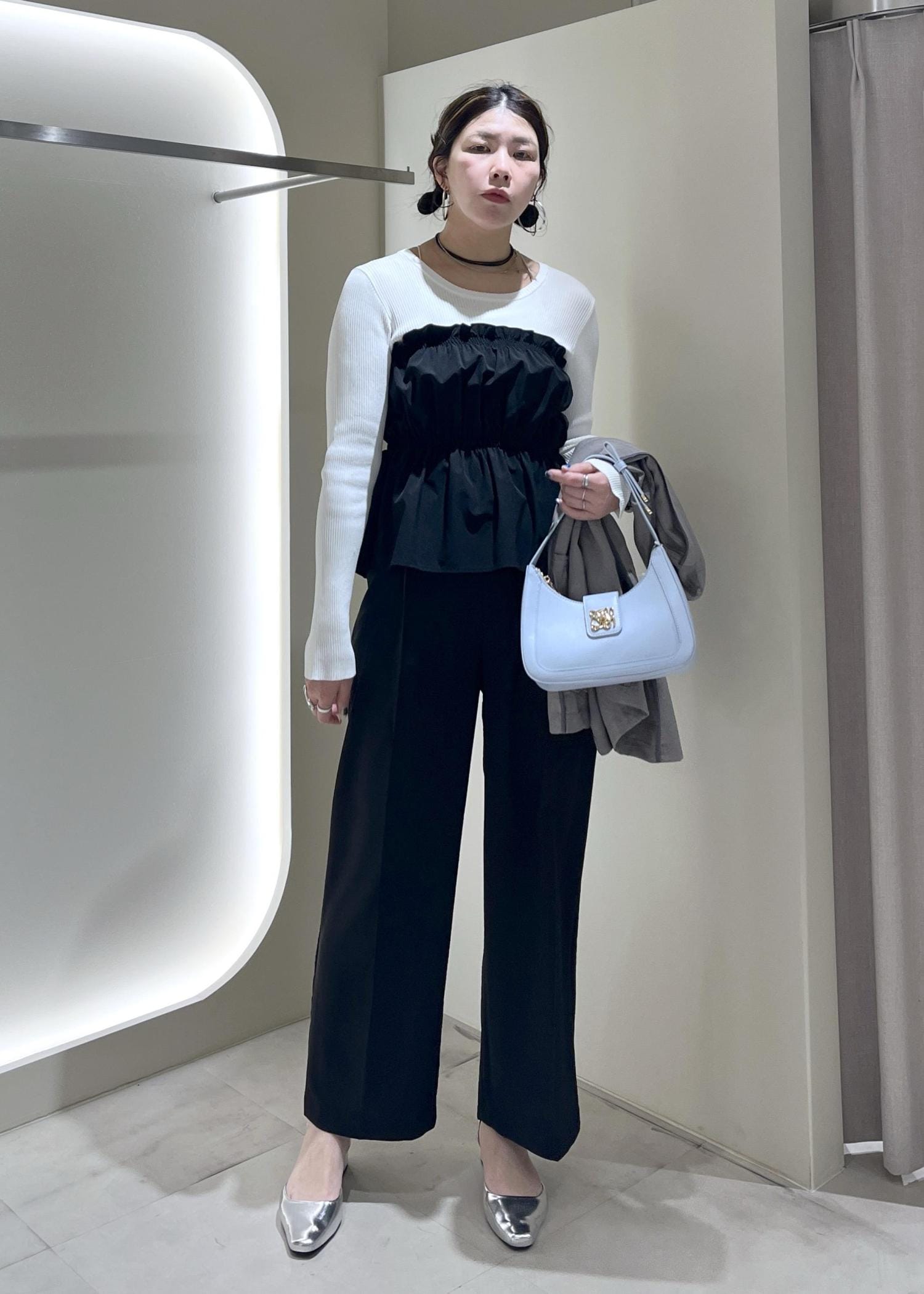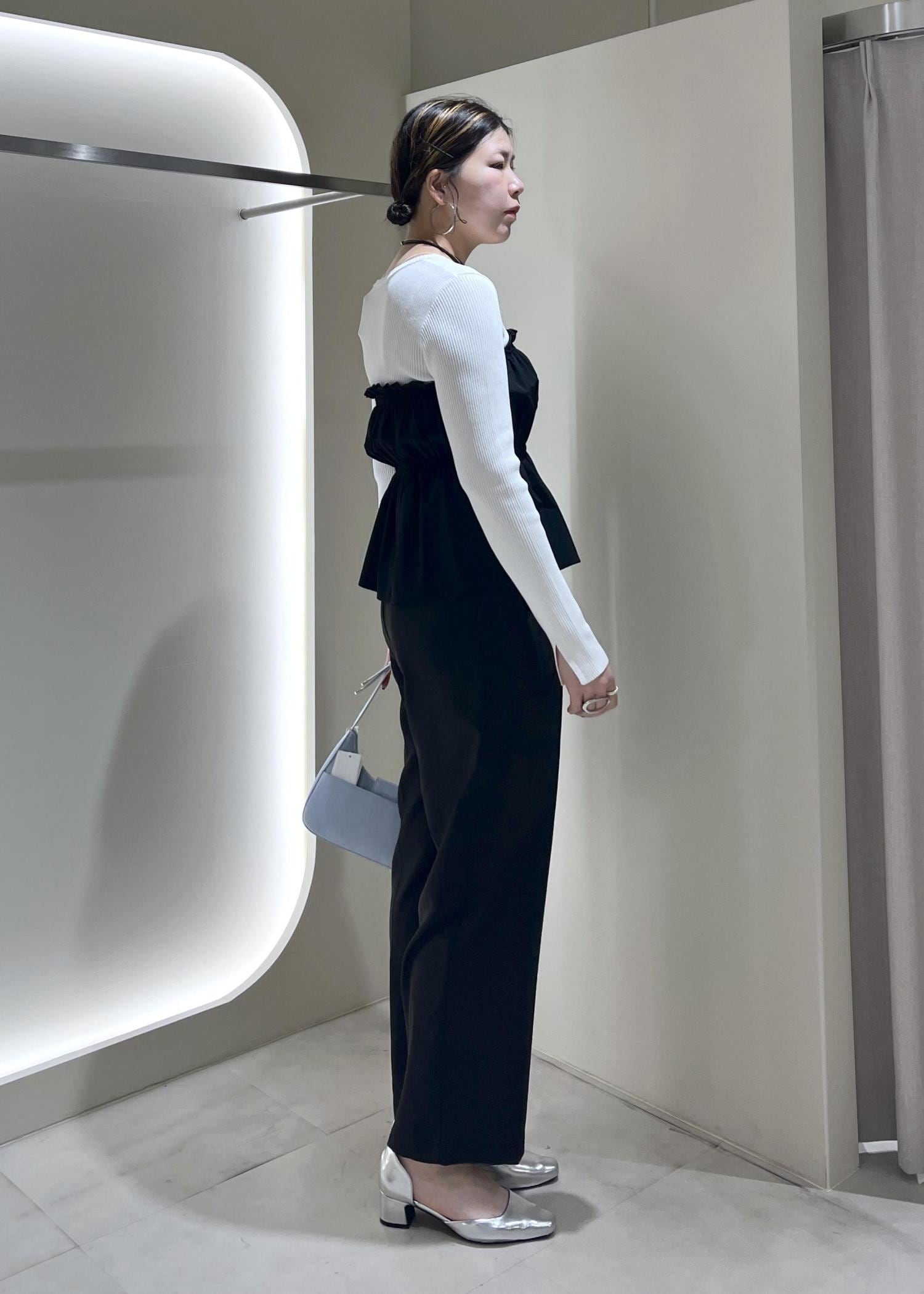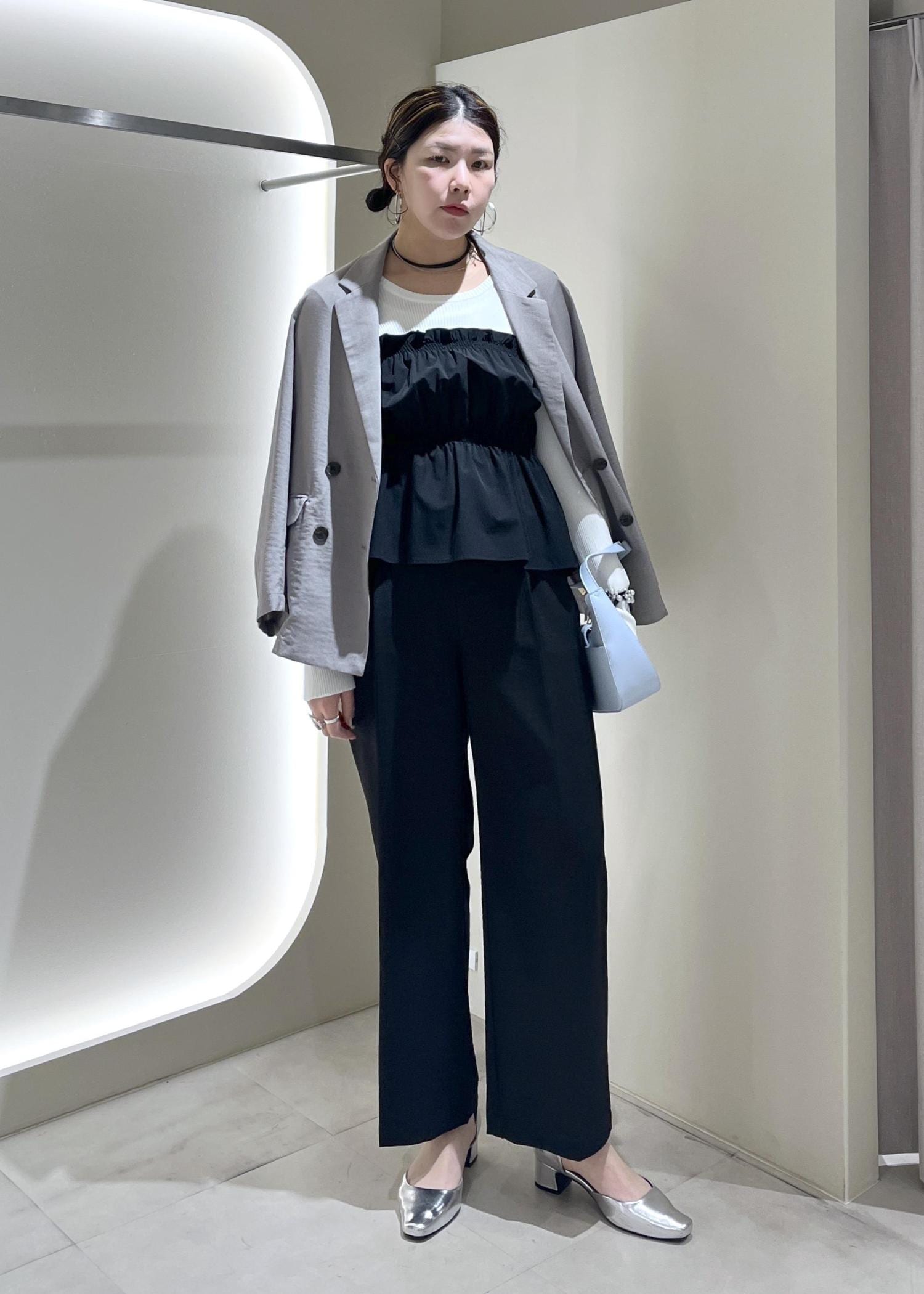 ビスチェドッキングとパンツのカラーを合わせてちょっとキレイ見え!お仕事や普段使いにもおすすめです!