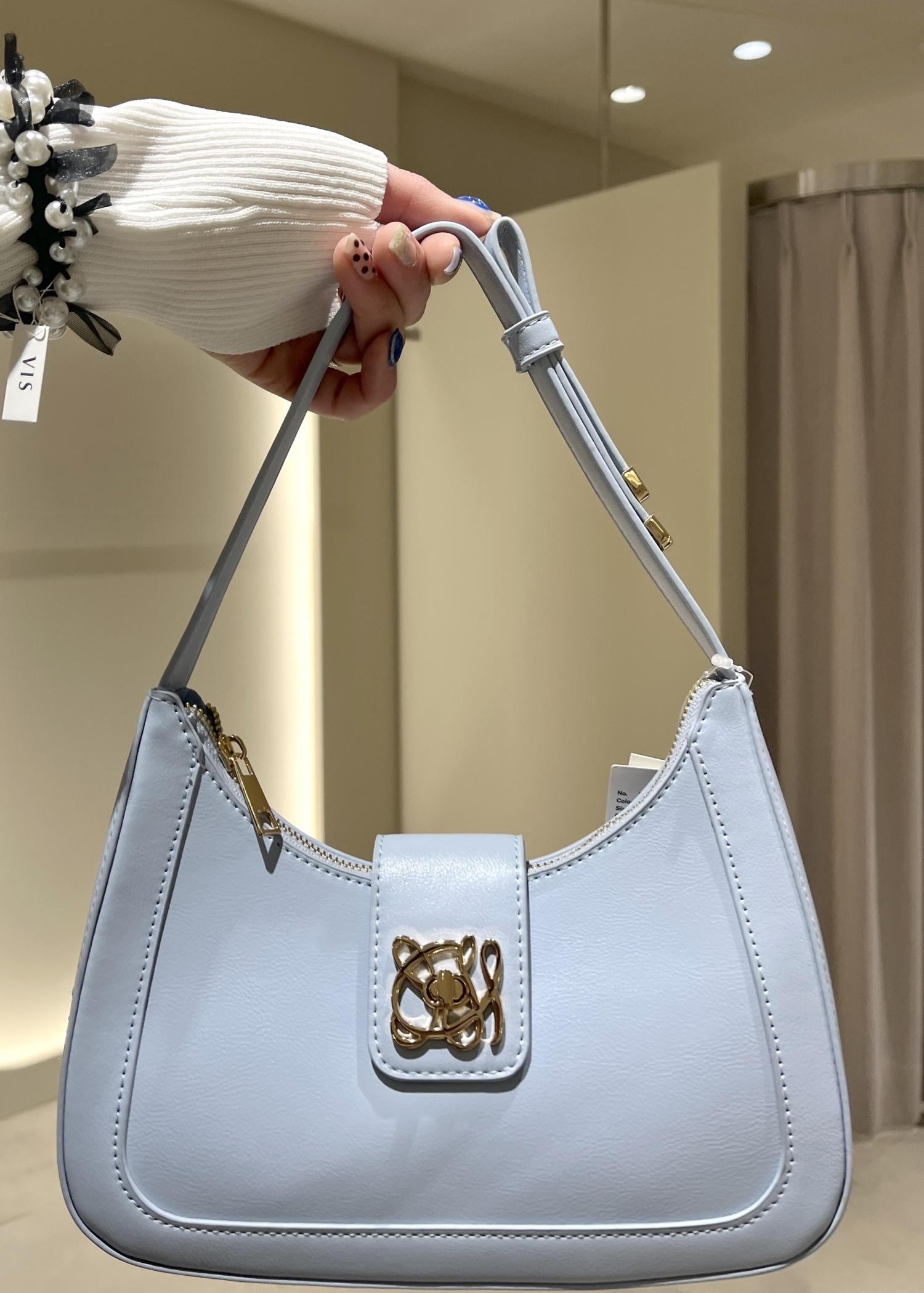 VIS【新色追加】【180℃美人見え】ハンドルリボンワンショルダーバッグサックス / F¥5,929レビュー高見え間違いなし!ショルダー部分にさりげないリボンがあったり、肩掛けした時の収まりのいいマチ幅などこだわり満載!コンパクトながらしっかり荷物が収まります。