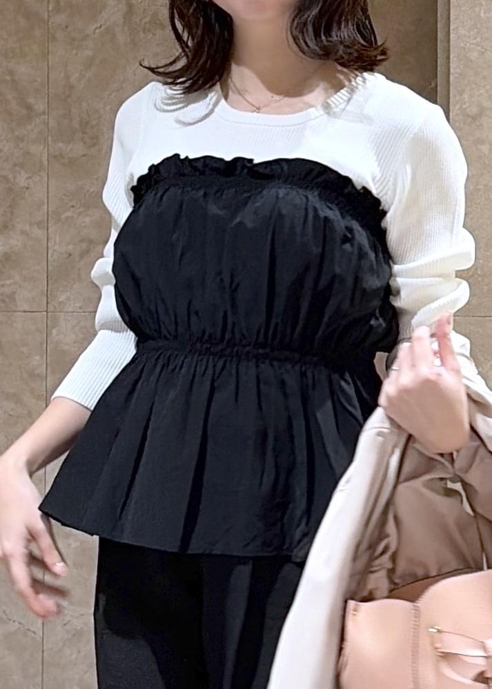 VISシャーリングビスチェドッキングニット/イージーケアブラック / F¥5,929レビュー身長149cmで、少しお尻にかかるぐらいの丈感でした!