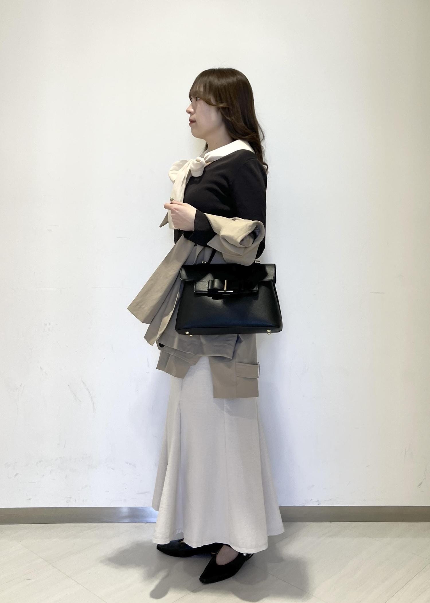 VISバイカラーリボンドッキングニットチャコール / F¥6,589レビューサイズ感は程よくゆとりがあります!大きめリボンを結べるので肩幅をカバーしてくれます◎ニットで伸縮性もあり着心地良いです。着丈は腰にかかるくらいでした♡