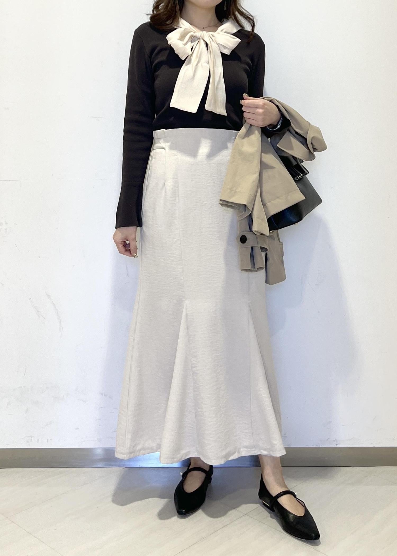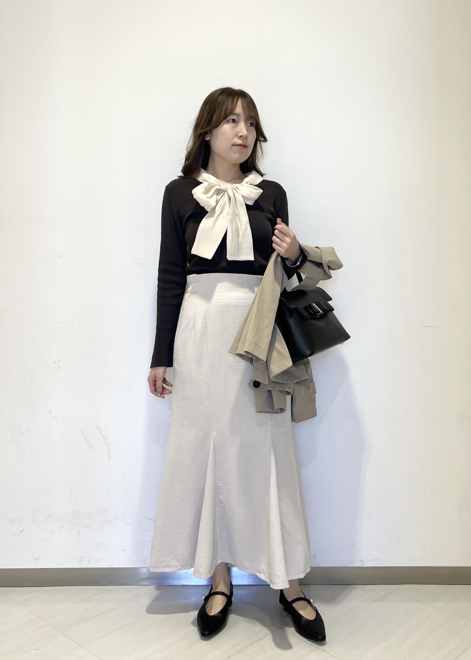 NEW!VIS美easyリネンライクマーメイドスカート/イージーケア・接触冷感・セットアップ対応キナリ / L¥5,489レビュー164cm、Mサイズだとおしり周りが気になったのでLサイズ着用。着丈はくるぶし上でスニーカー等ぺたんこ靴でもバランス良く履けます◎