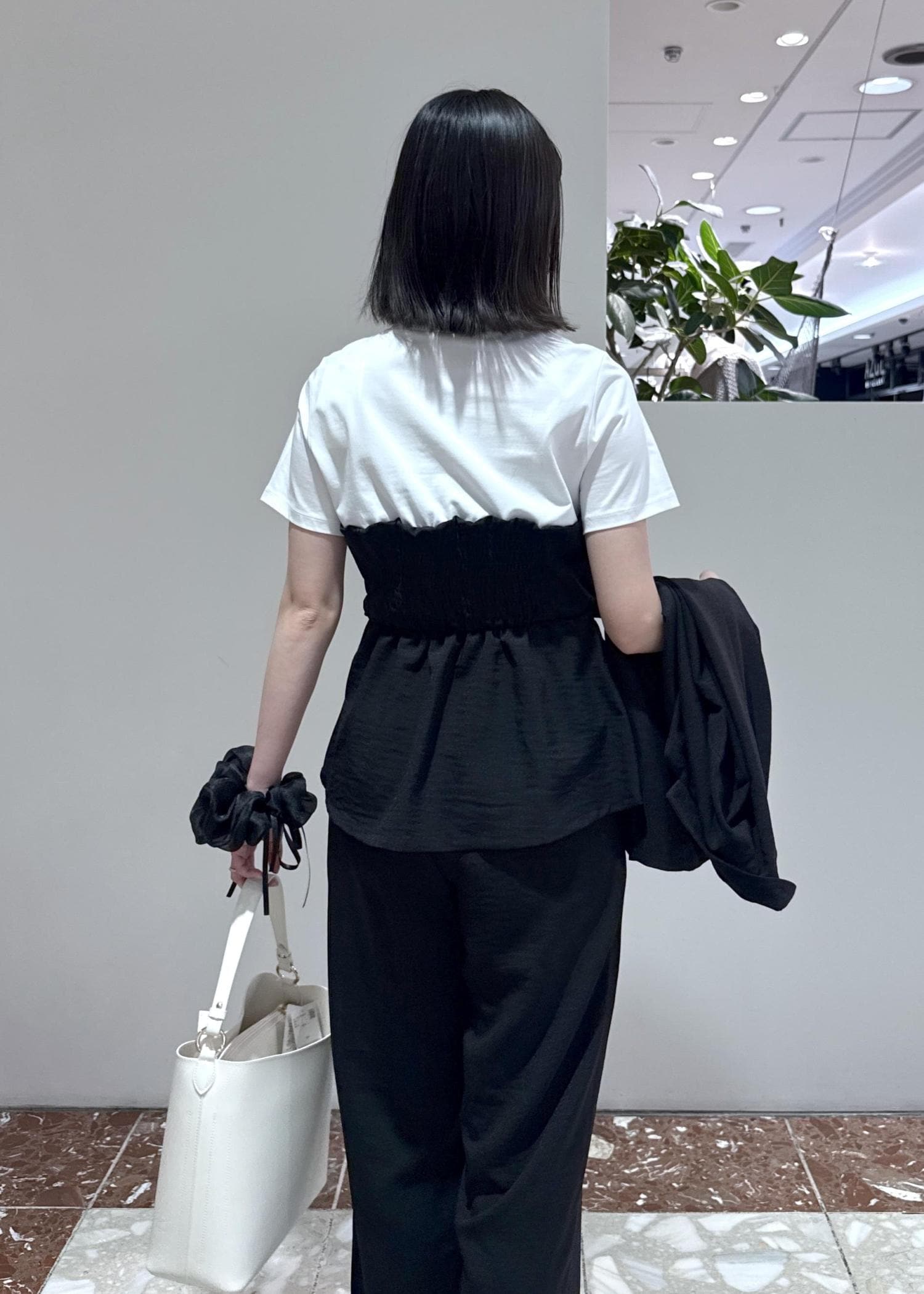 NEW!VIS美easyリネンライクリボンビスチェトップス/イージーケア・接触冷感・セットアップ対応ブラック / F¥5,489レビュー164cmで腰が隠れるくらいの着丈です。