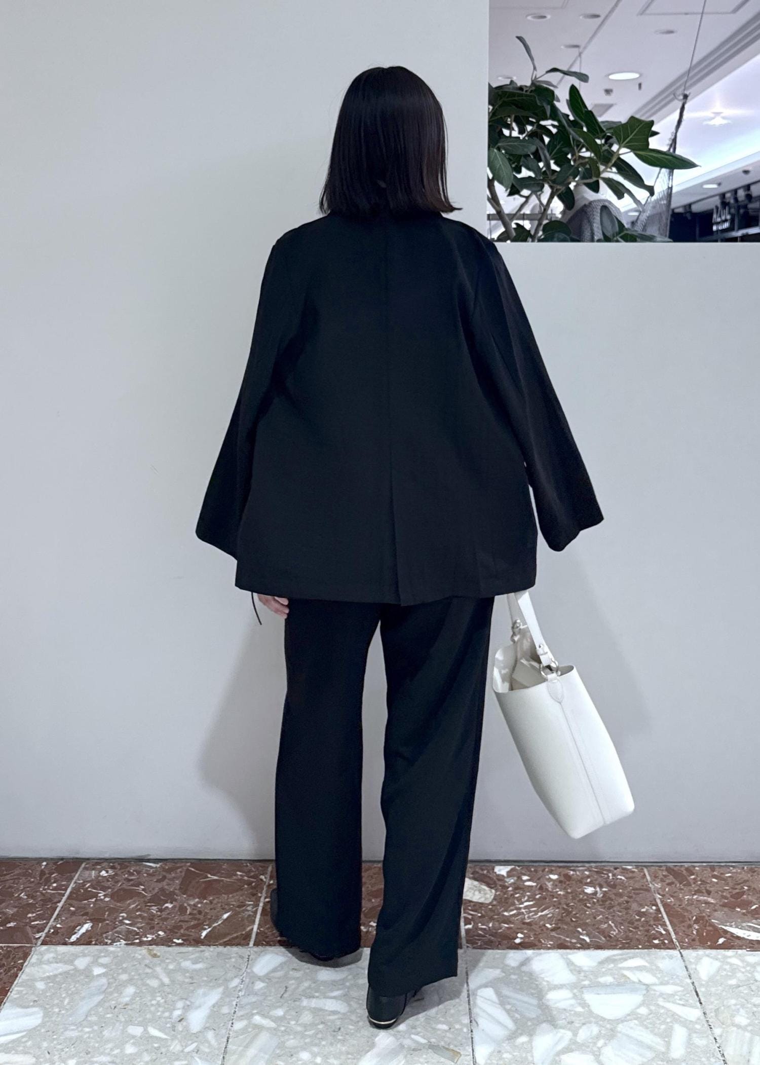 NEW!VIS美easyリネンライクテーラードジャケット/イージーケア・接触冷感・セットアップ対応ブラック / M¥7,909レビュー164cmでMサイズ着用で、ヒップが隠れる着丈です。