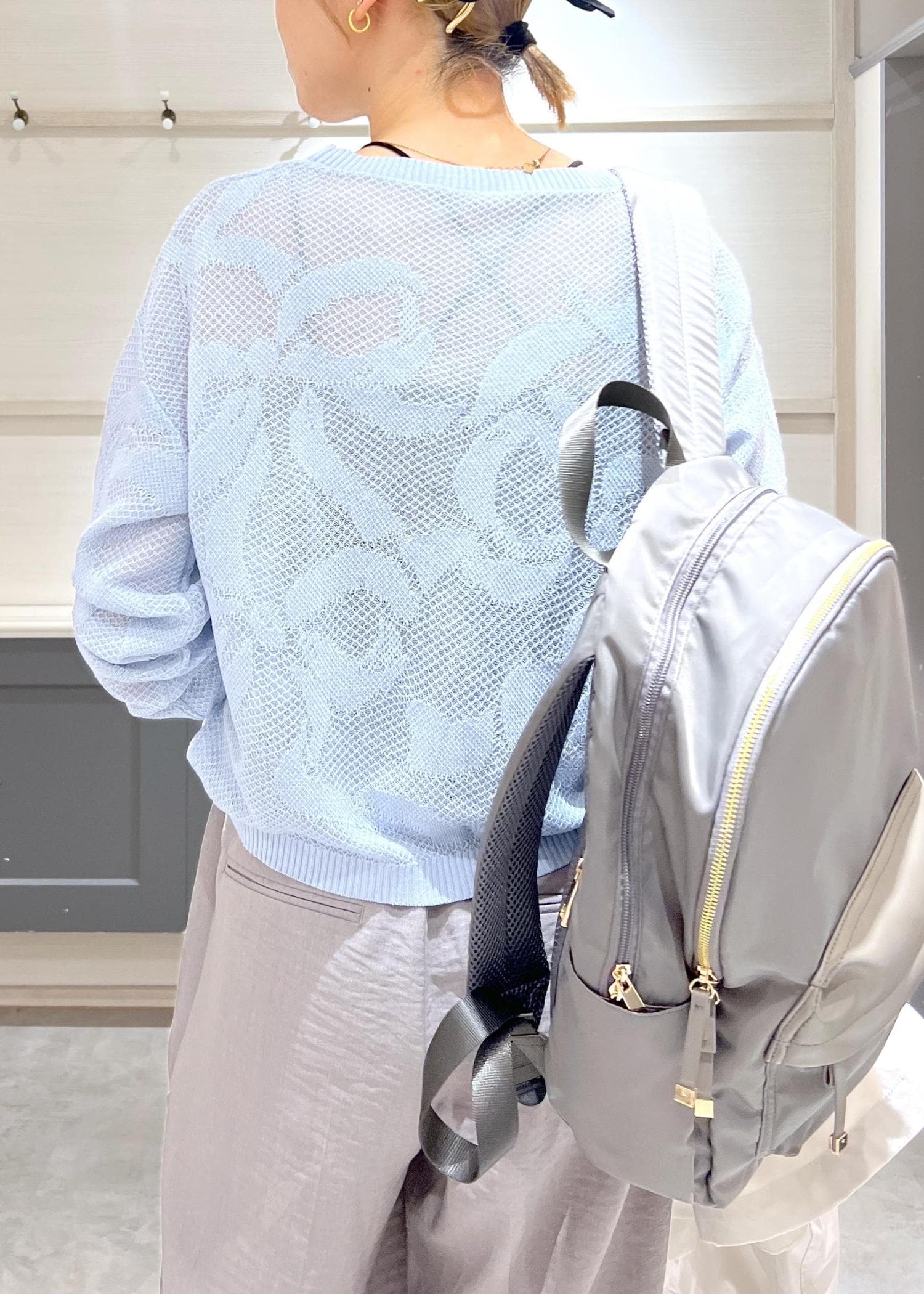 リボン柄のメッシュジャガードが甘くなりすぎず、大人でも◎ -