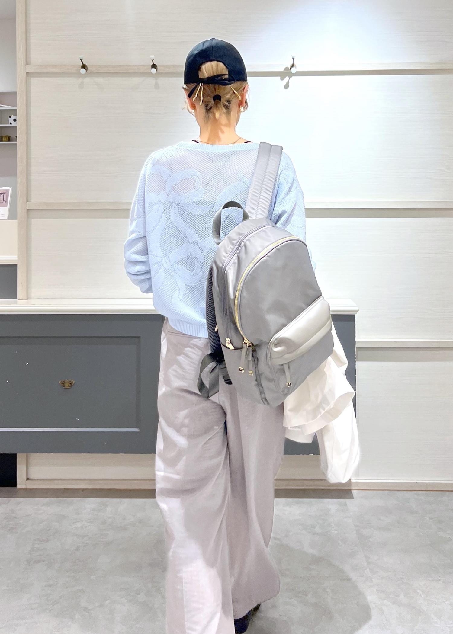 微光沢素材でキレイめに合わせていただけるので、お仕事にも使いやすいです◎ -