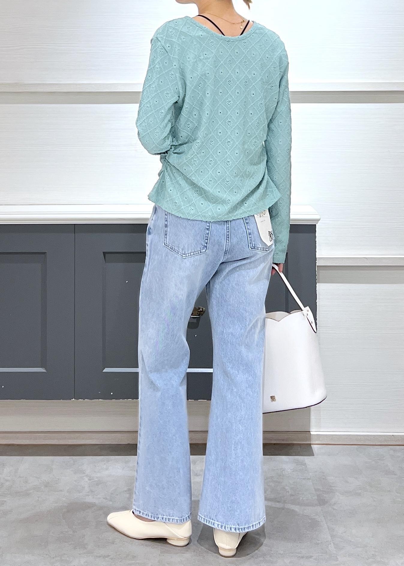 ソフトデニムを使用しており、柔らかな素材感で楽な着心地です。 -