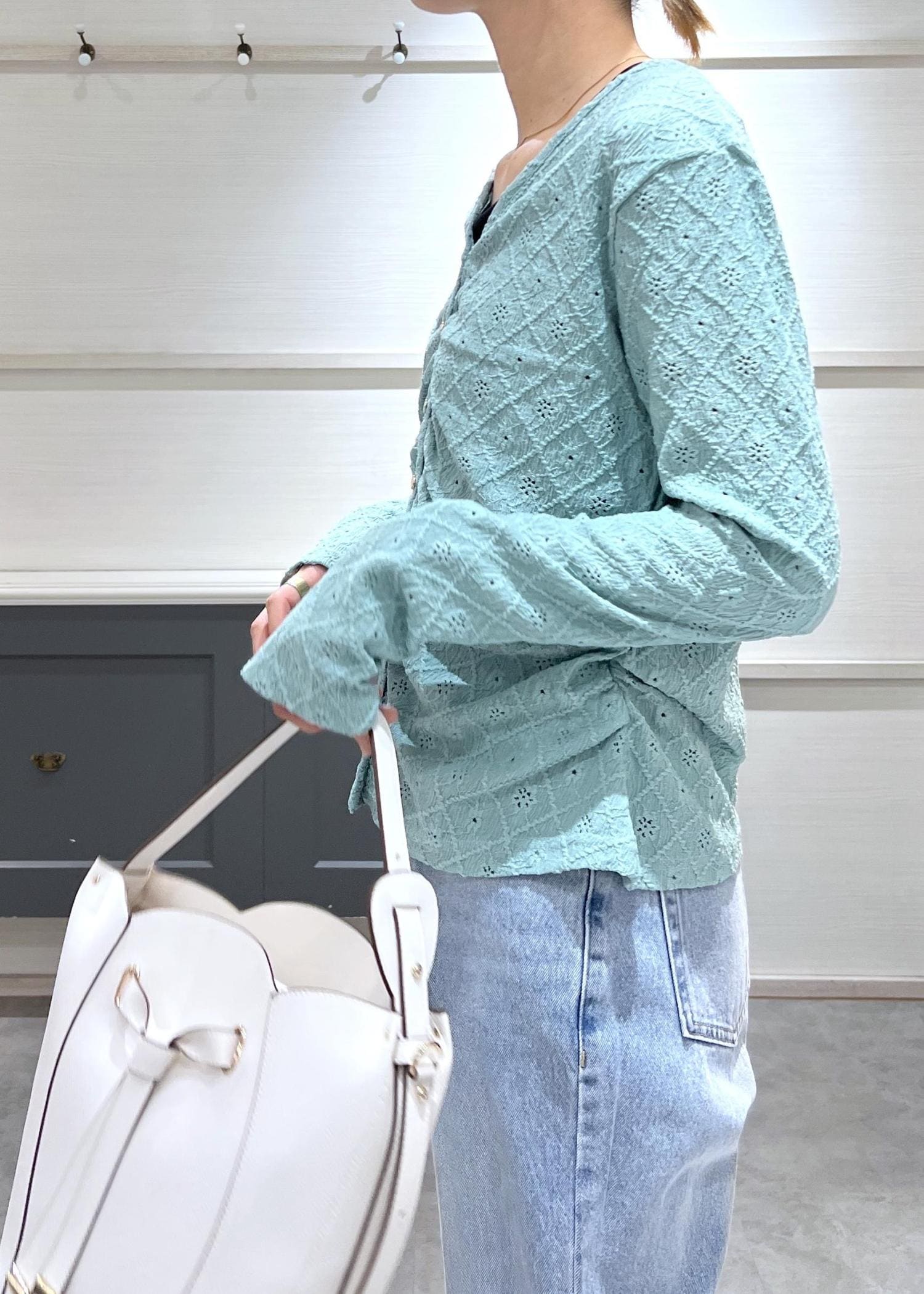 VISフラワージャガードカットカーディガン/2WAY・イージーケアグリーン系 / F¥5,489レビュー166cm/Fサイズ着用。