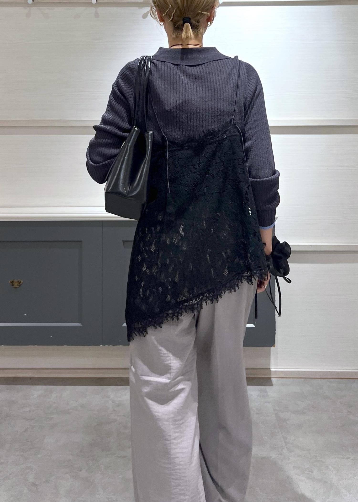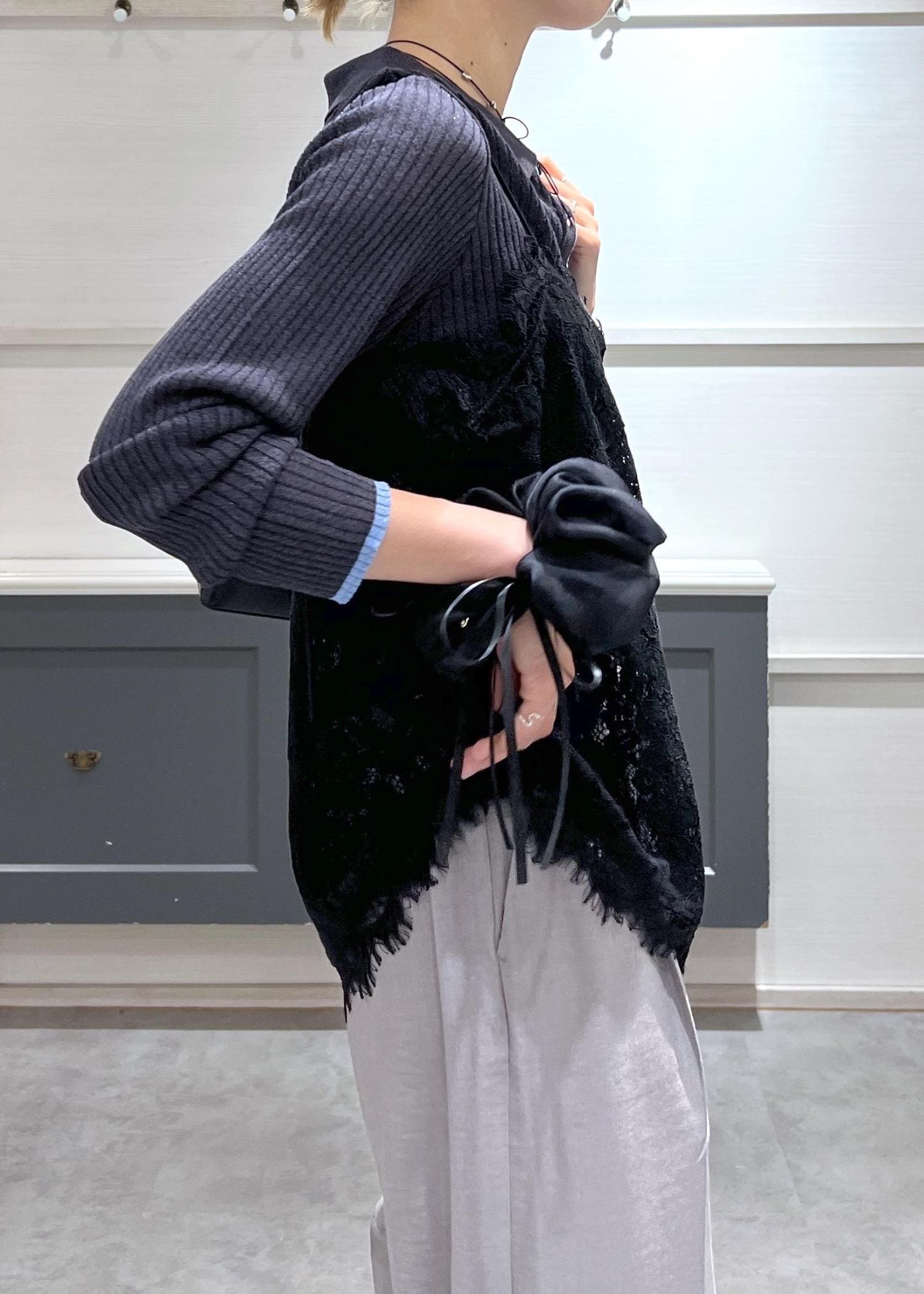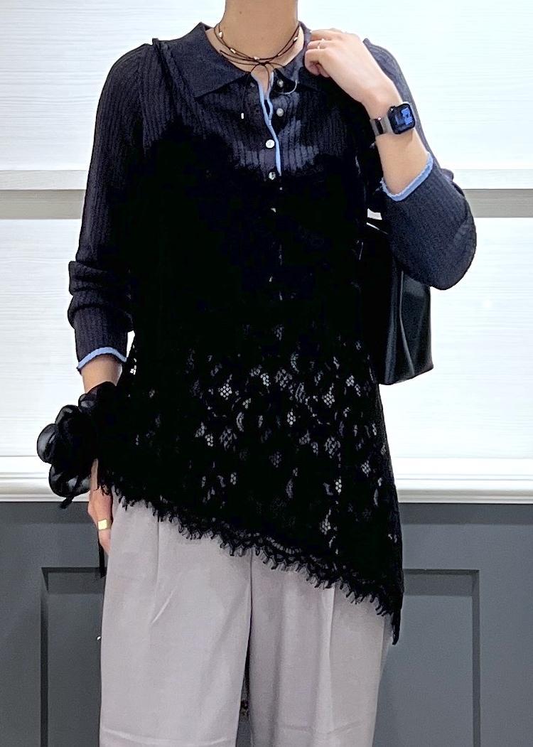 アシメントリーなレースが1枚合わせるだけでオシャレ度UPさせてくれます! -