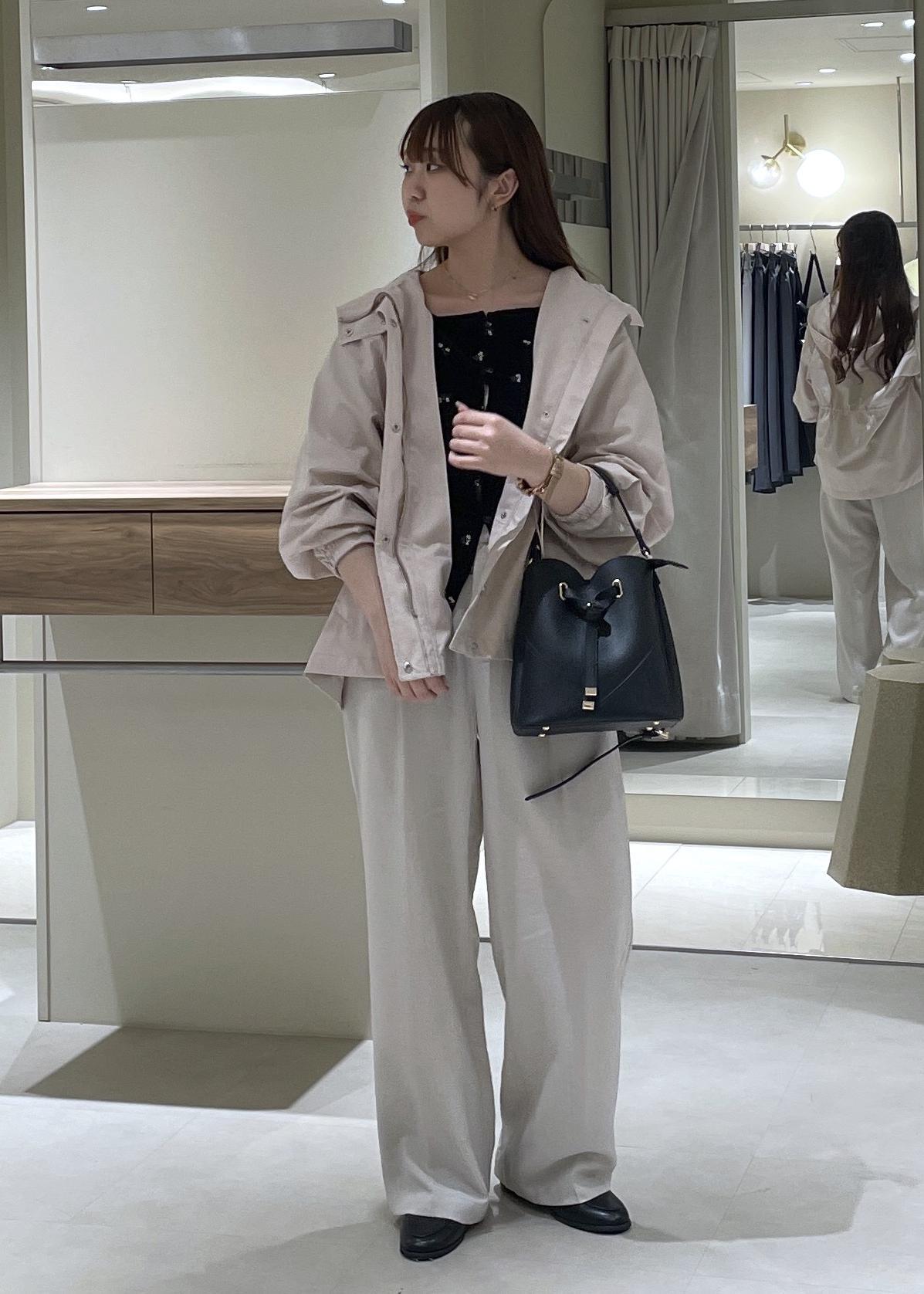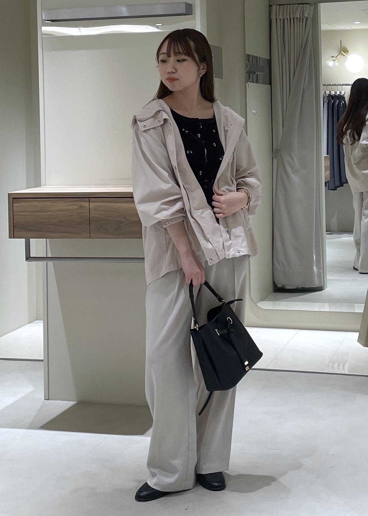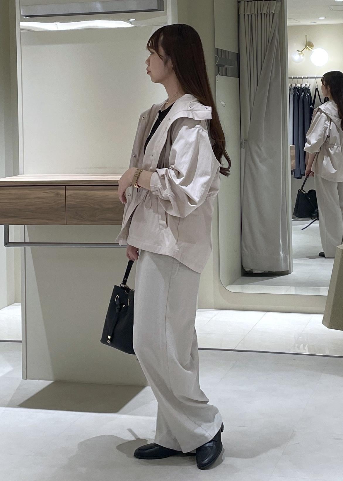春から夏の終わりまで使っていただける麻風素材で、薄手で着た感じもとても軽いです。ボタンでウエスト調整可能な点も推しポイントです。 -