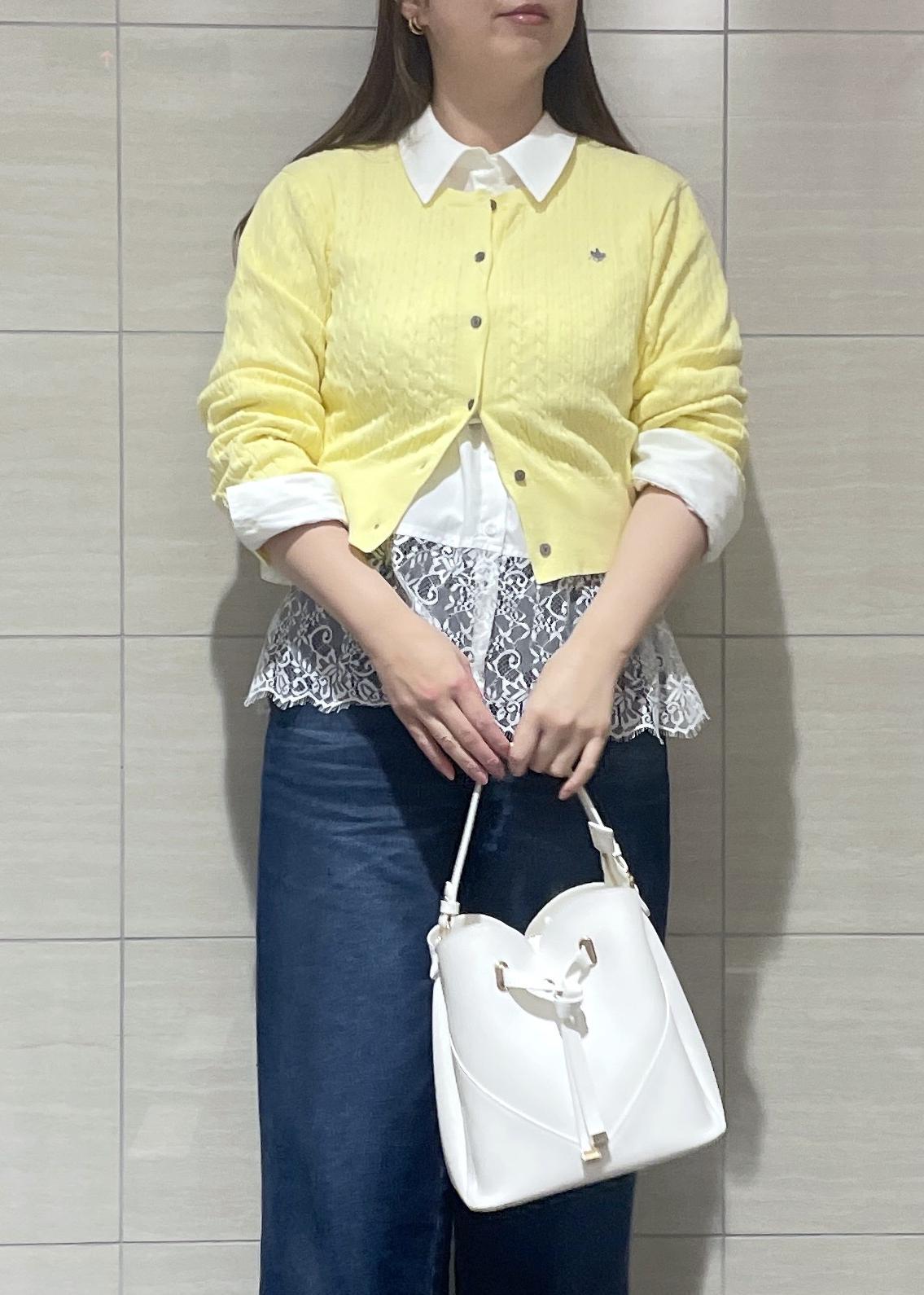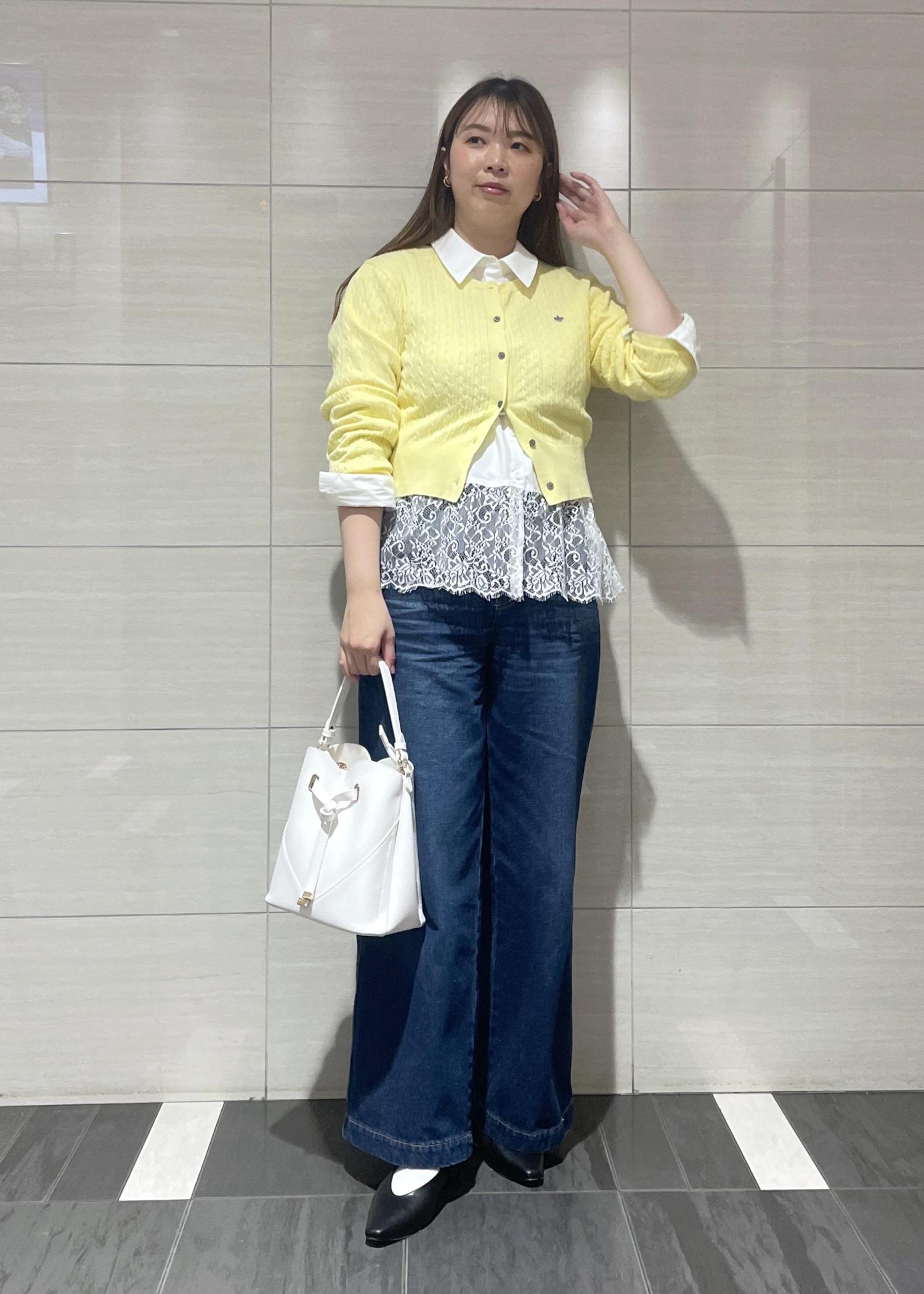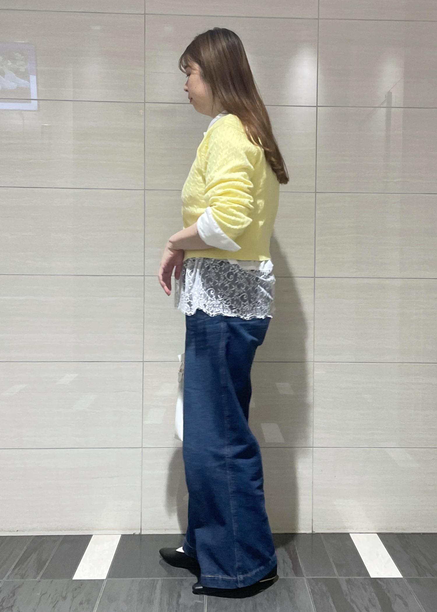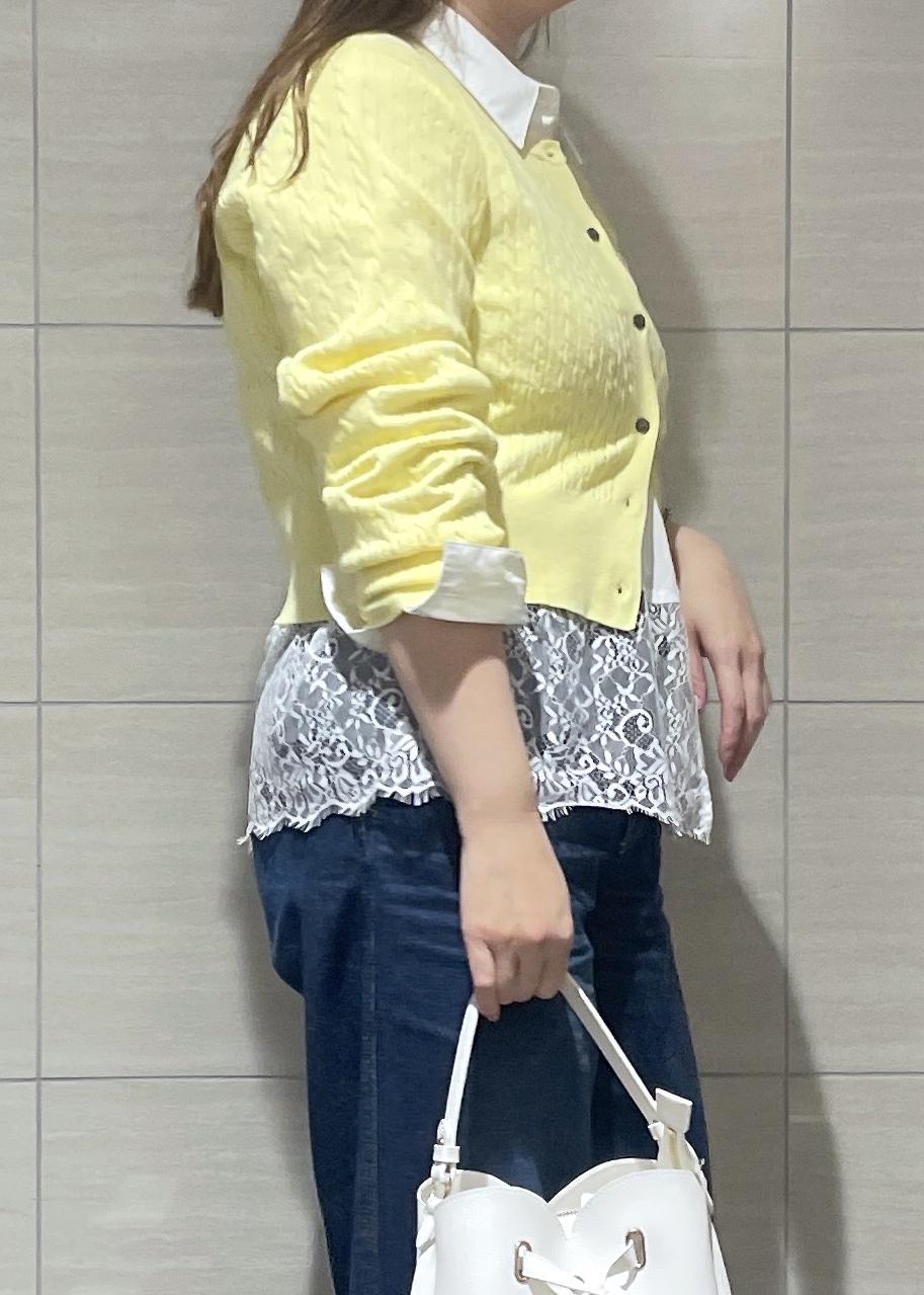 VIS【POLO BCS】VIS別注ミニケーブルノーカラーカーディガンイエロー / F¥6,930レビュー163cmで腰にかかるくらいの丈感です。