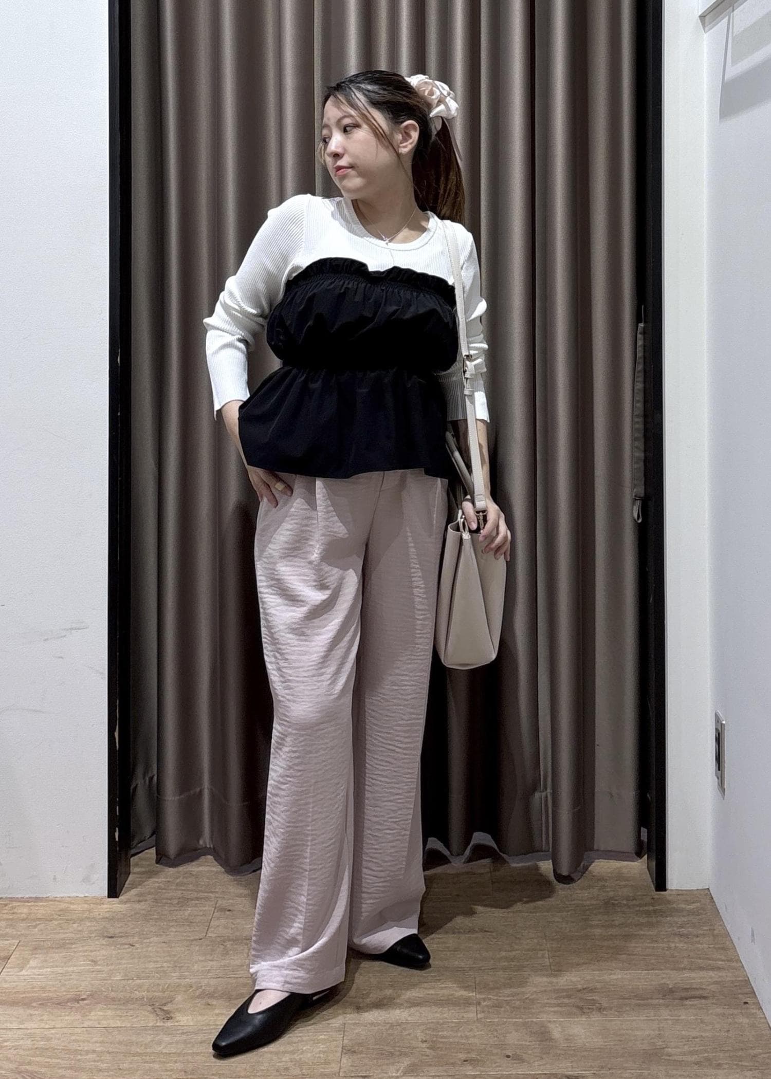 ビスチェドッキングニットに美easyのパンツを合わせたコーデです!