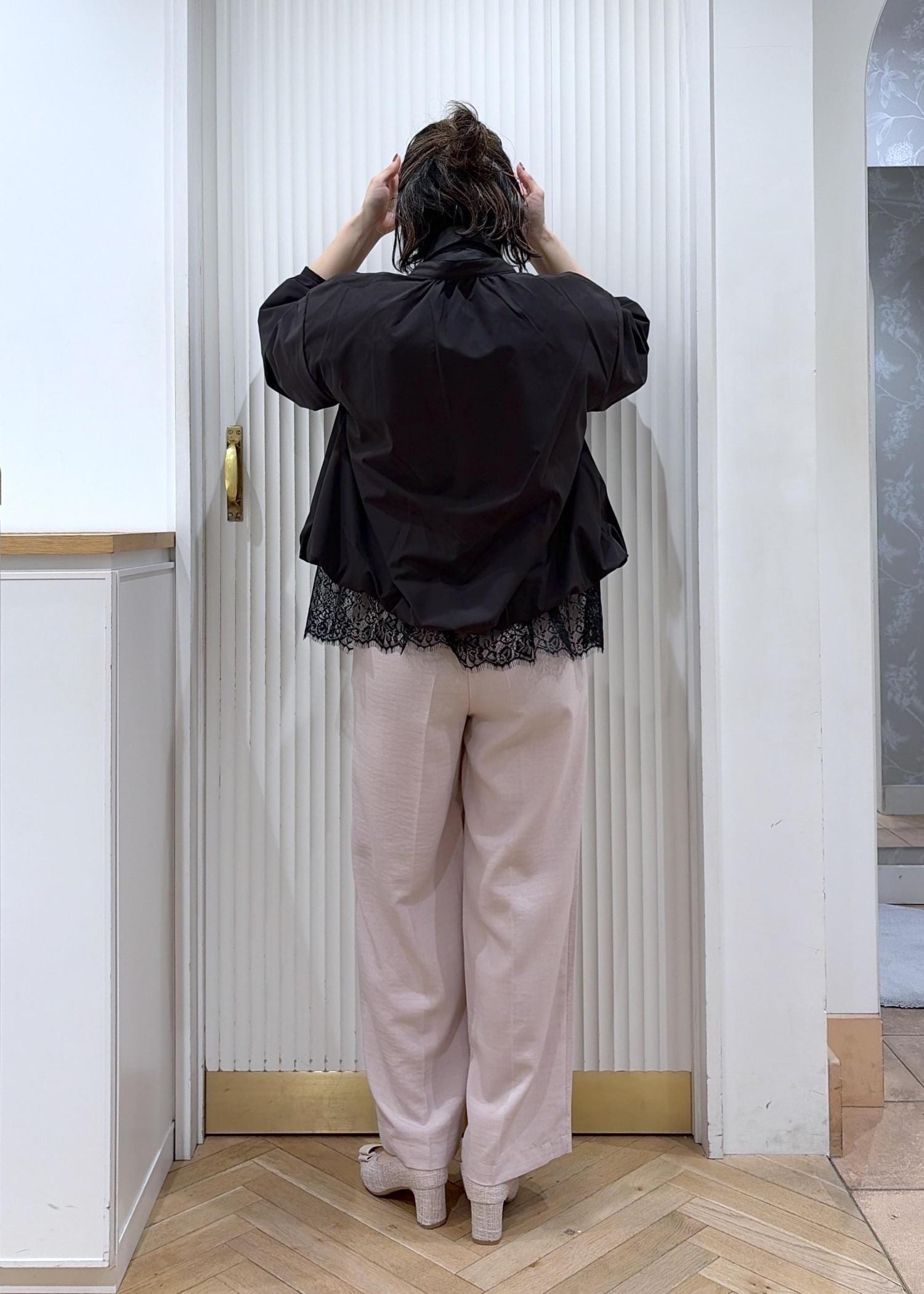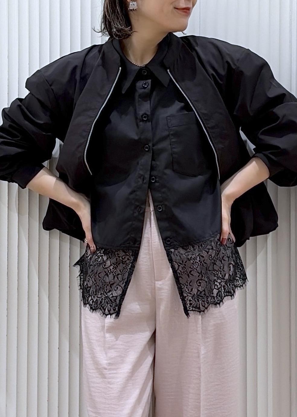 VIS裾レースドッキングシャツブラック / F¥6,589レビューレイヤードでも単品でもかわいい裾レースデザインのシャツ。ブラックをリアルバイしました!ボクシーなサイズ感で、骨格ナチュラルさんにお勧めのサイジング。肩周りや身幅にゆとりがあり華奢感を出せるので、1枚ではもちろんニットやジャケットのインとしてレイヤードスタイルにもお勧めです。