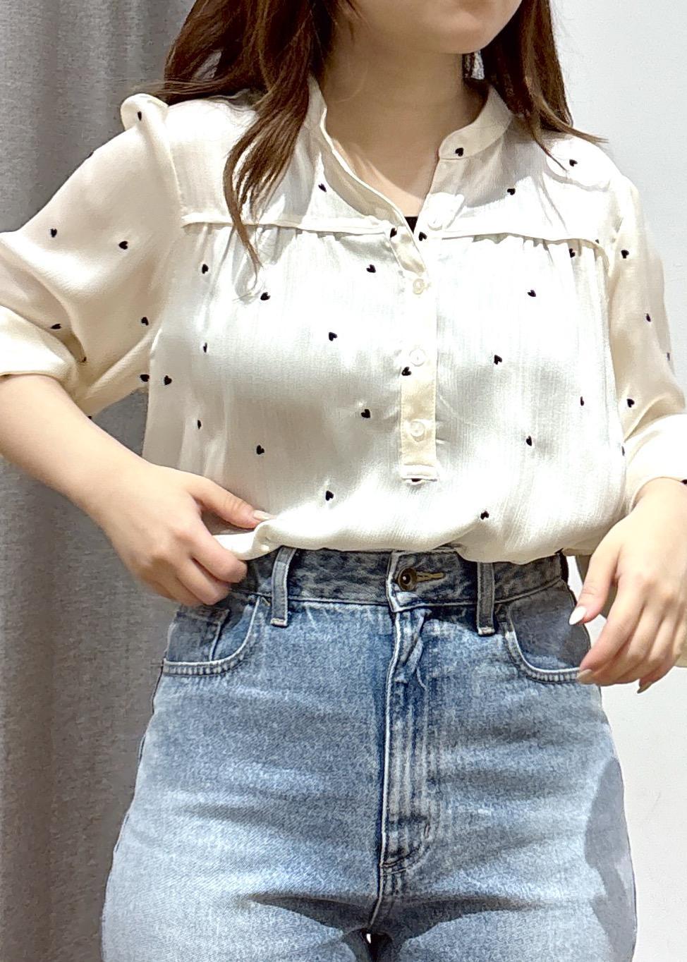 VISハートモチーフ刺繍ブラウス/イージーケアオフホワイト / F¥6,589レビュー【着用感】