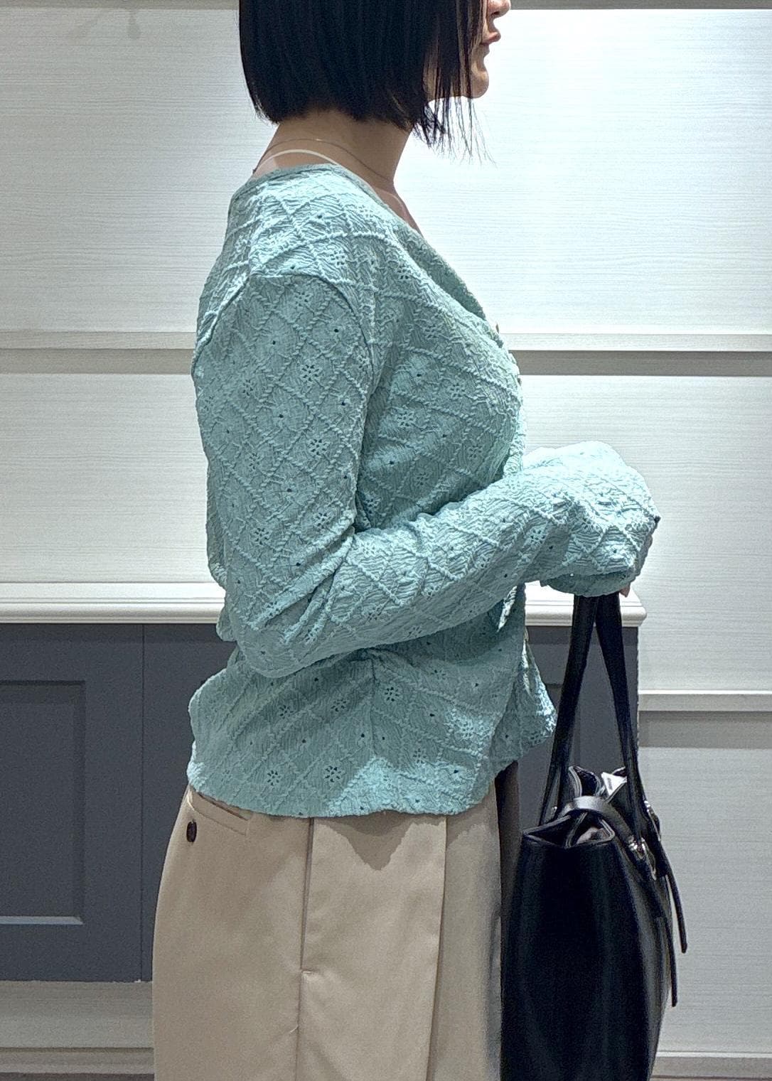 VISフラワージャガードカットカーディガン/2WAY・イージーケアグリーン系 / F¥5,489レビュー身長168センチで腰あたりで袖も長めの着丈です◎