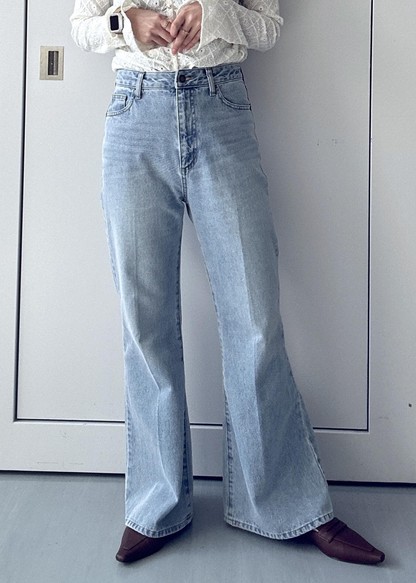 VISカラーフレアデニムパンツサックス / M¥8,899レビュー身長162cmでMサイズ着用。