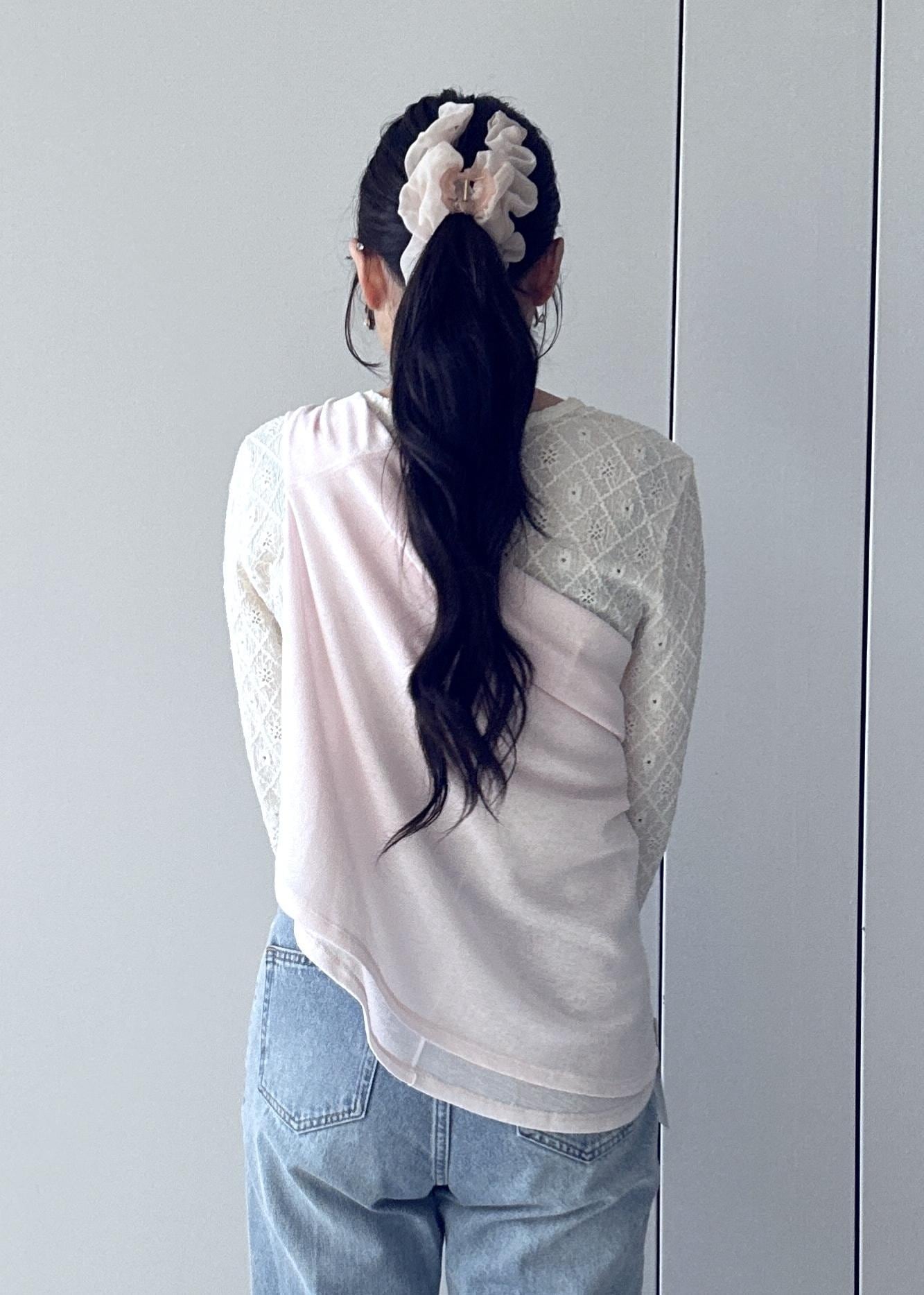 VISラメメッシュスリーブ切り替えシアーロンTピンク / F¥3,949レビュー身長162cmでFサイズ着用。