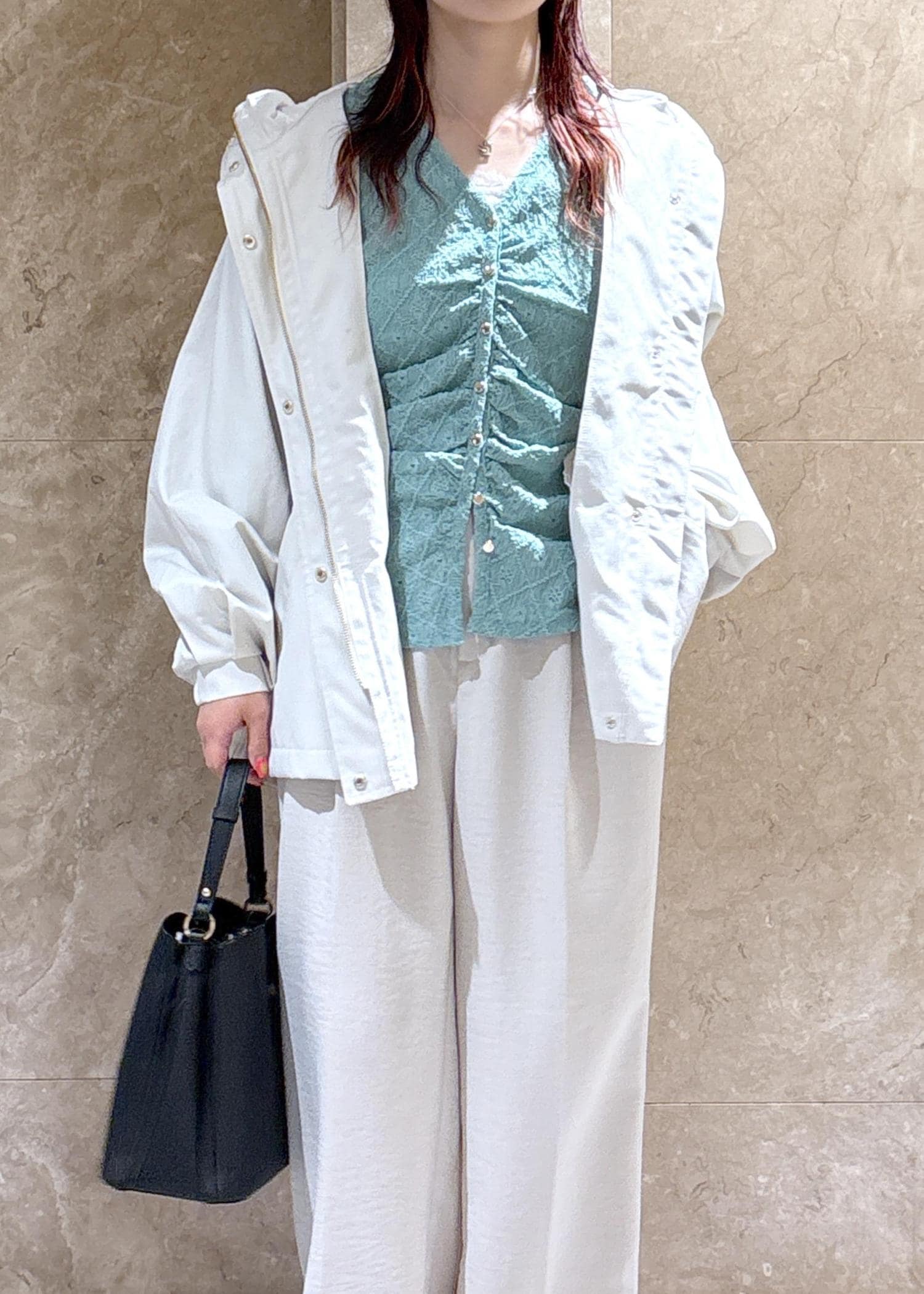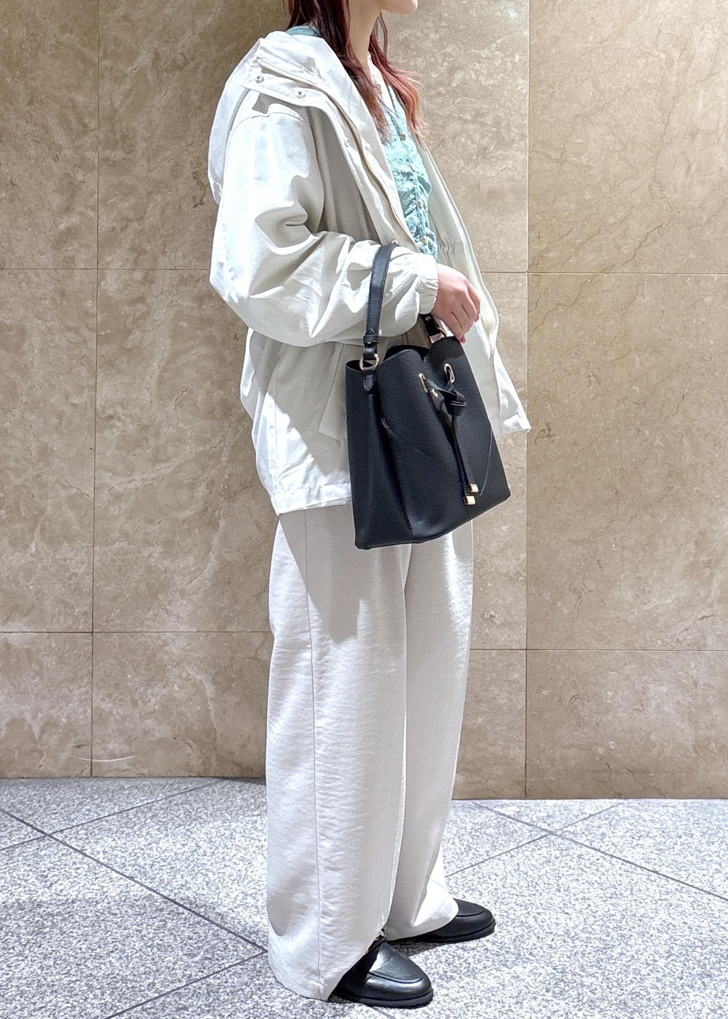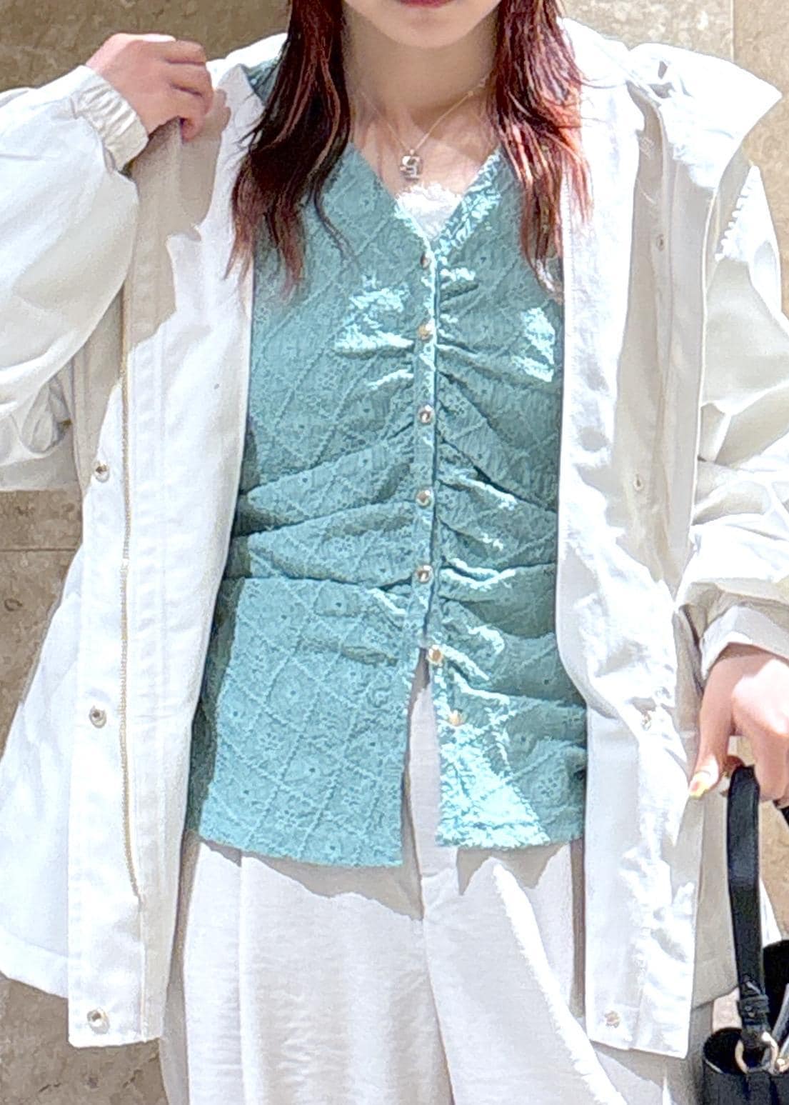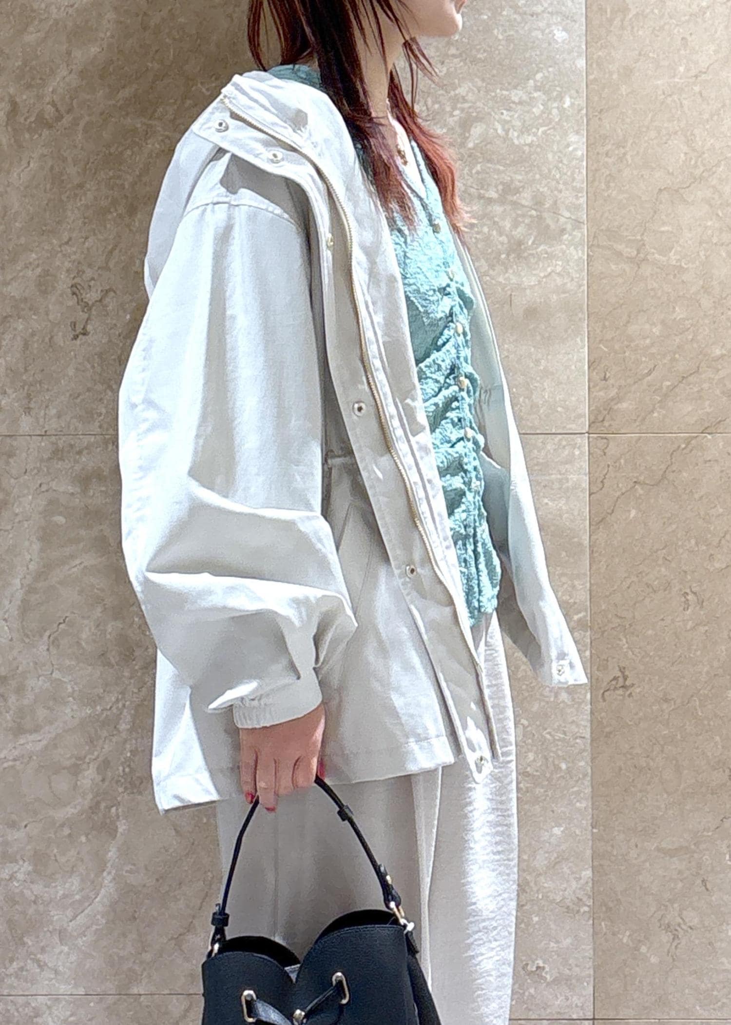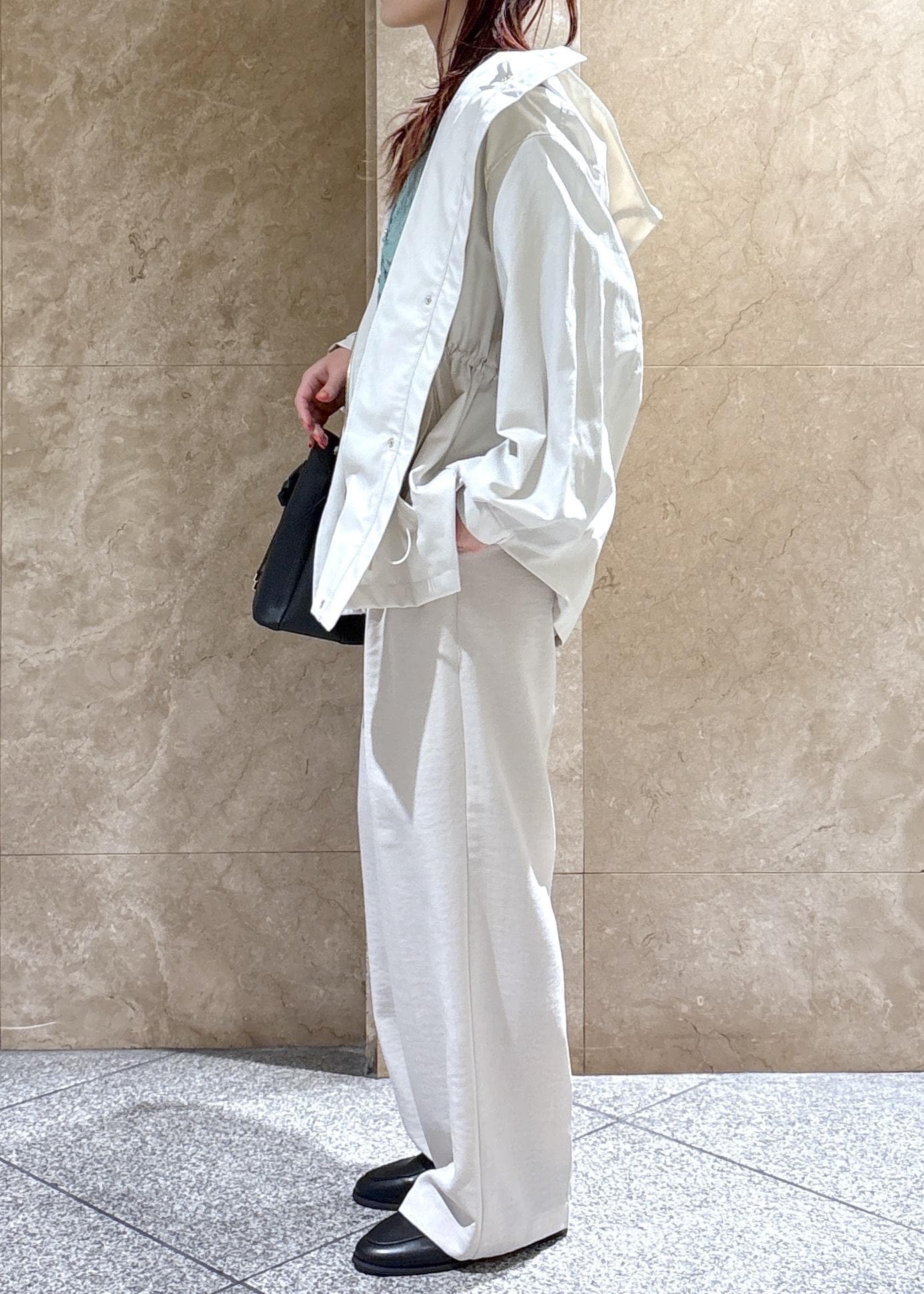 全体的にゆったりめなので、中に着るものは選ばずに着用できそう◎