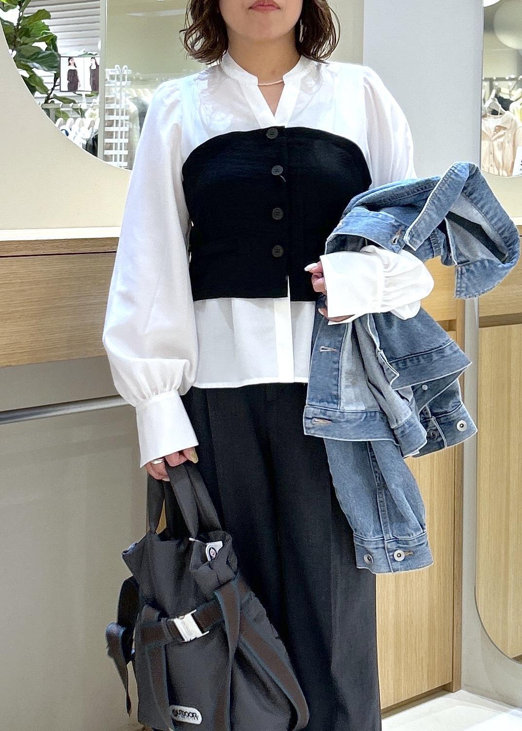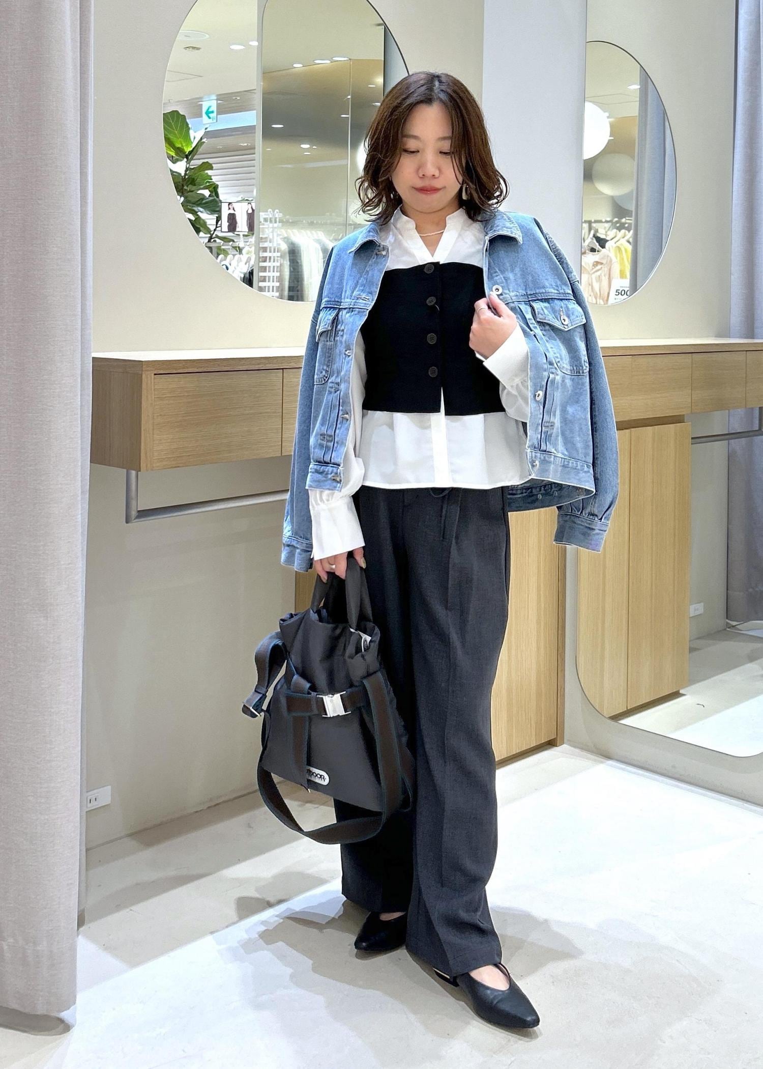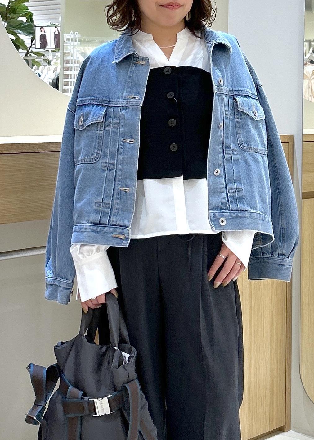カジュアルスタイルなので、羽織りものはデニムを使用し