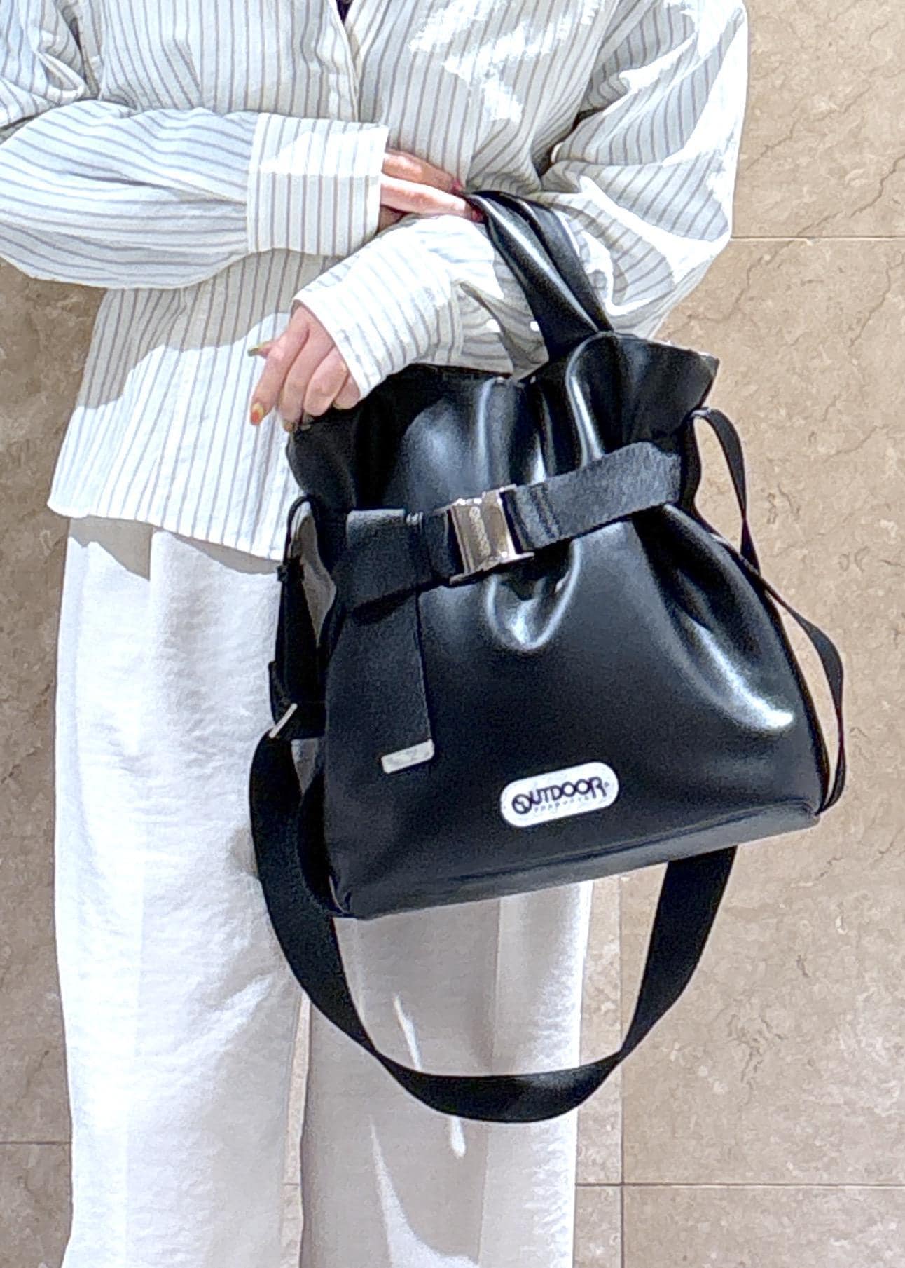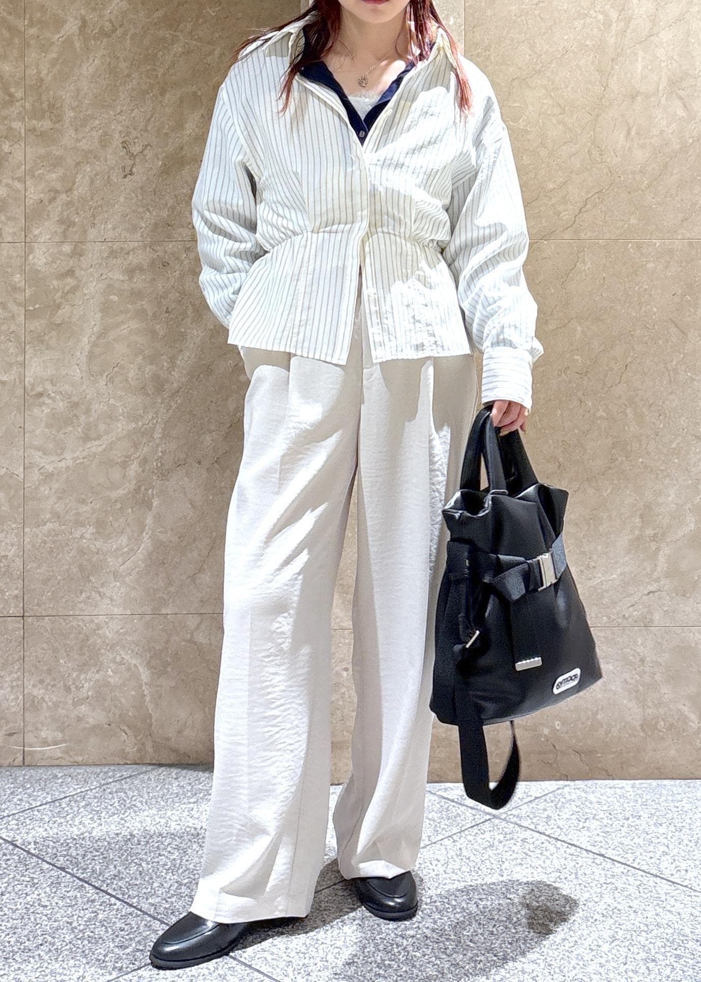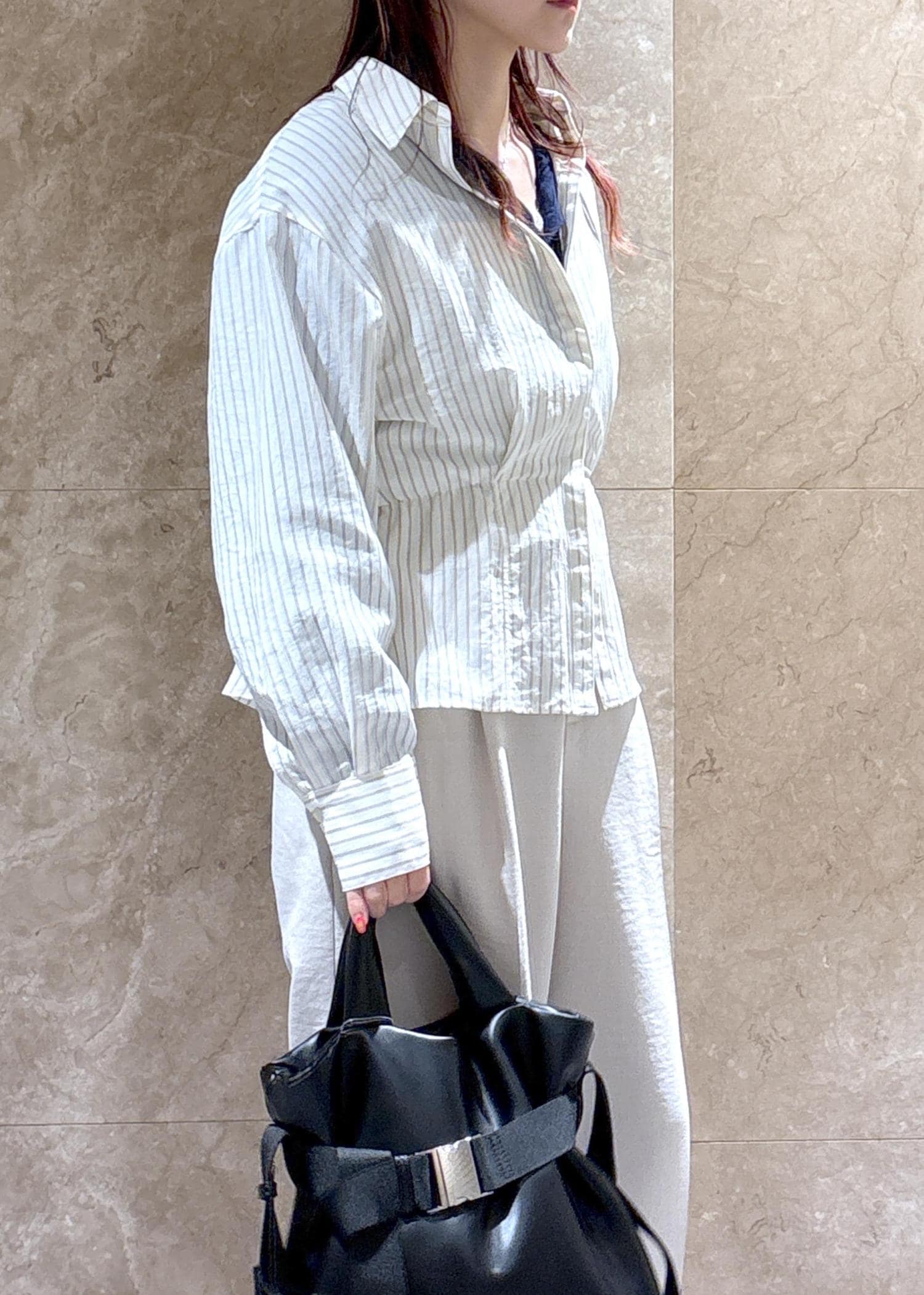 ベルトの部分を縮めてクシュッとさせると、シルエットが出てよりかわいいです♡ -